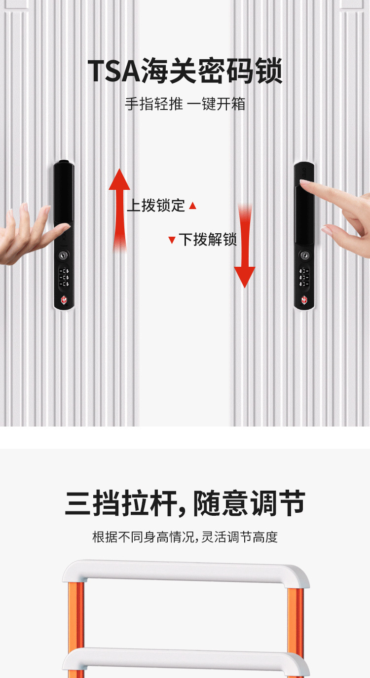现已将此款拉杆箱进行升级 拉杆一律换成黑色管壁 把手搭配箱体颜色