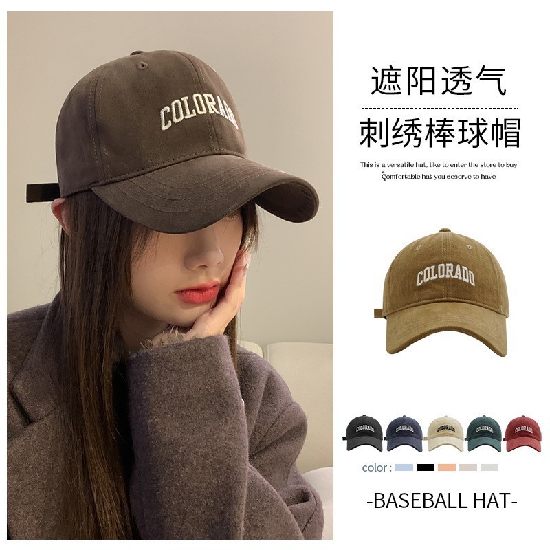 모자 봄과 여름 새로운 편지 면 오리 혀 모자 모든 경기 여성용 레트로 자수 소프트 탑 쇼 페이스 작은 차양 야구스토어 가기