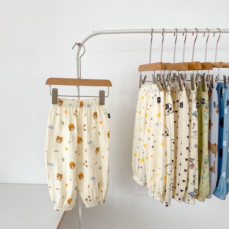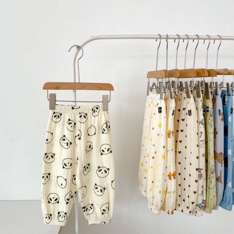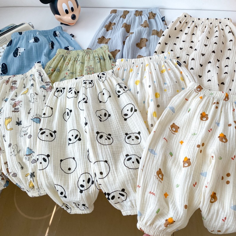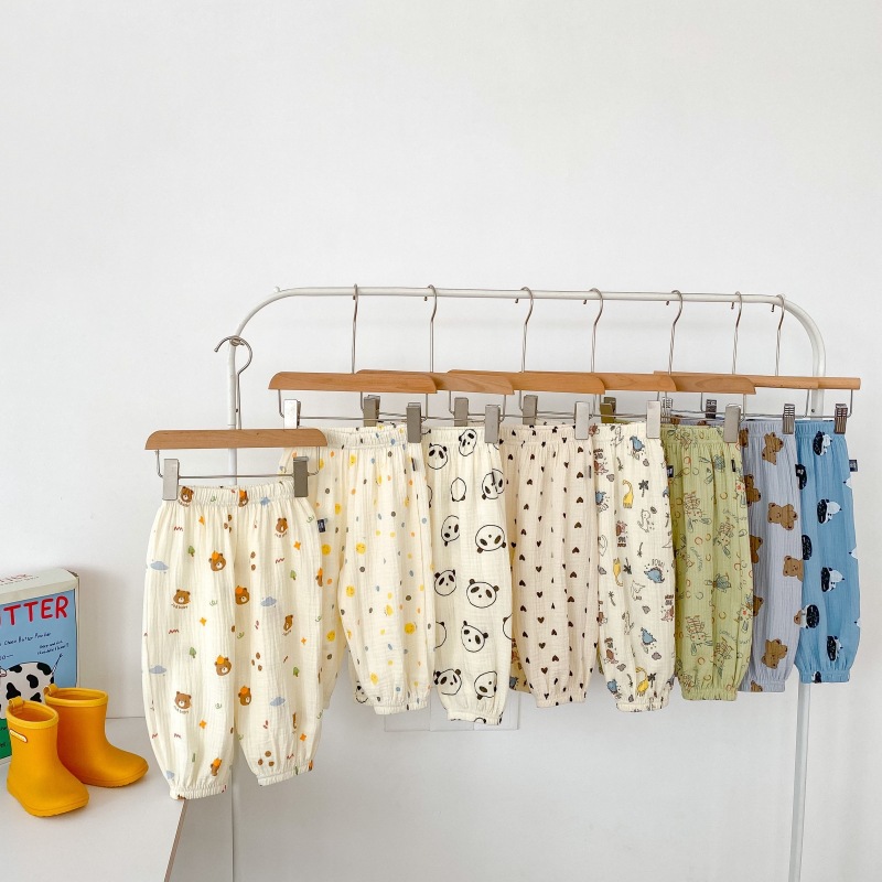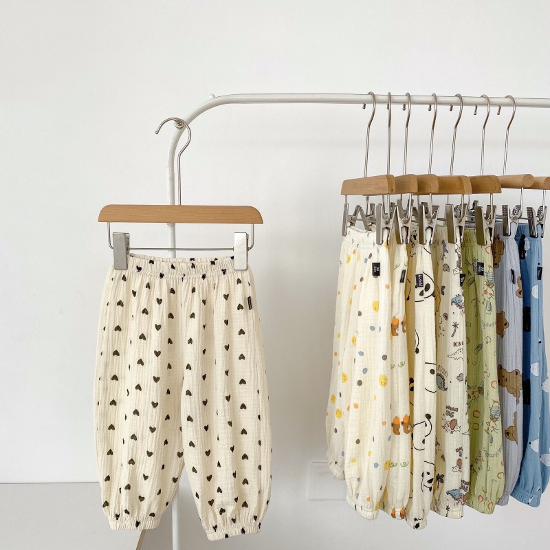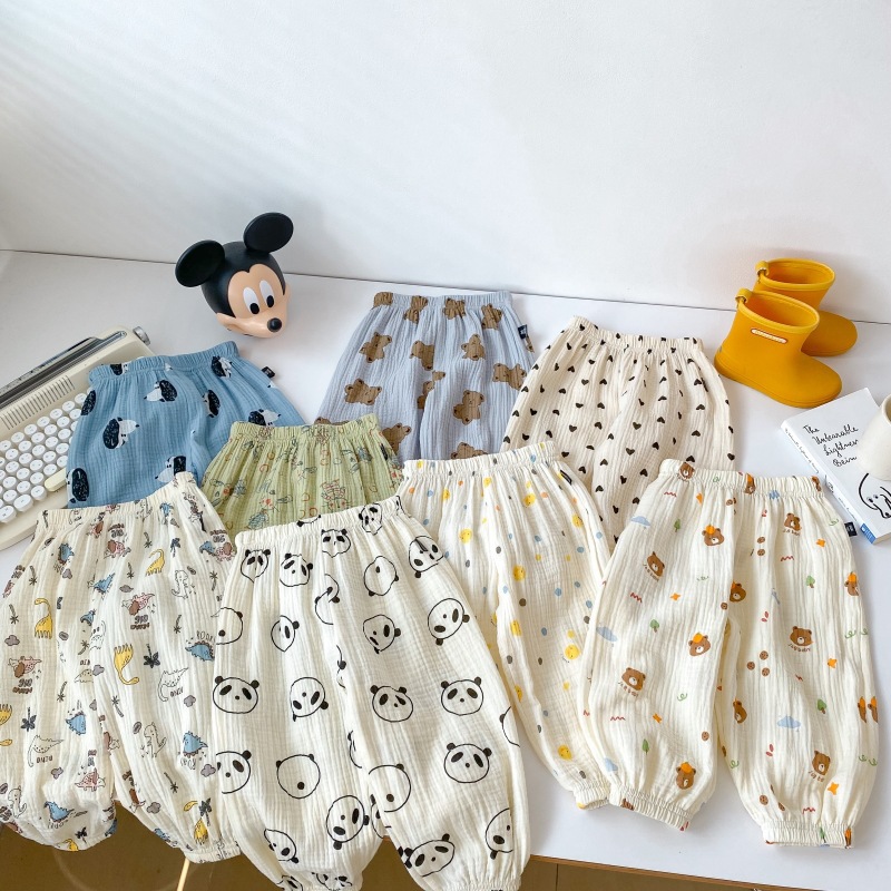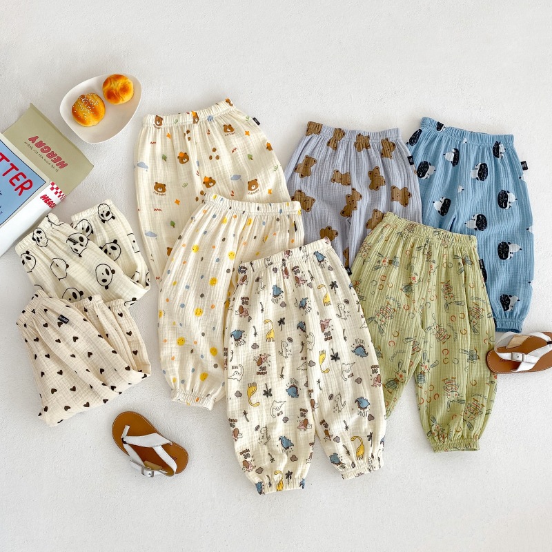 2023 소년 소녀를위한 여름 얇은 어린이 모기 방지 바지 만화 면화 블루머 느슨한 할렌 바지 올 매치 바지스토어 가기