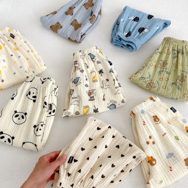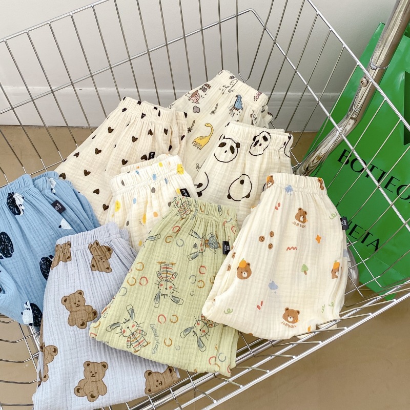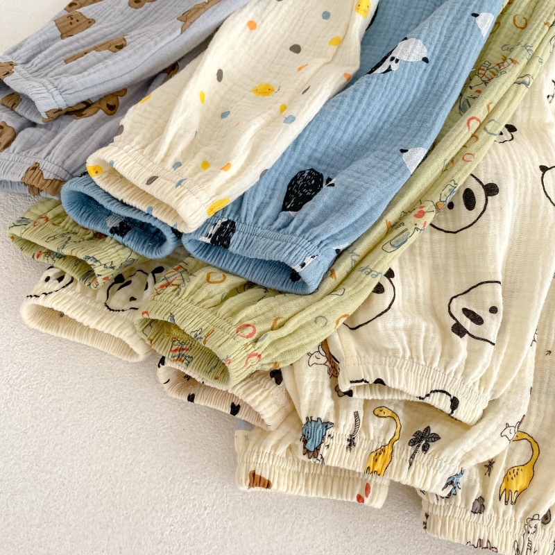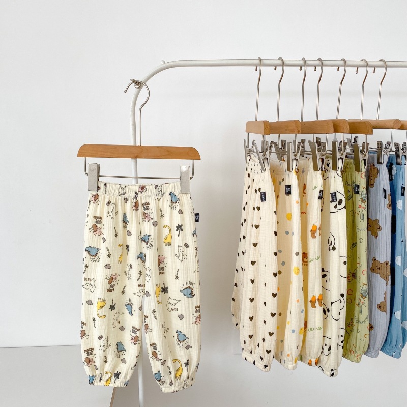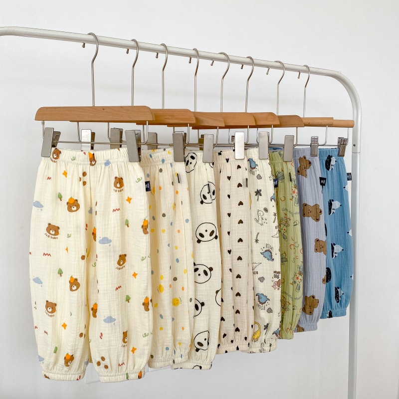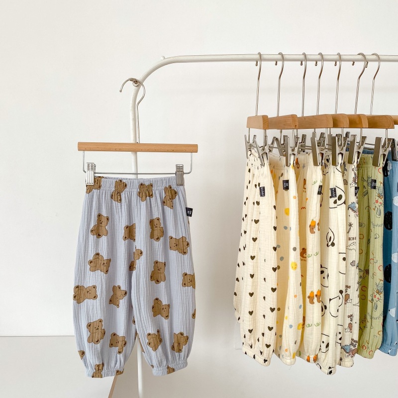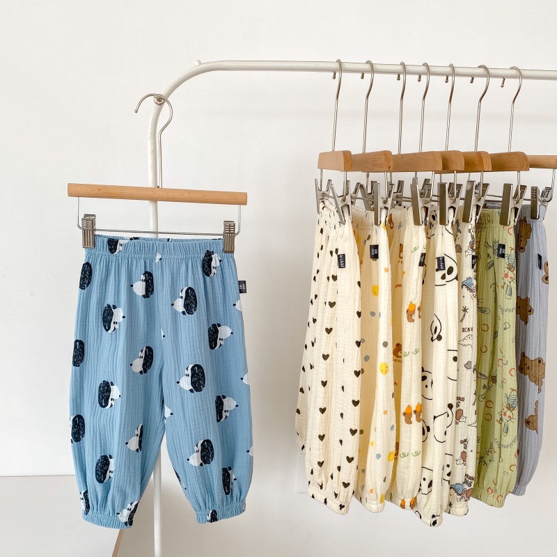2023 소년 소녀를위한 여름 얇은 어린이 모기 방지 바지 만화 면화 블루머 느슨한 할렌 바지 올 매치 바지스토어 가기