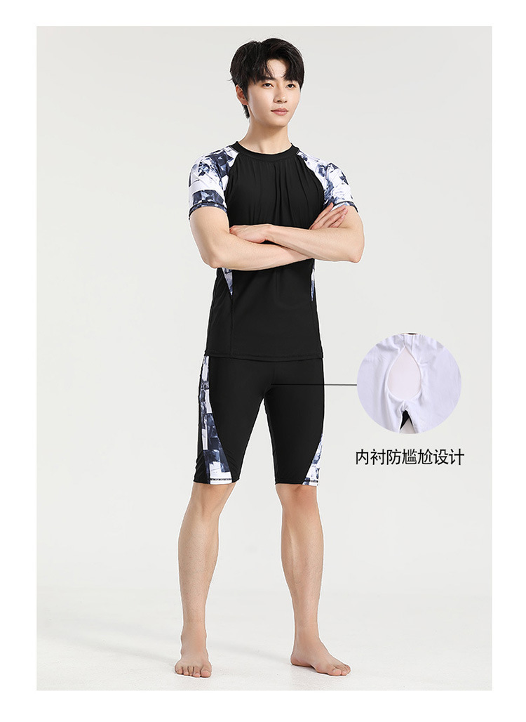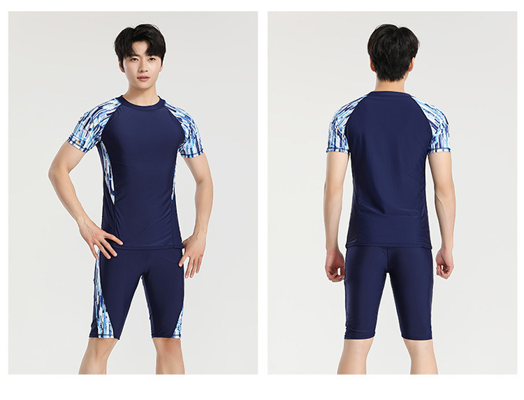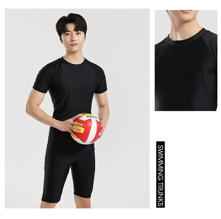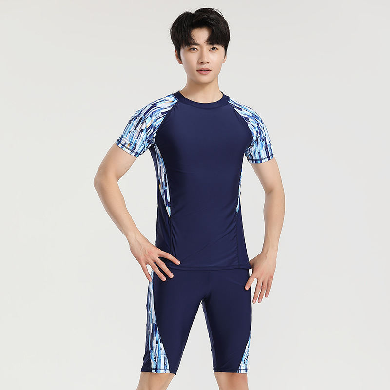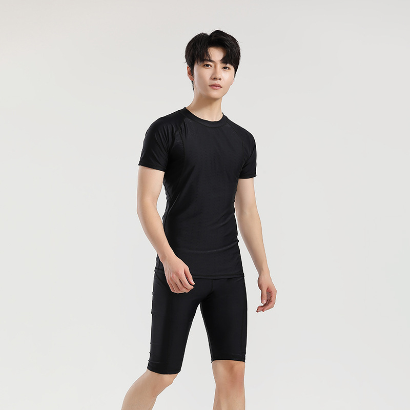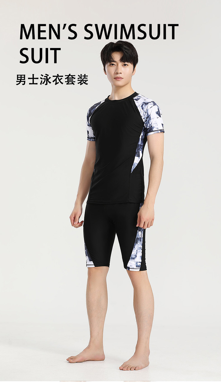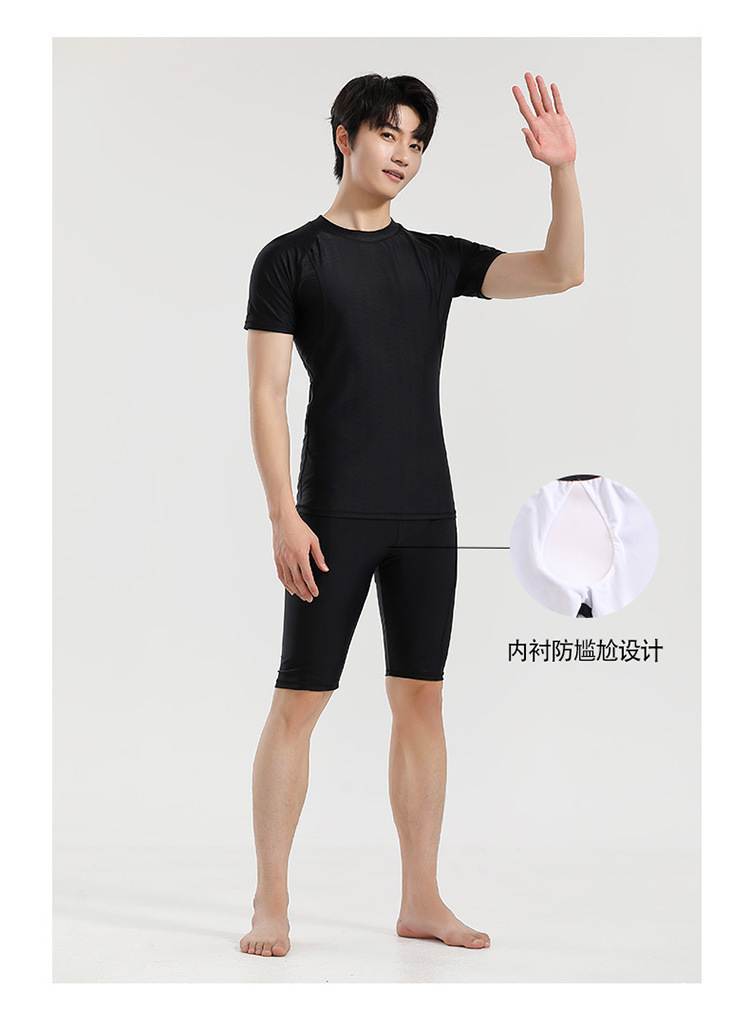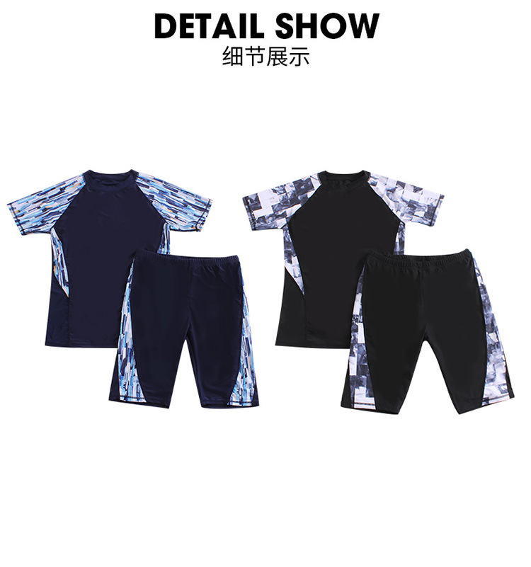 分体游泳衣男士防晒速干短袖上衣青少年五分平角裤运动训练温泉装