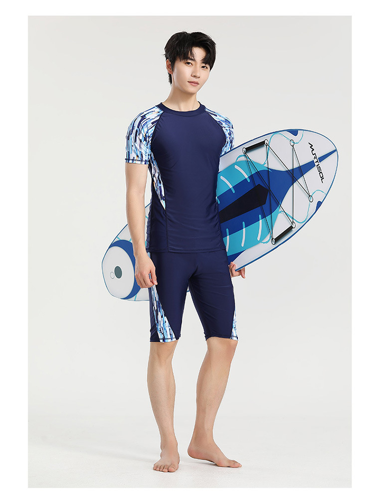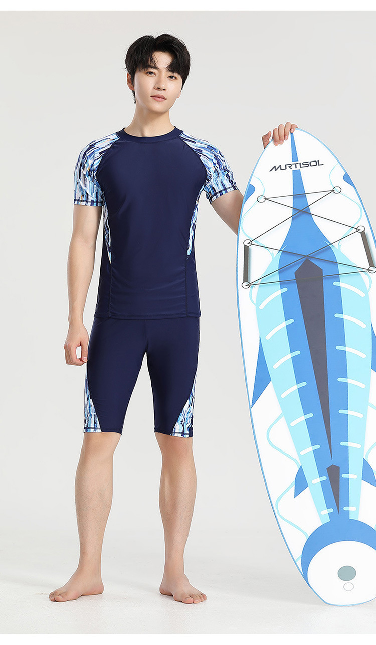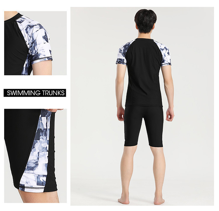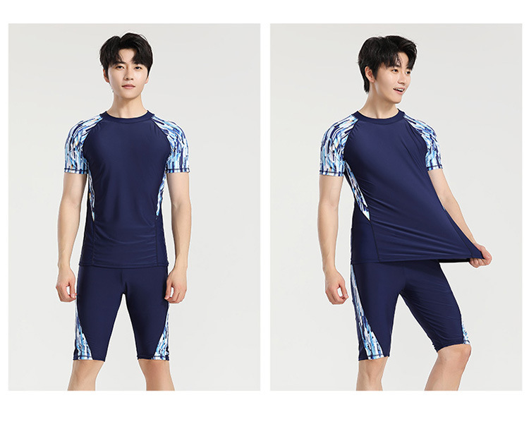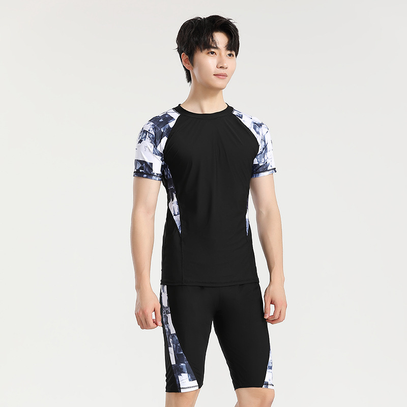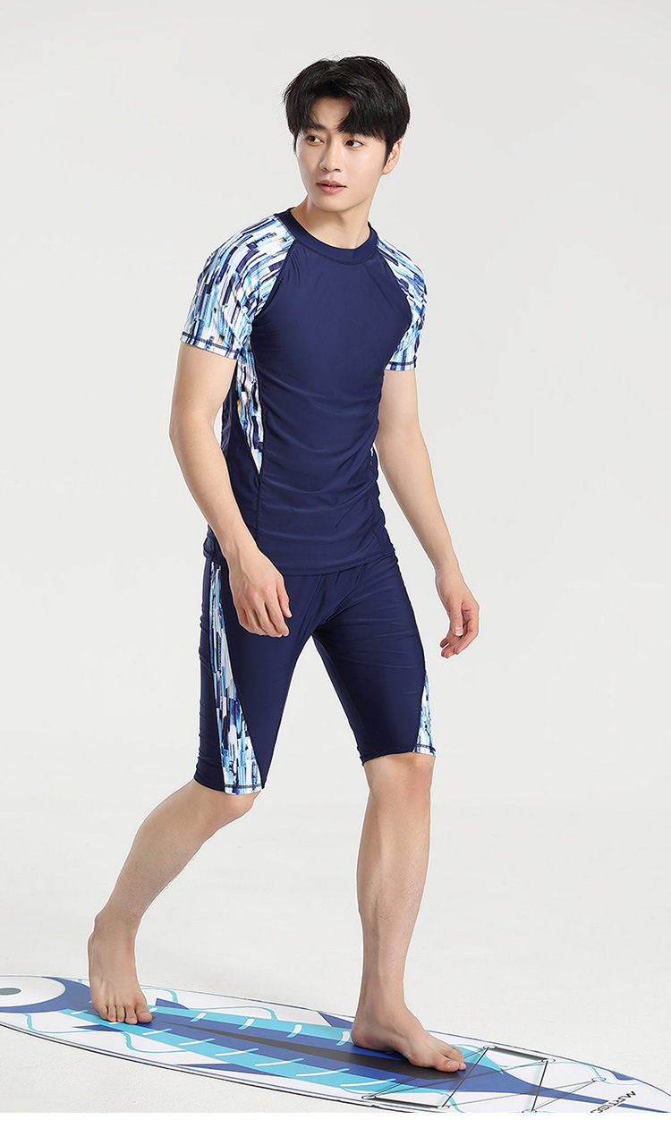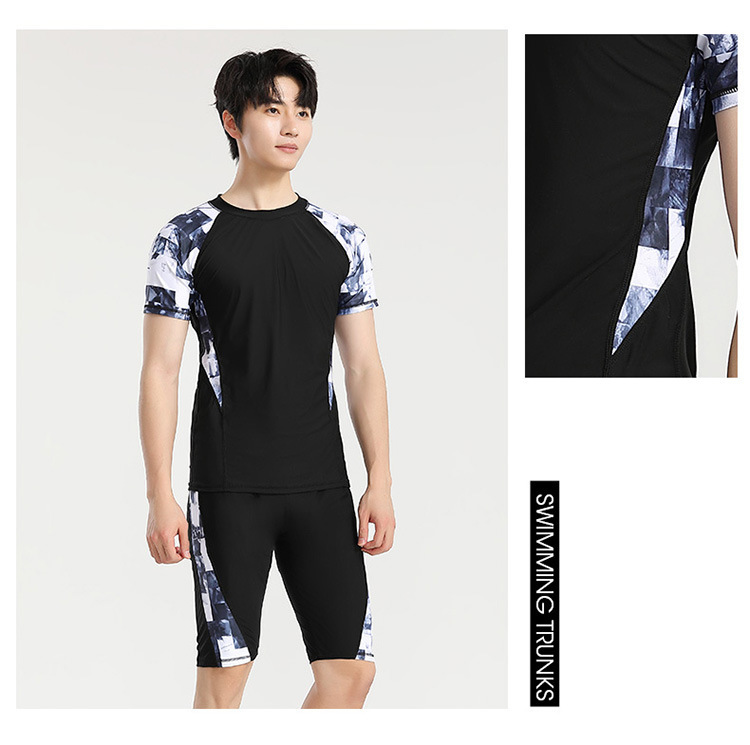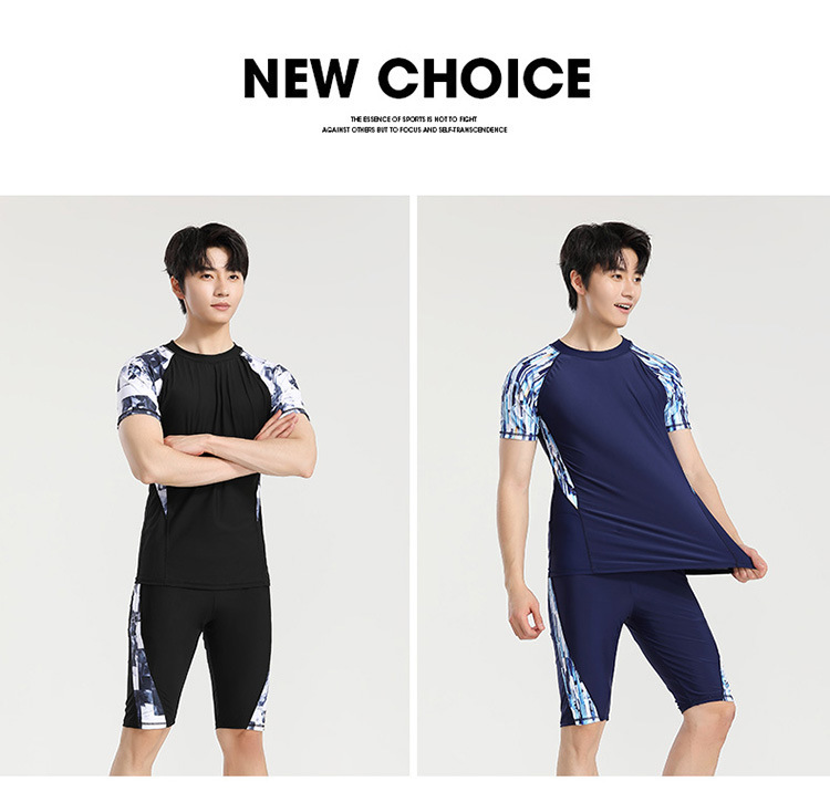 分体游泳衣男士防晒速干短袖上衣青少年五分平角裤运动训练温泉装