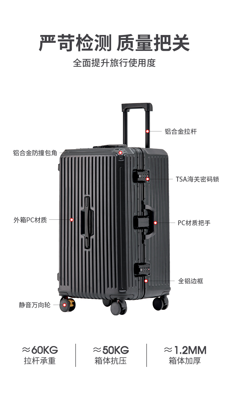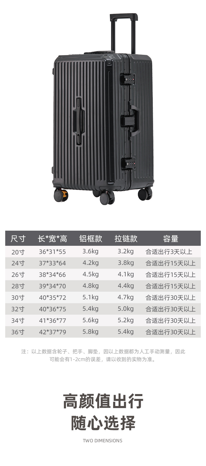 대용량 알루미늄 프레임 여행가방, 다기능 USB 충전 여행가방, 이중 트롤리 캐리어, 20인치 기내용 가방, 경량스토어 가기