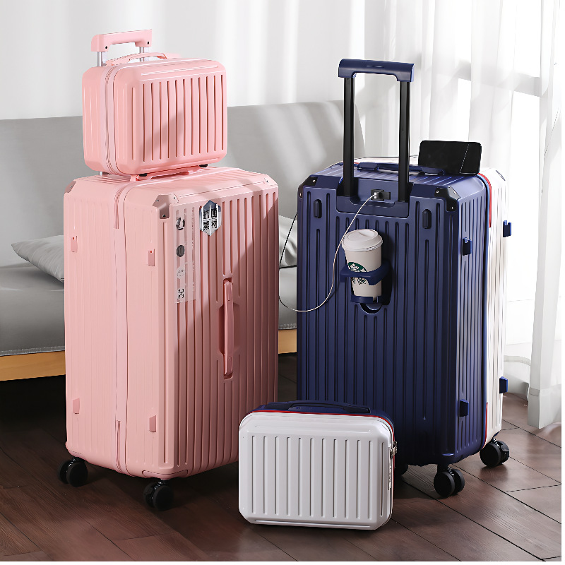 대용량 알루미늄 프레임 여행가방, 다기능 USB 충전 여행가방, 이중 트롤리 캐리어, 20인치 기내용 가방, 경량
