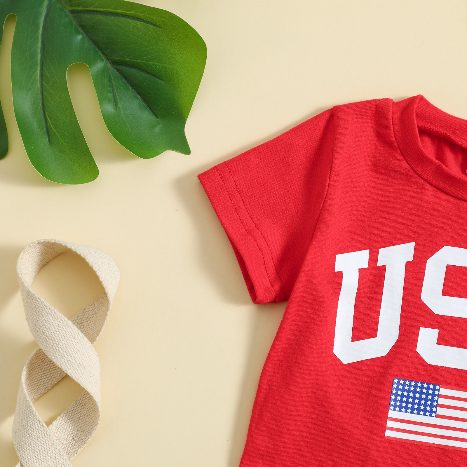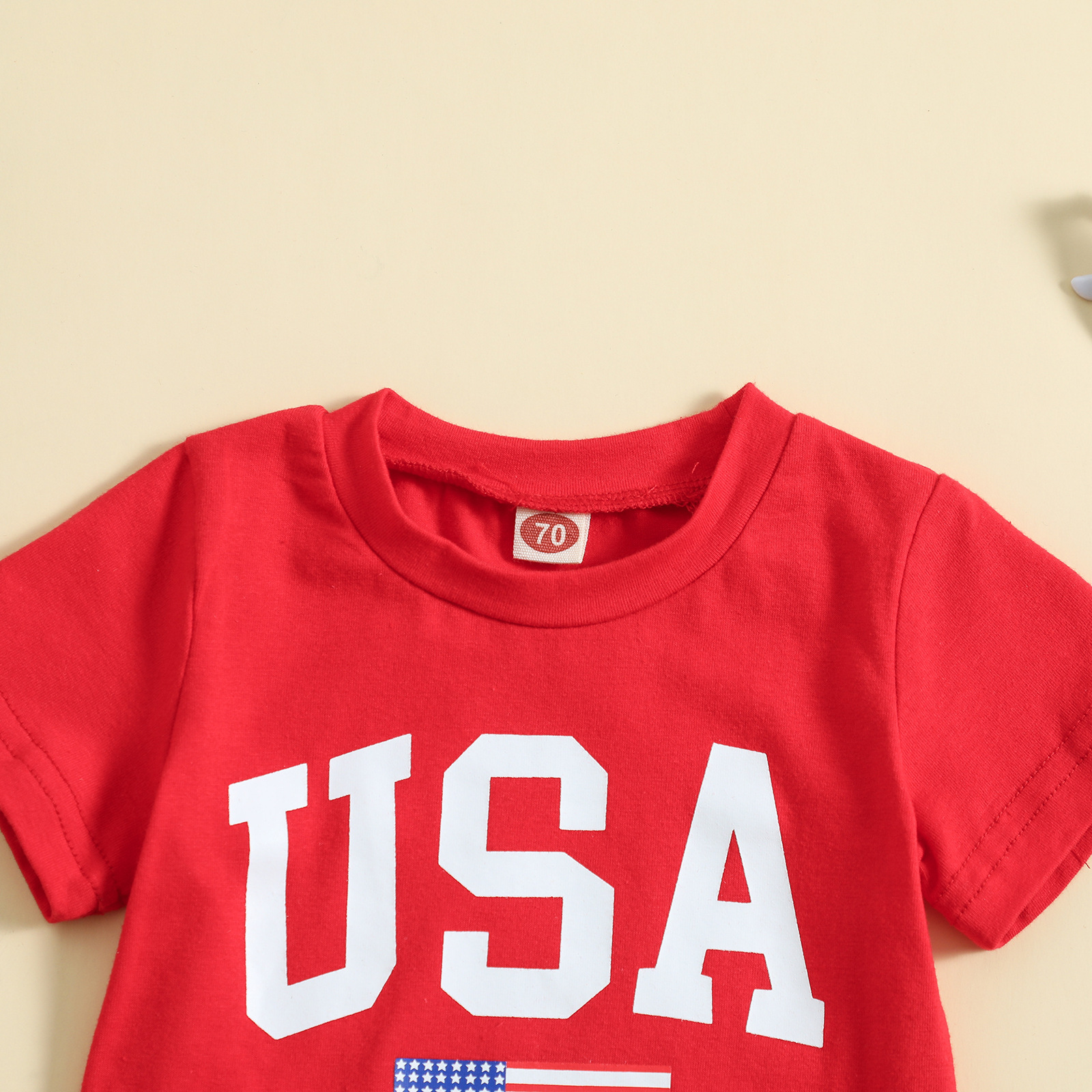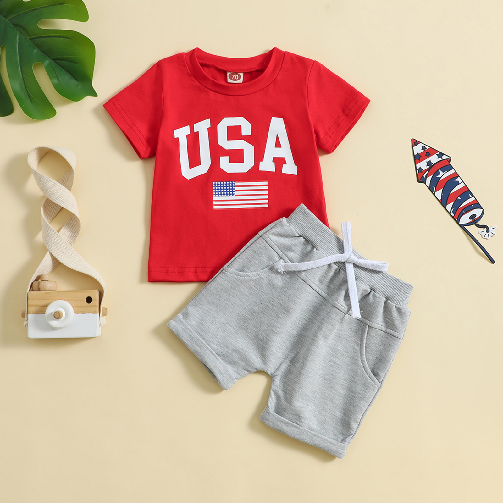 아마존 새로운 독립 기념일 폭발 여름 반팔 캐주얼 티셔츠 단색 반바지 월마트 크로스 보더
