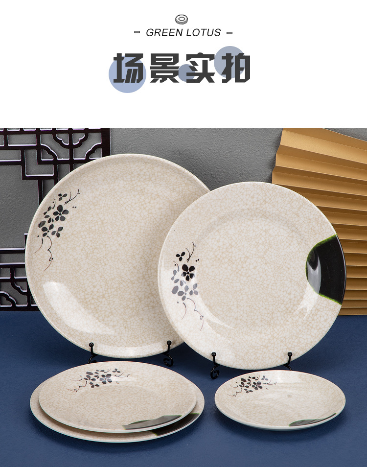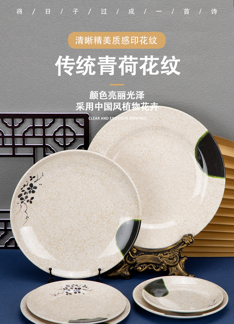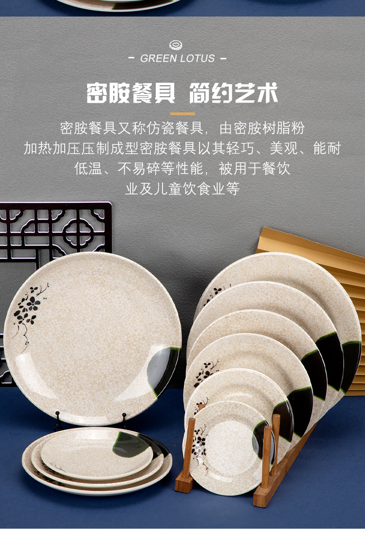 녹색 허바 멜라민 상업 라운드 쌀로 덮인 접시 뼈 접시 튀김 밀가루 팬시 접시 플라스틱 접시 식기스토어 가기