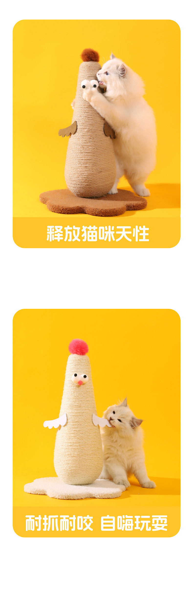 도매 새로운 비 비스듬한 고양이 스크래치 컬럼 작은 귀여운 치킨 수직 고양이 스크래치 보드 소나무 꼬투리 공 내구성 고양이 클라이밍 프레임 애완 동물 장난감스토어 가기