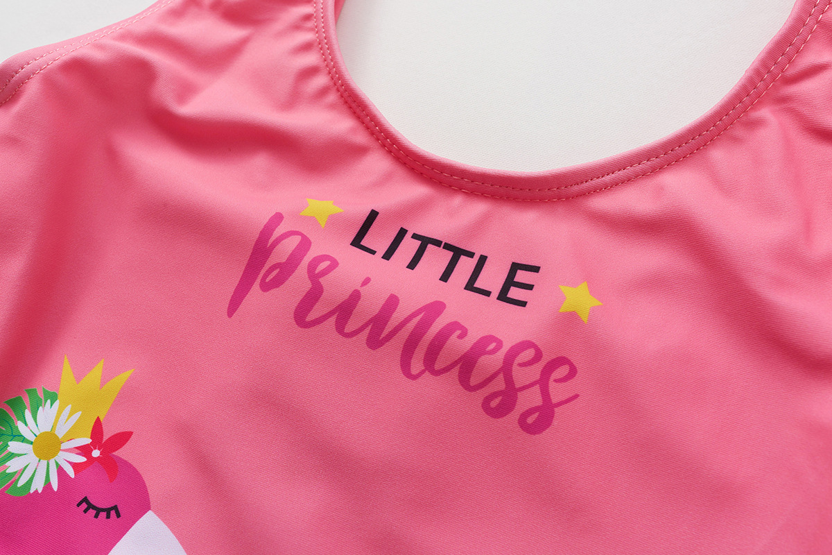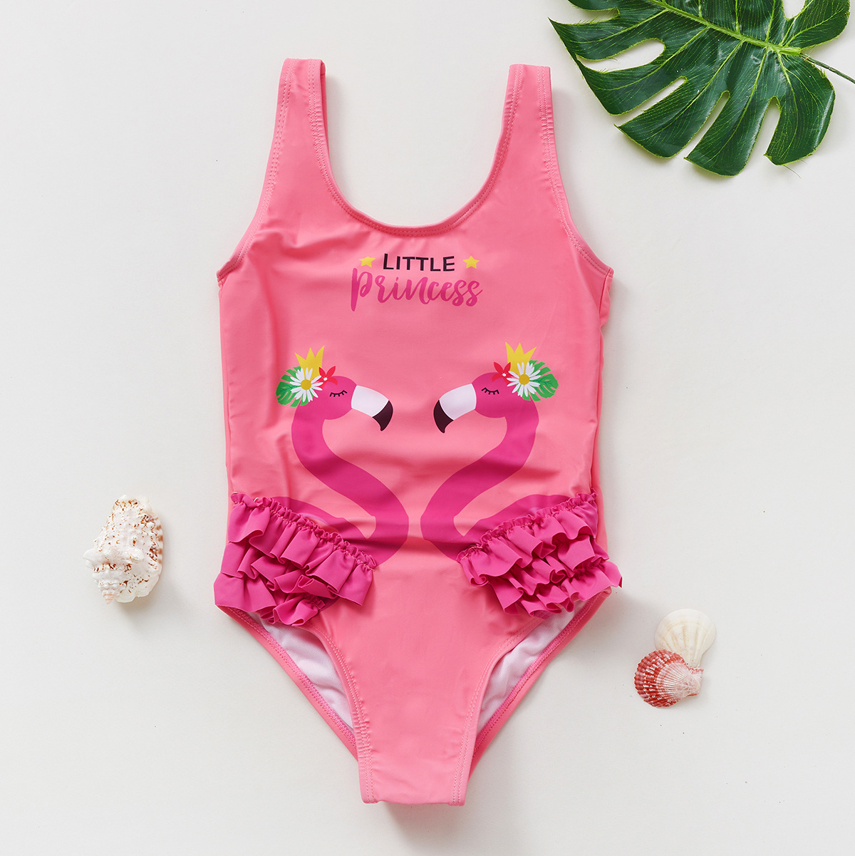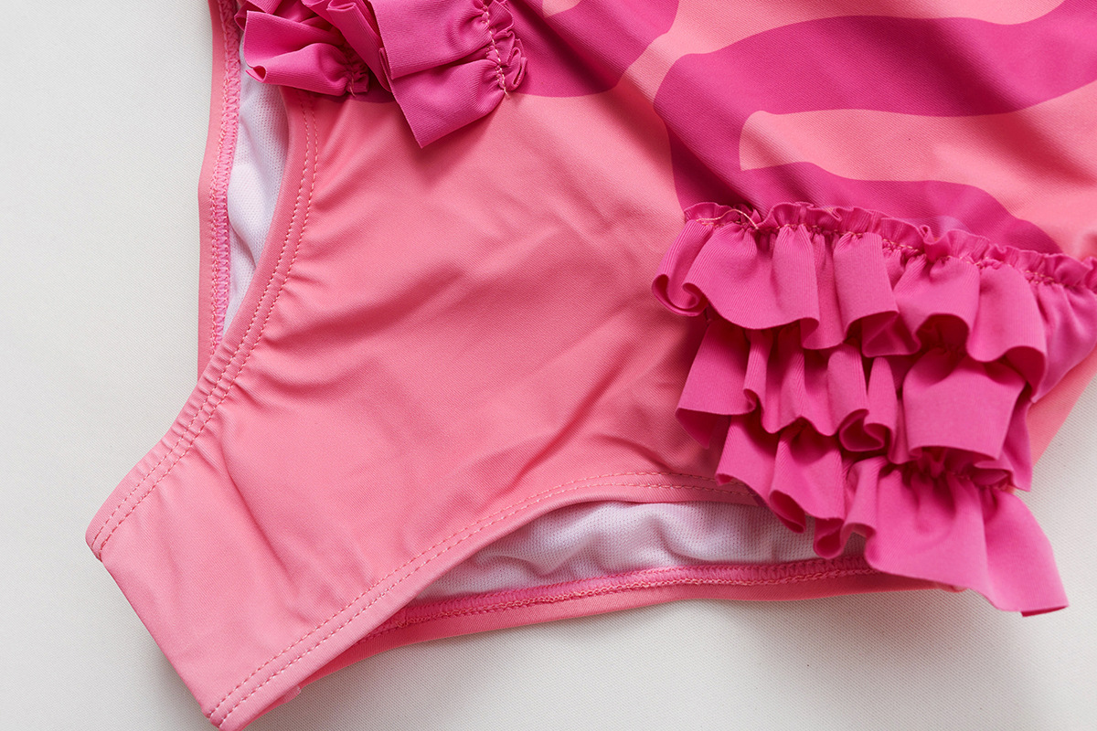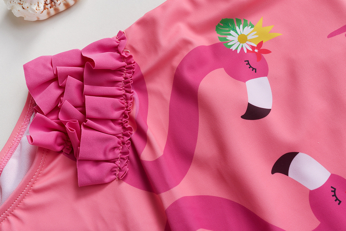 새로운 국경 간 소녀 수영복 어린이 주름 장식 원피스 수영복 플라밍고 인쇄 원피스 수영복