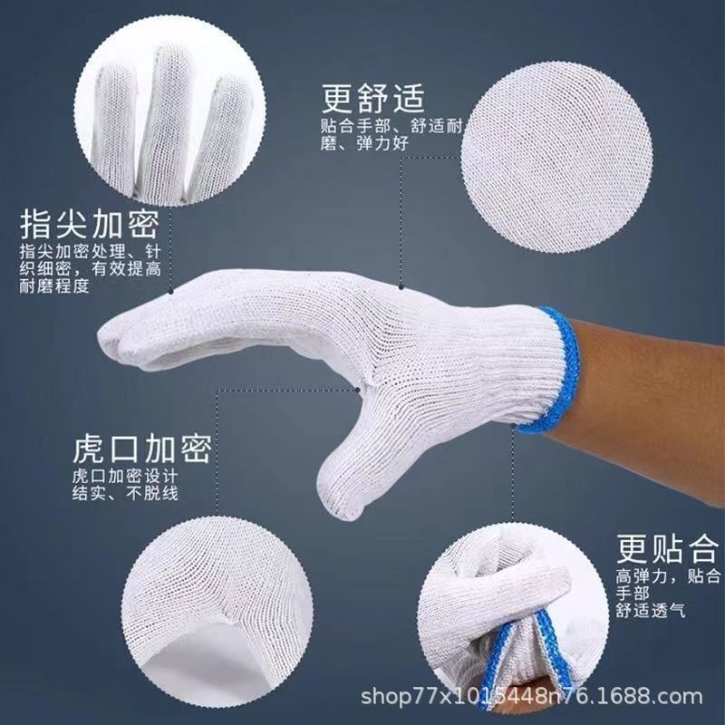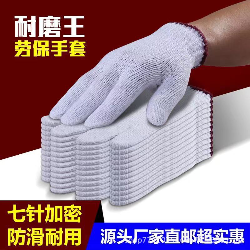 노동 보호 장갑 도매 두꺼운 홍화 면사 노동자 내마모성 작업 성인 일반 방어 장갑 흰색 장갑스토어 가기