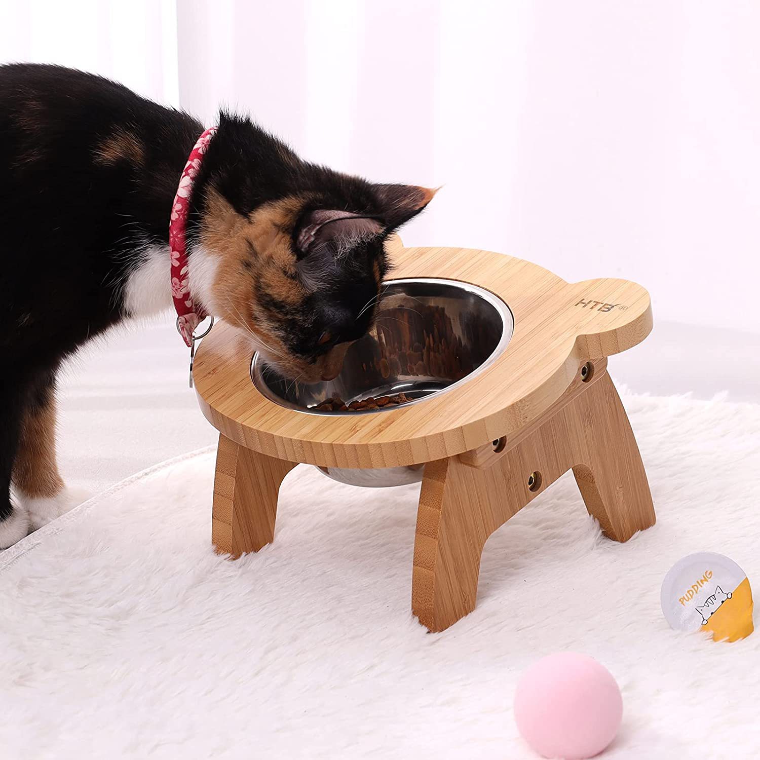 애완 동물 고양이 음식 그릇 랙 15 ° 기울어진 높은 고양이 개 먹이 고양이 고양이 작은 개에 적합한 물 그릇 피더스토어 가기
