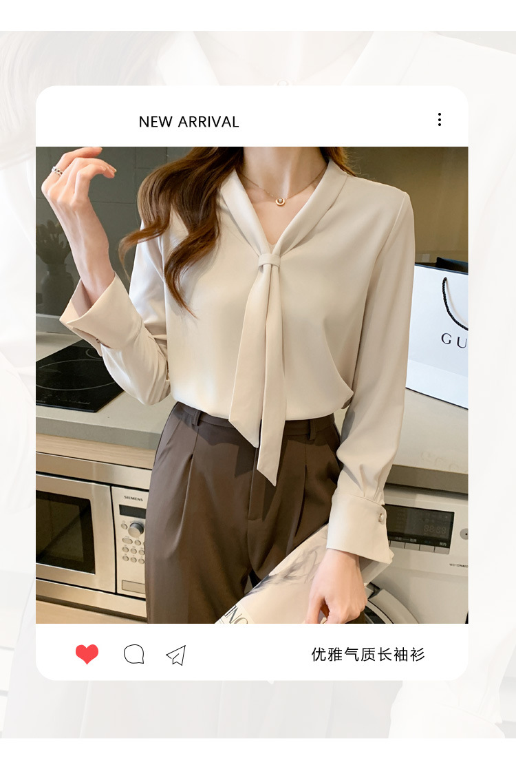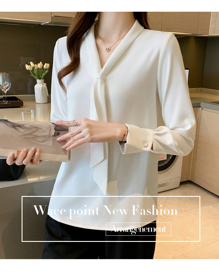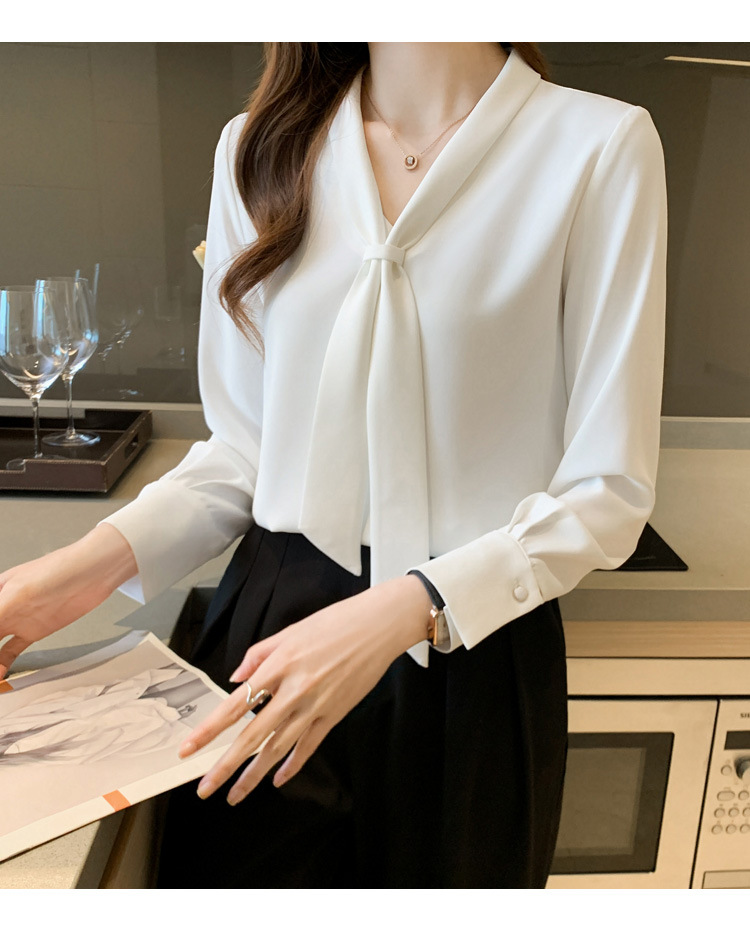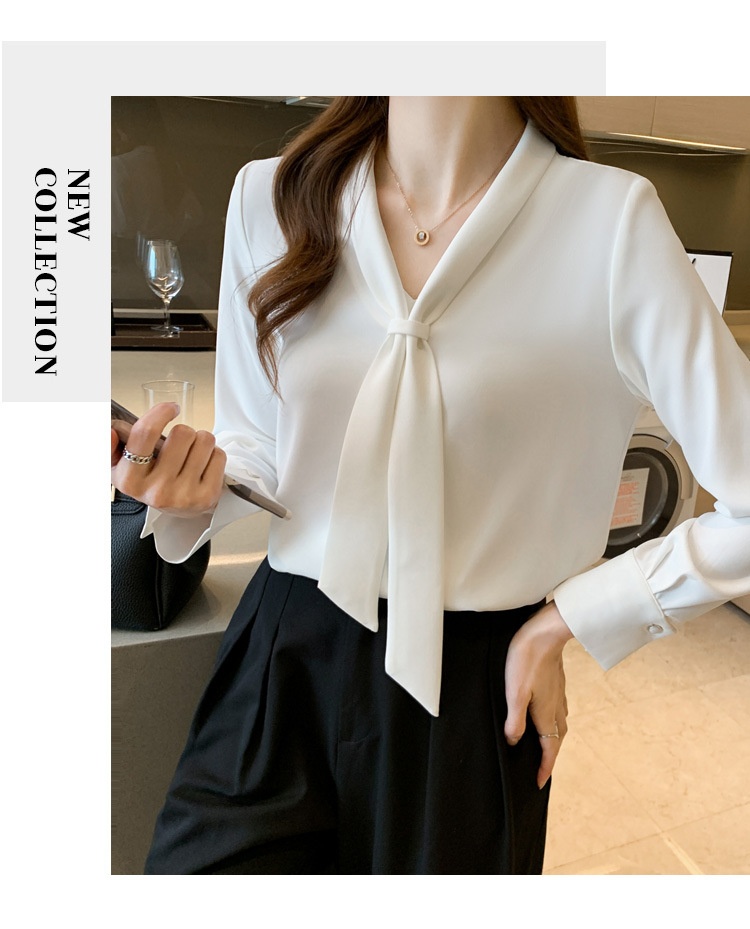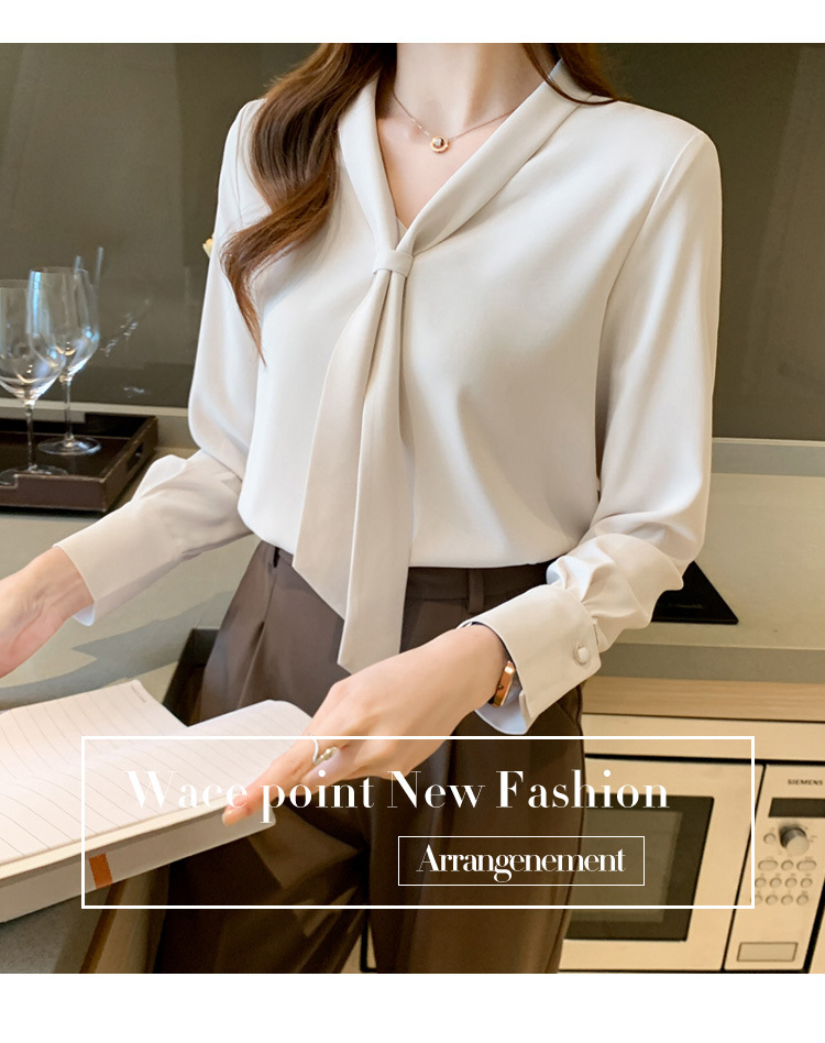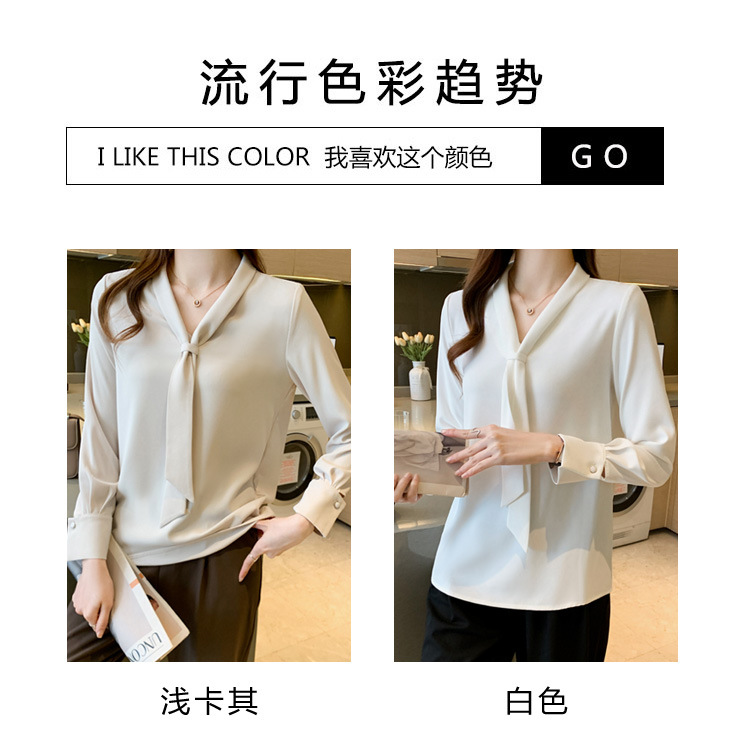 2024 봄과 가을 새로운 패션 디자인 달콤한 느슨한 긴팔 리본 솔리드 컬러 쉬폰 셔츠 바닥 셔츠스토어 가기