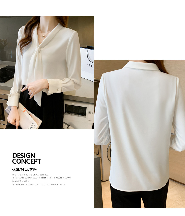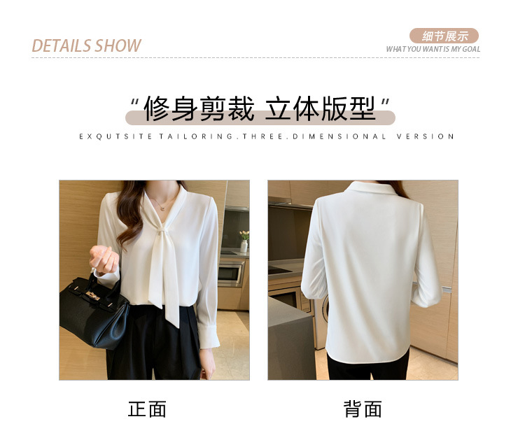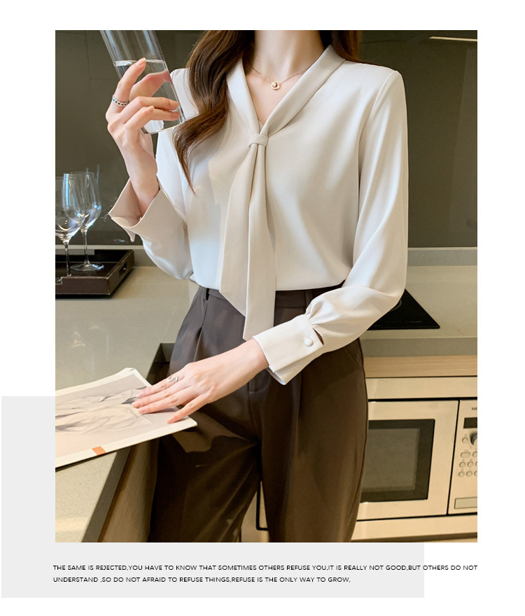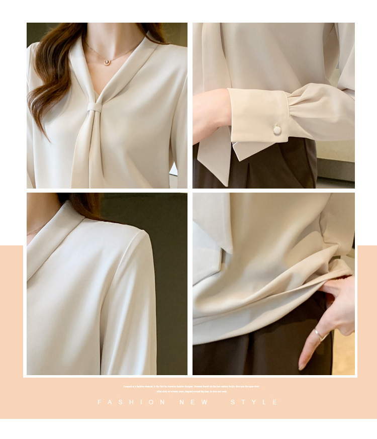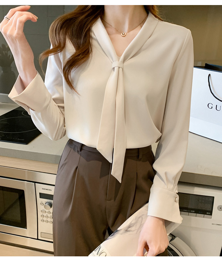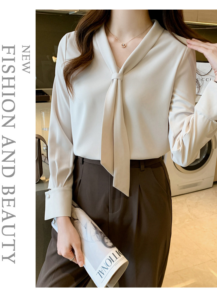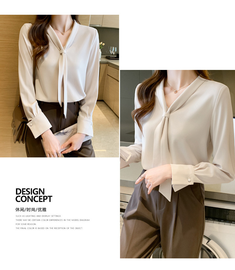 2024 봄과 가을 새로운 패션 디자인 달콤한 느슨한 긴팔 리본 솔리드 컬러 쉬폰 셔츠 바닥 셔츠스토어 가기