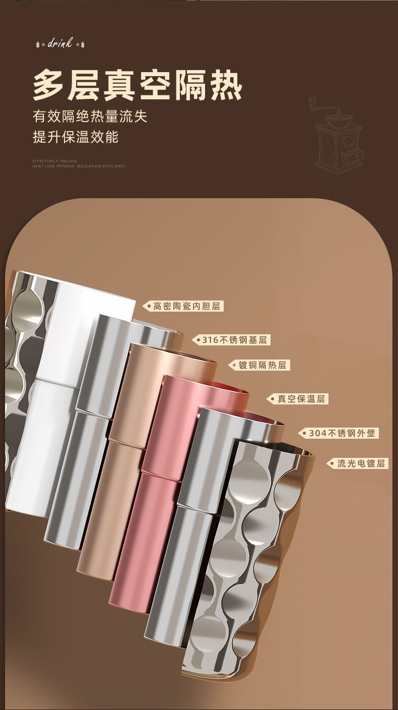세라믹 커피 컵 하이 컬러 가치 지능형 보온병 컵 스테인레스 스틸 휴대용 여성용 컵 동반 머그 고급 물 컵