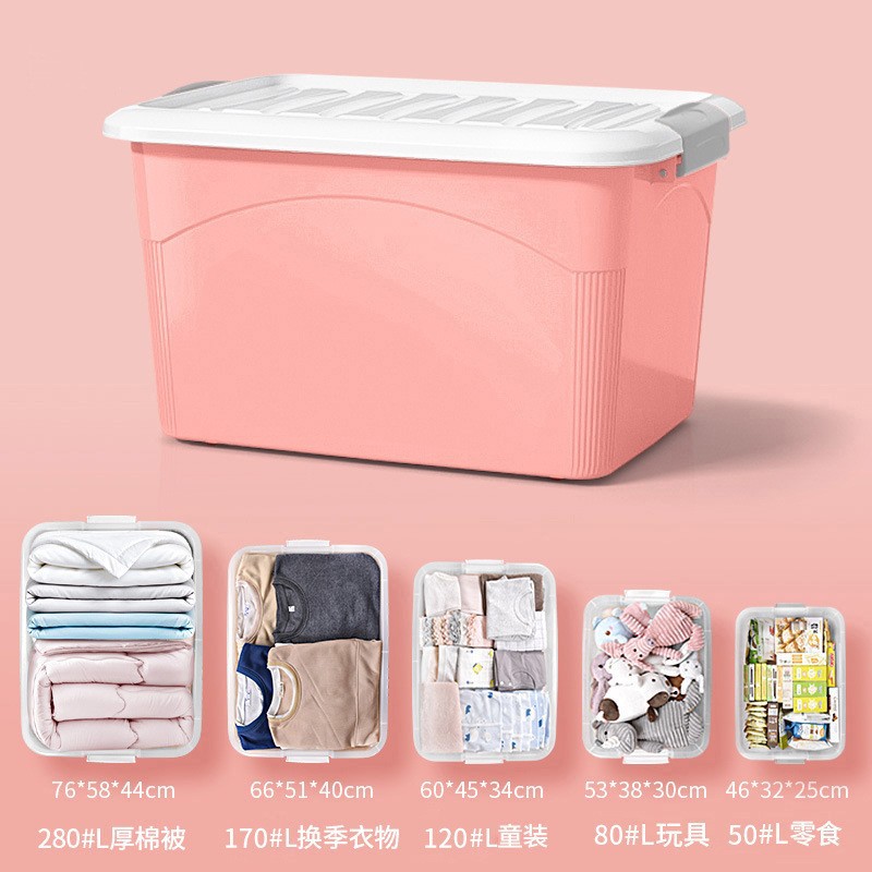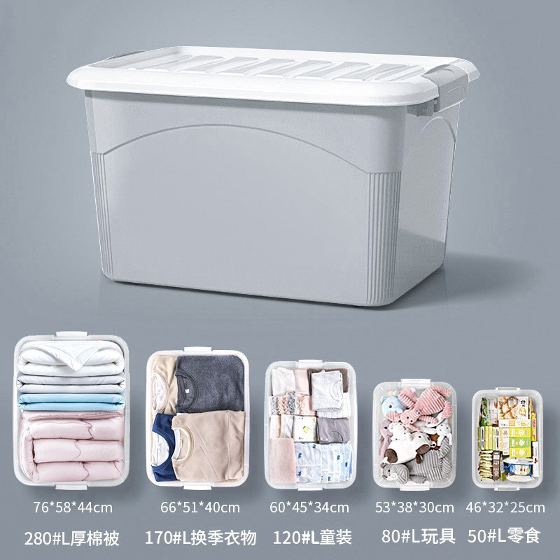 Pp 플라스틱 대형 보관함 어린이 장난감 보관함 기숙사 이불 옷 방진 보관함 뚜껑 도매스토어 가기