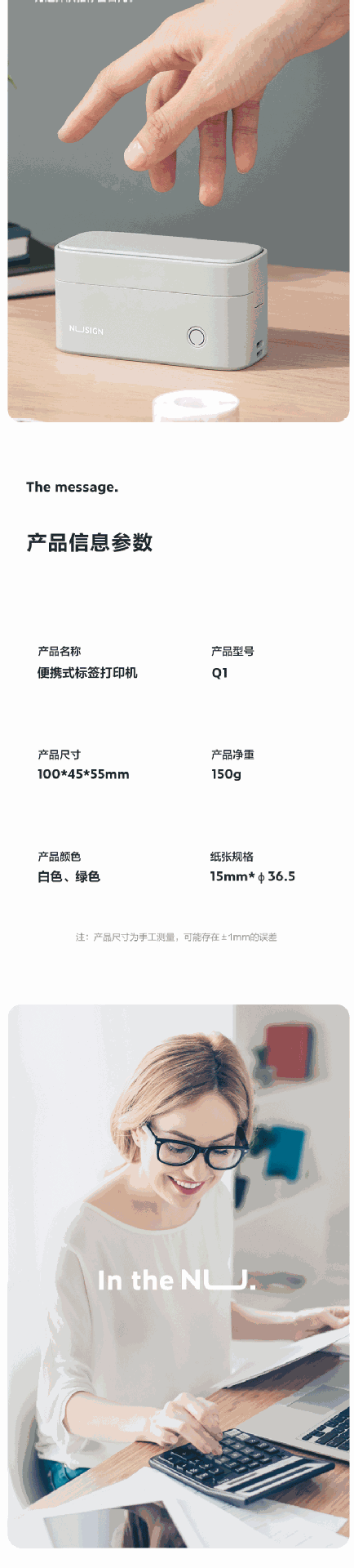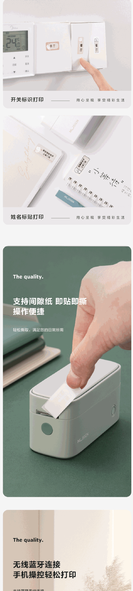 델리 Q1 라벨 프린터 지능형 열 라벨 기계 소형 스티커 자체 접착 컬러 라벨 용지 노트
