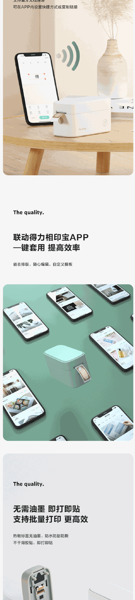 델리 Q1 라벨 프린터 지능형 열 라벨 기계 소형 스티커 자체 접착 컬러 라벨 용지 노트스토어 가기