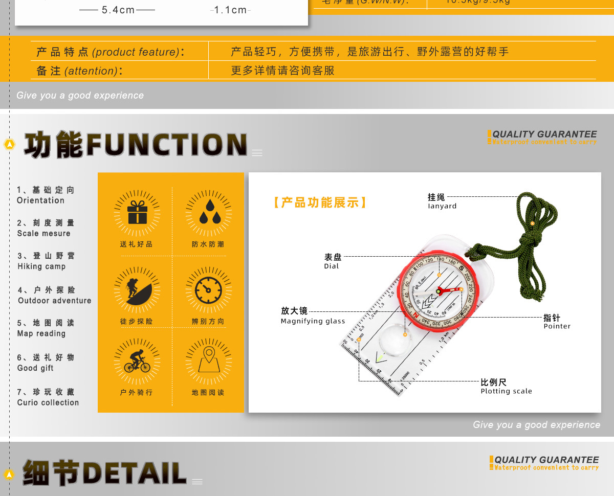 스케일 야외 포인터지도 통치자 매핑 통치자 나침반 통치자와 함께 DC47-7 빛나는 나침반 공급