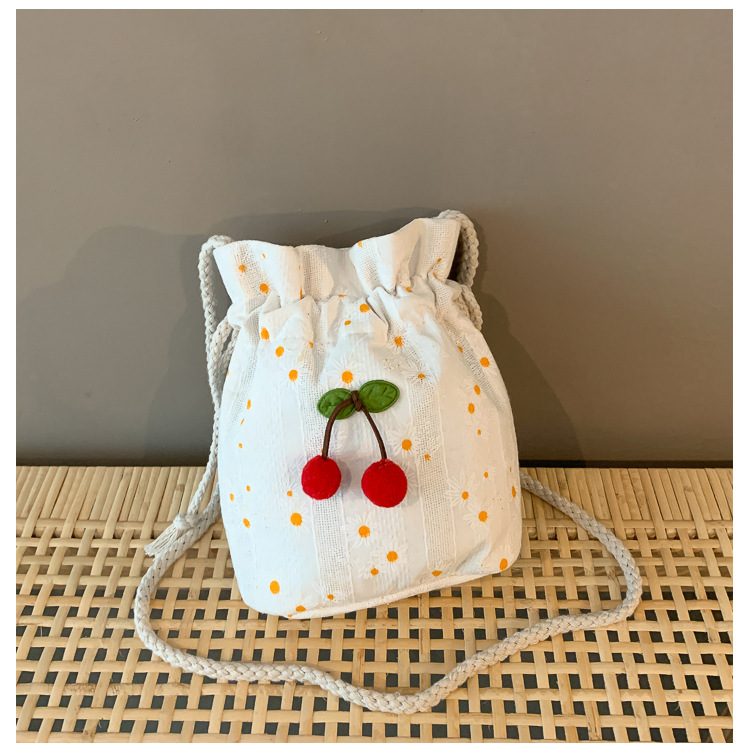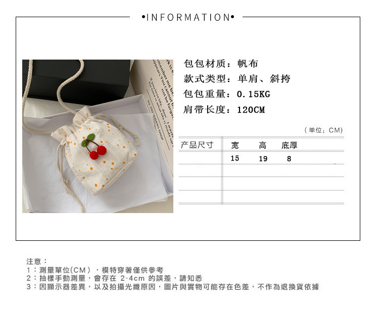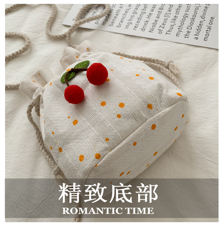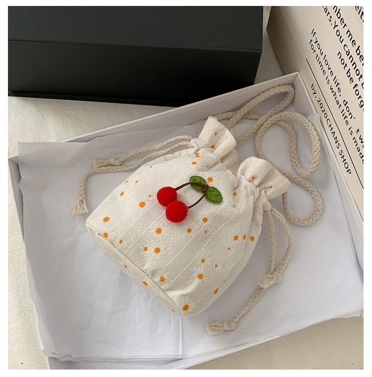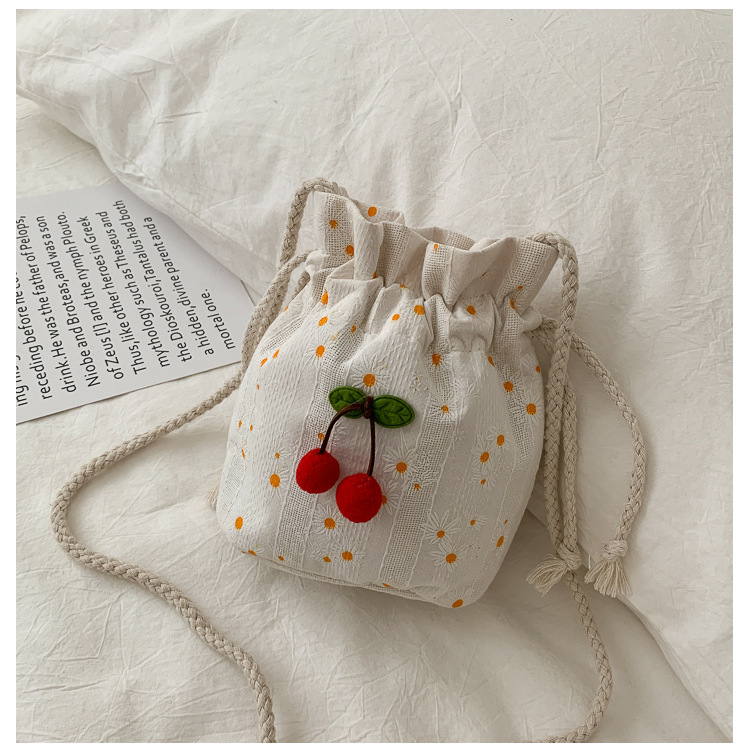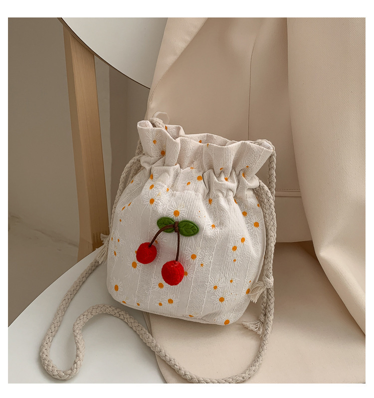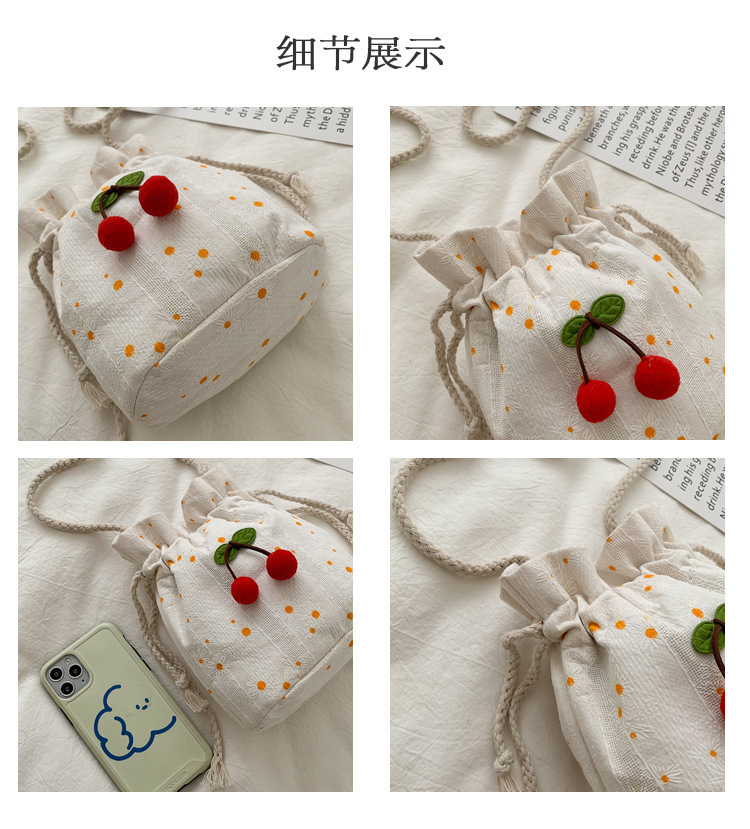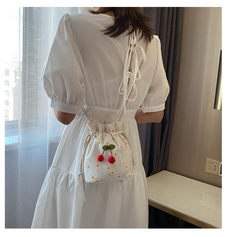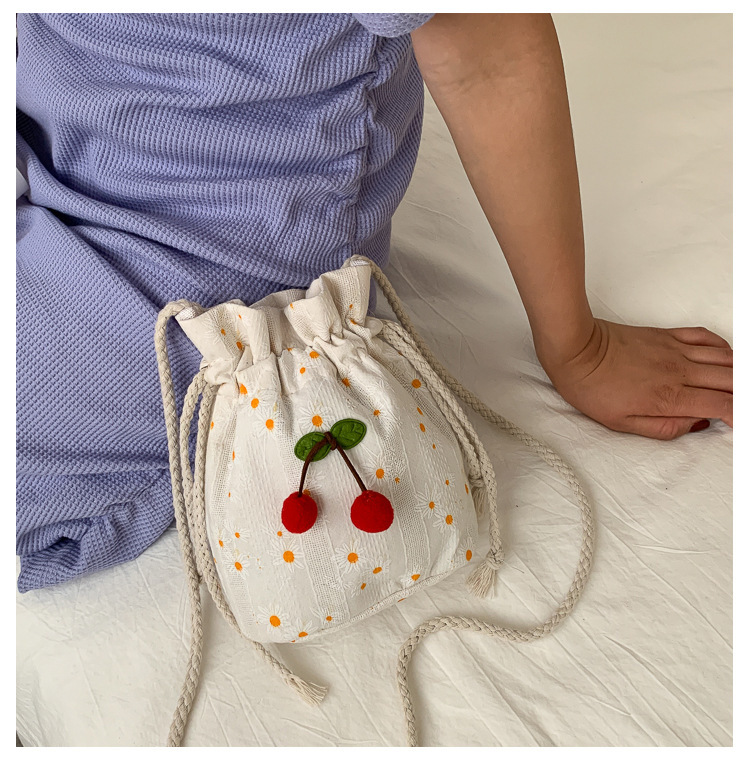 짠 체리 캔버스 버킷 작은 가방 여성 가방 23 여름 새로운 패션 한국 스타일 올 매치 숄더 메신저 백스토어 가기