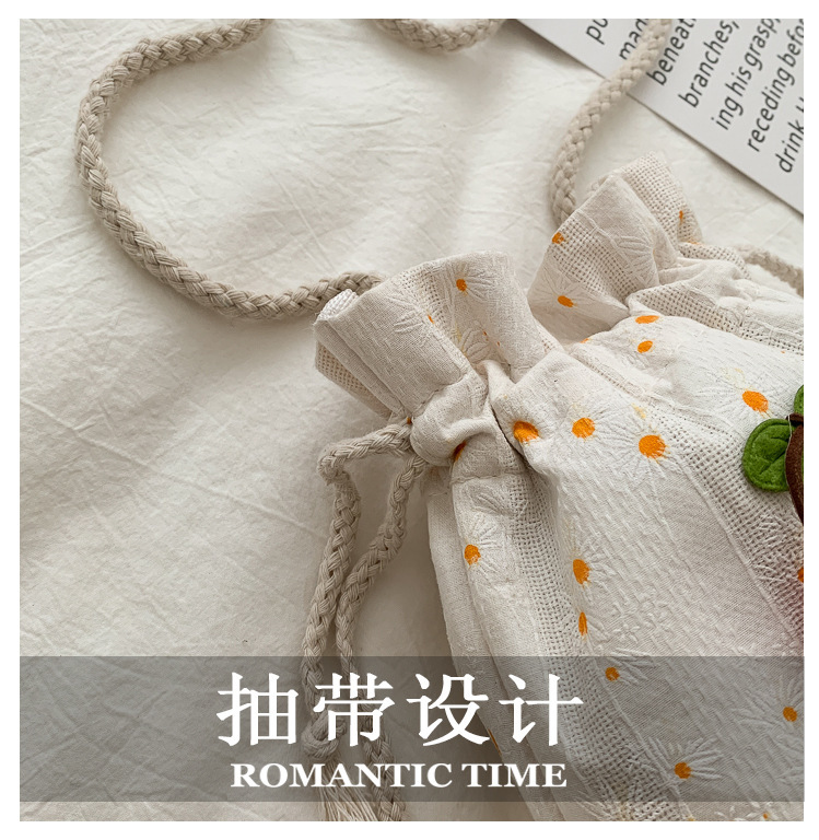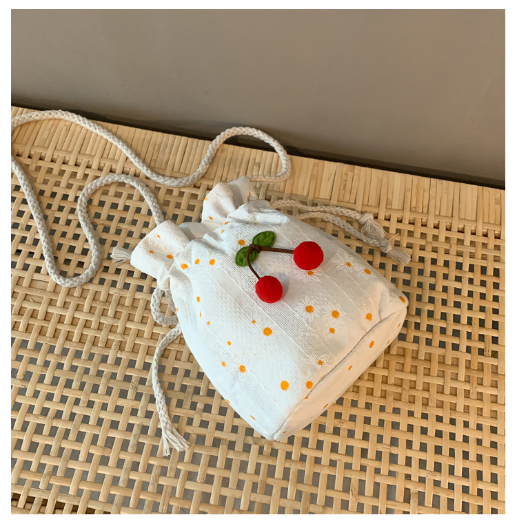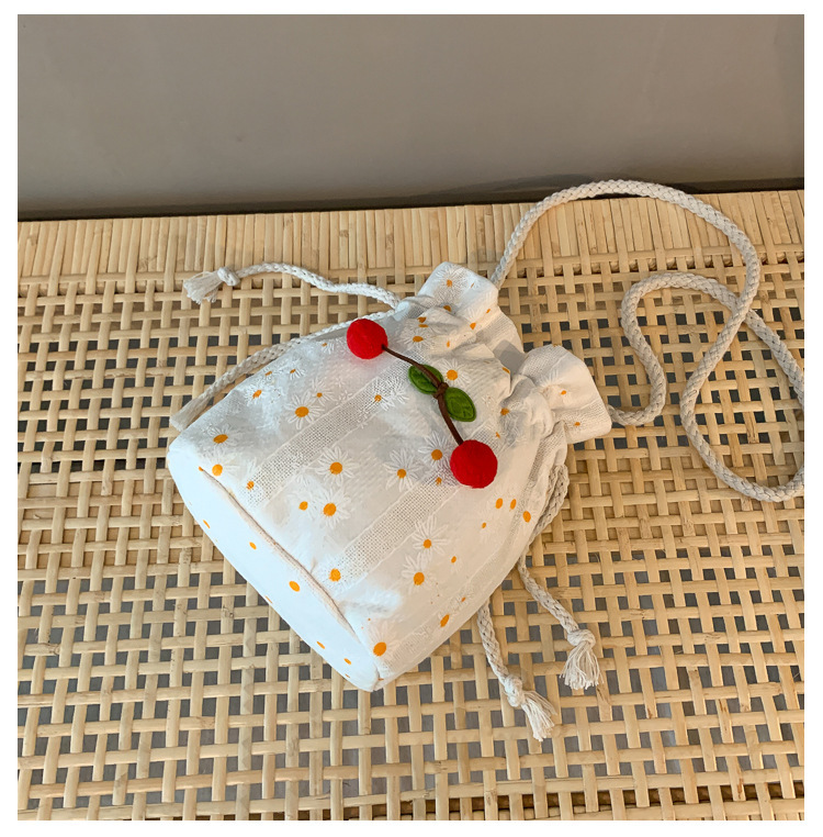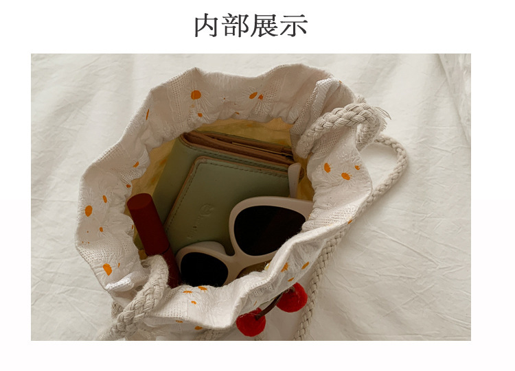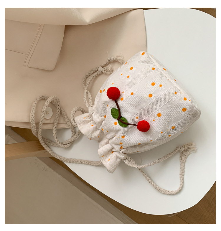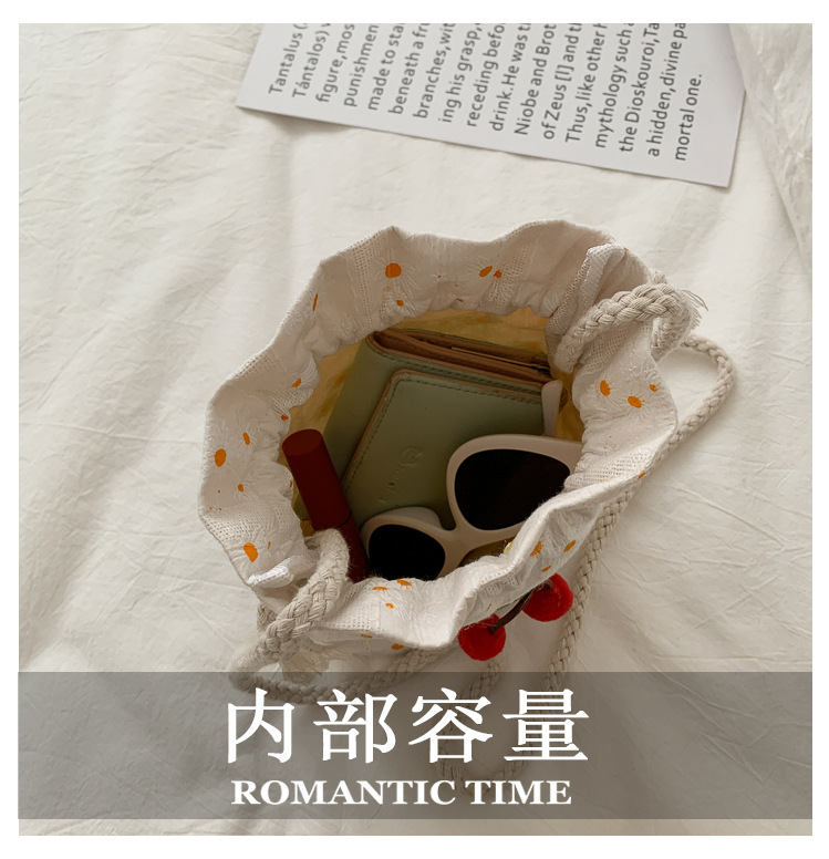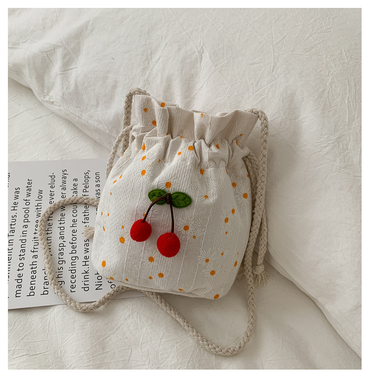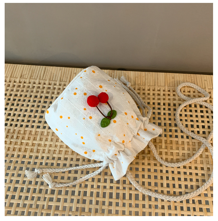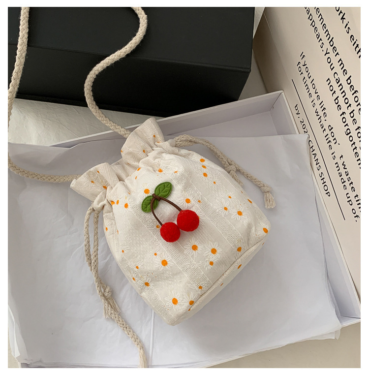 짠 체리 캔버스 버킷 작은 가방 여성 가방 23 여름 새로운 패션 한국 스타일 올 매치 숄더 메신저 백스토어 가기