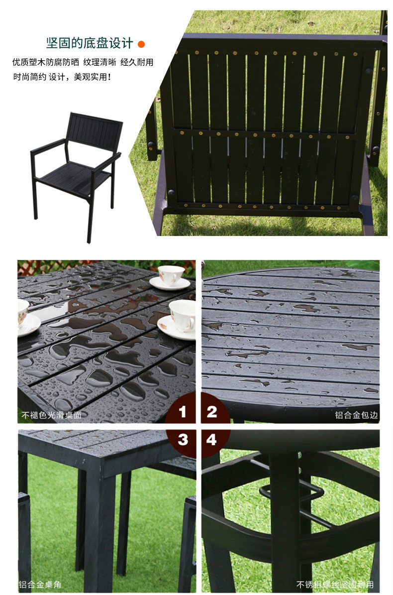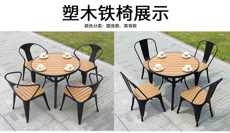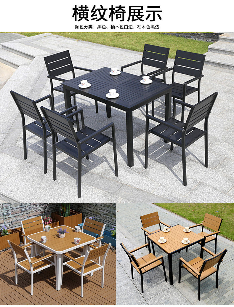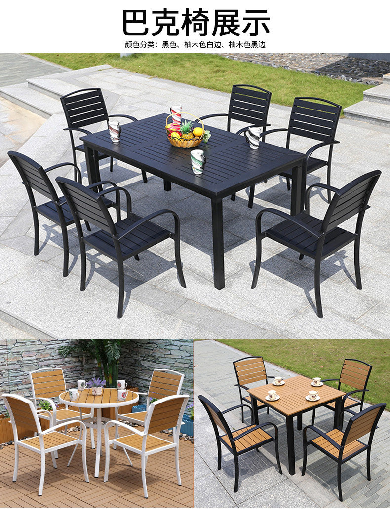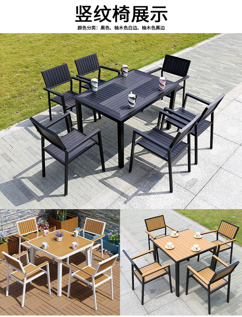 야외 테이블과 의자 나무 플라스틱 의자 안뜰 발코니 부식 방지 나무 등받이 의자 현대 간단한 카페 레스토랑 식탁과 의자