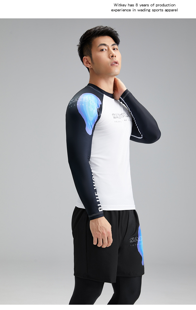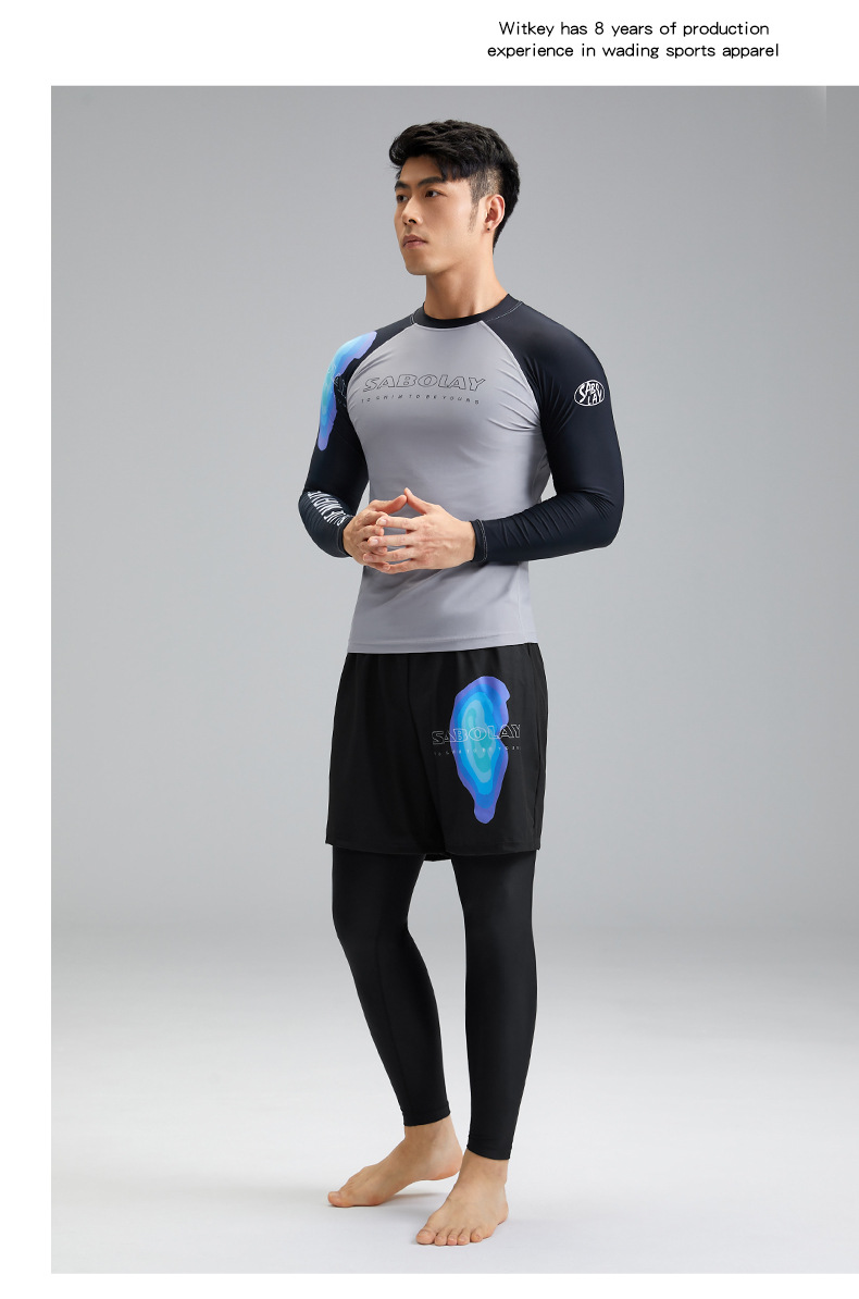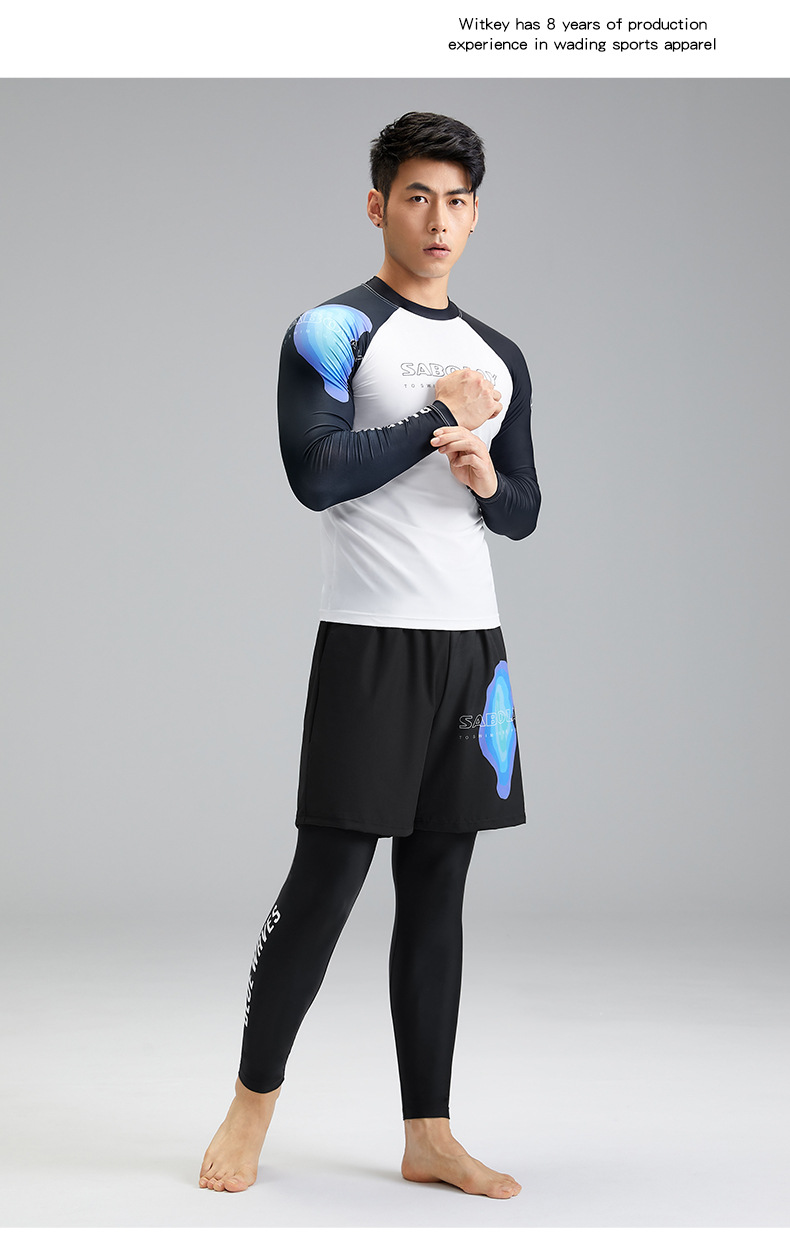 새로운 상어 폴라로이드 남자 분할 수영복 수영 트렁크 세트 남자 여름 태양 보호 UPF50 레이싱 서핑 수트 남자스토어 가기