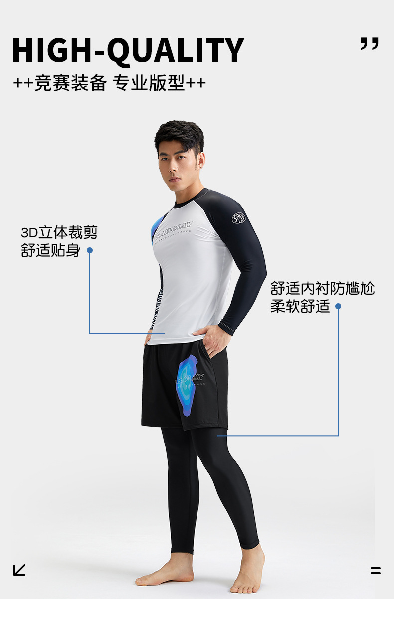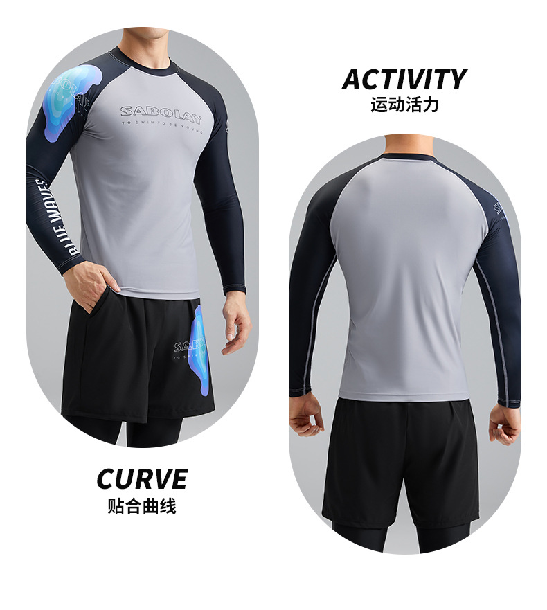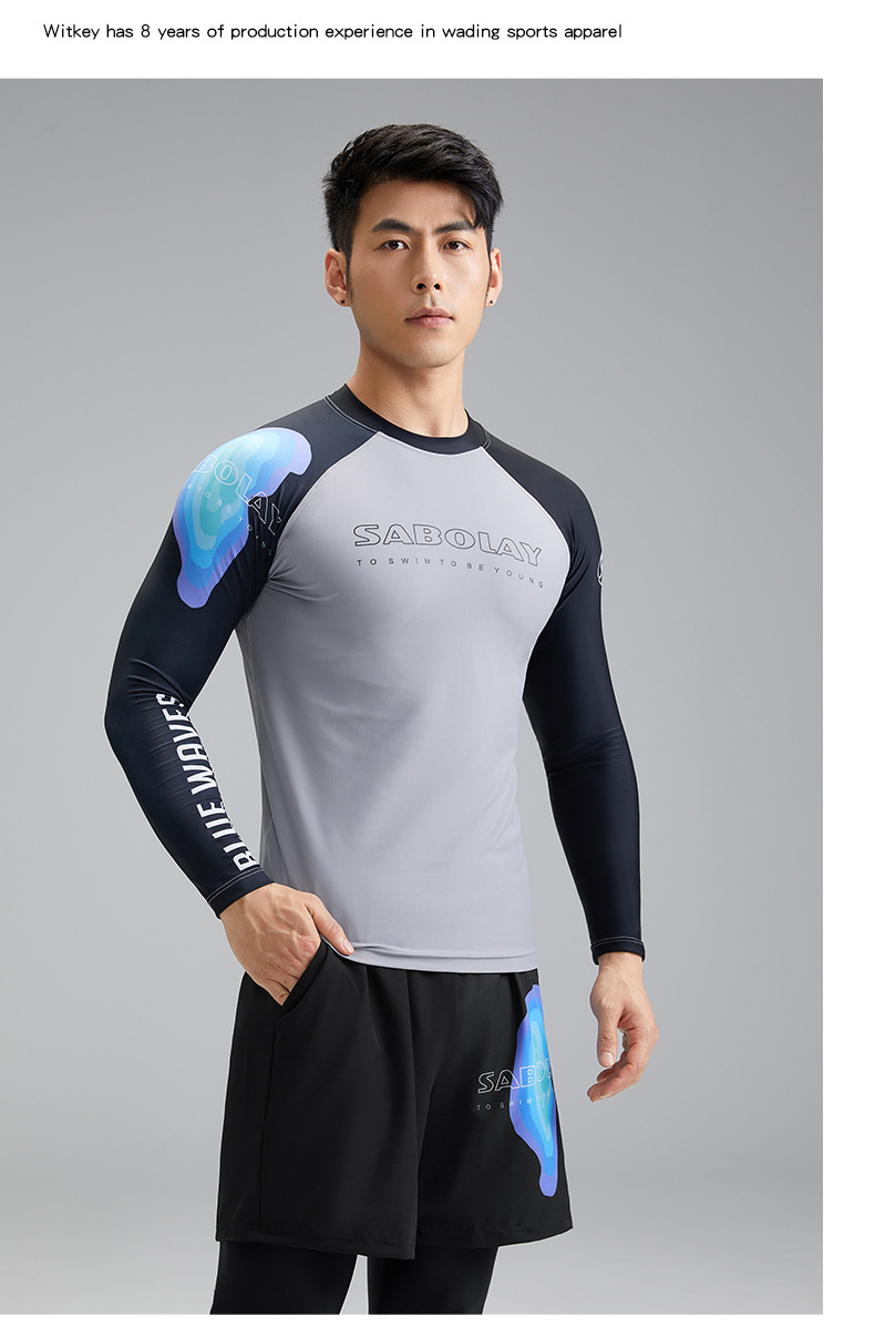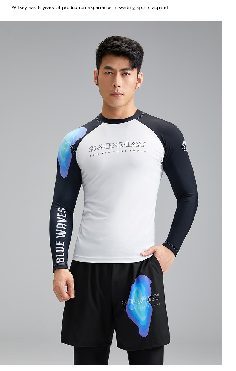 새로운 상어 폴라로이드 남자 분할 수영복 수영 트렁크 세트 남자 여름 태양 보호 UPF50 레이싱 서핑 수트 남자스토어 가기