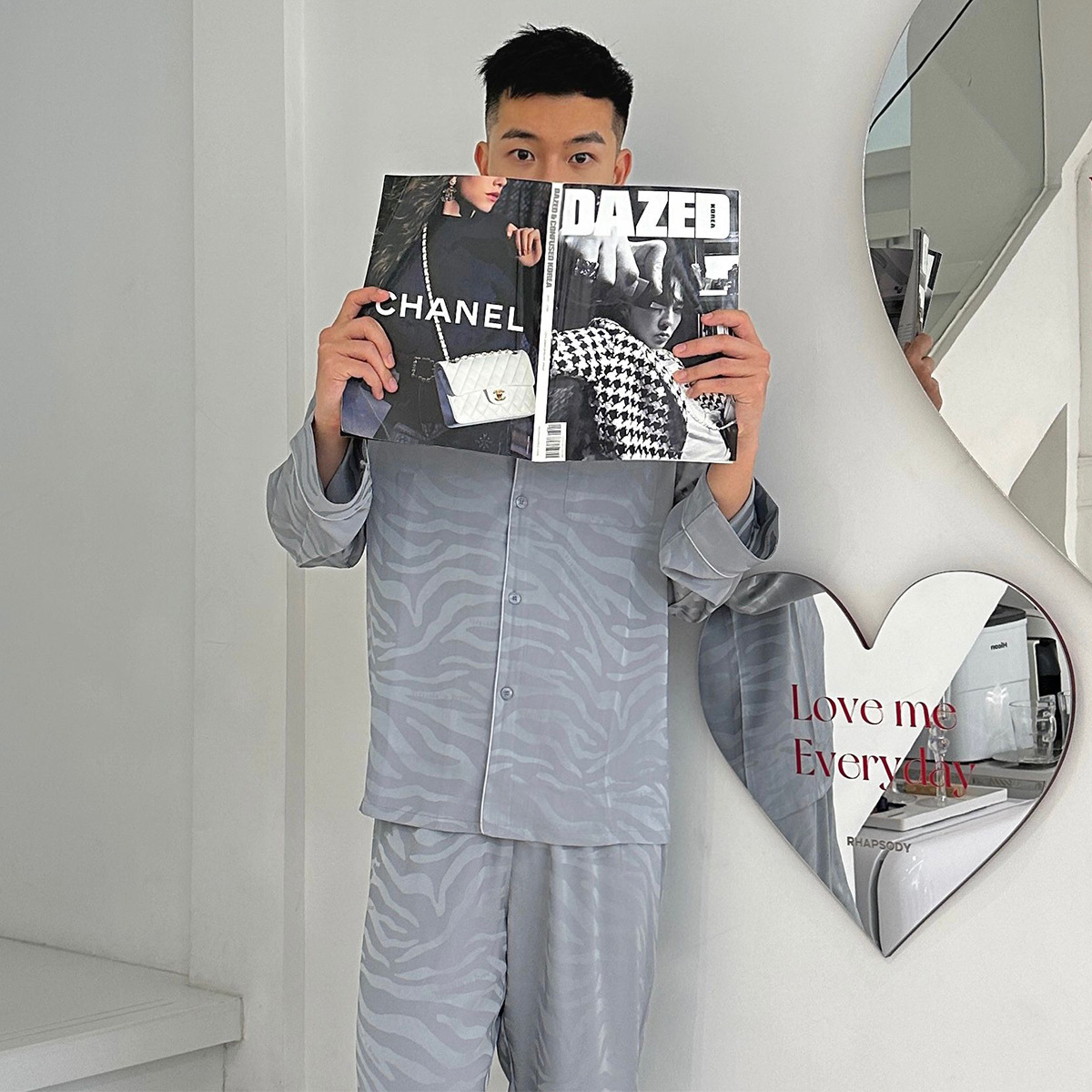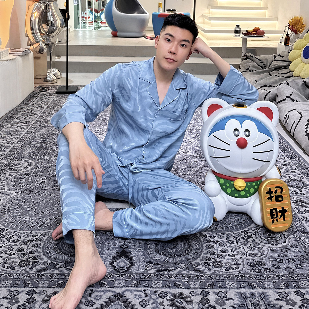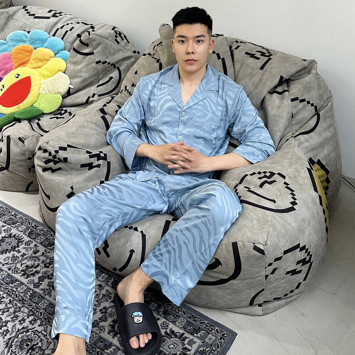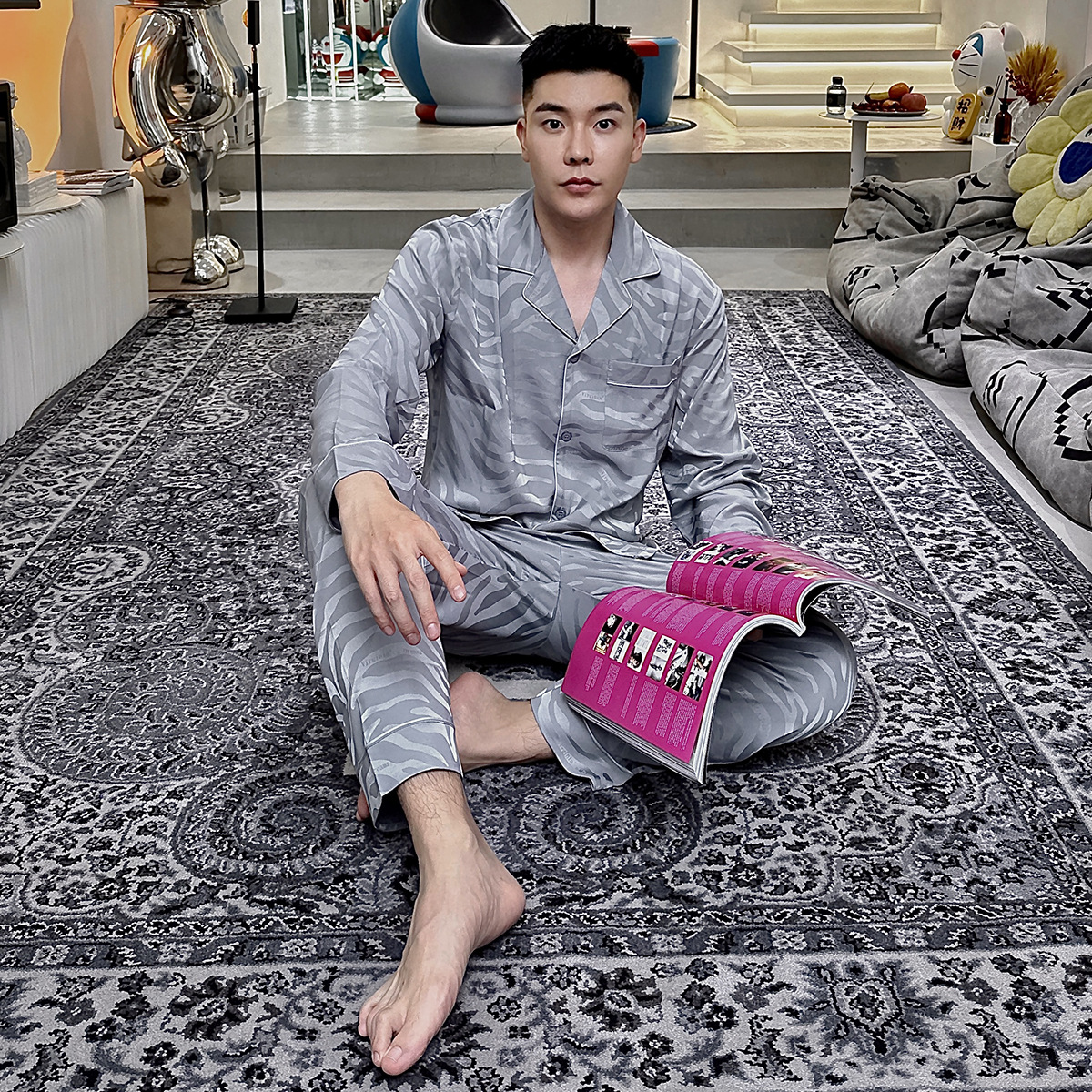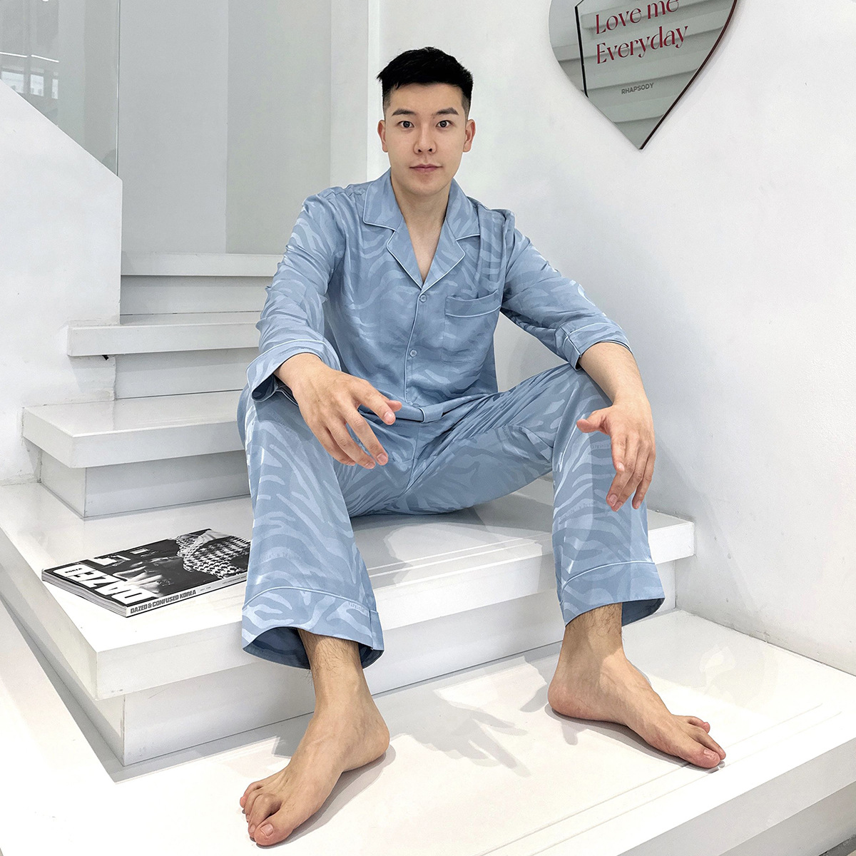 작은 빨간 책 추천 새틴 얼룩말 패턴 얼음 실크 잠옷 자카드 남자의 긴 소매 바지 세트 가정 의류 봄과 가을스토어 가기