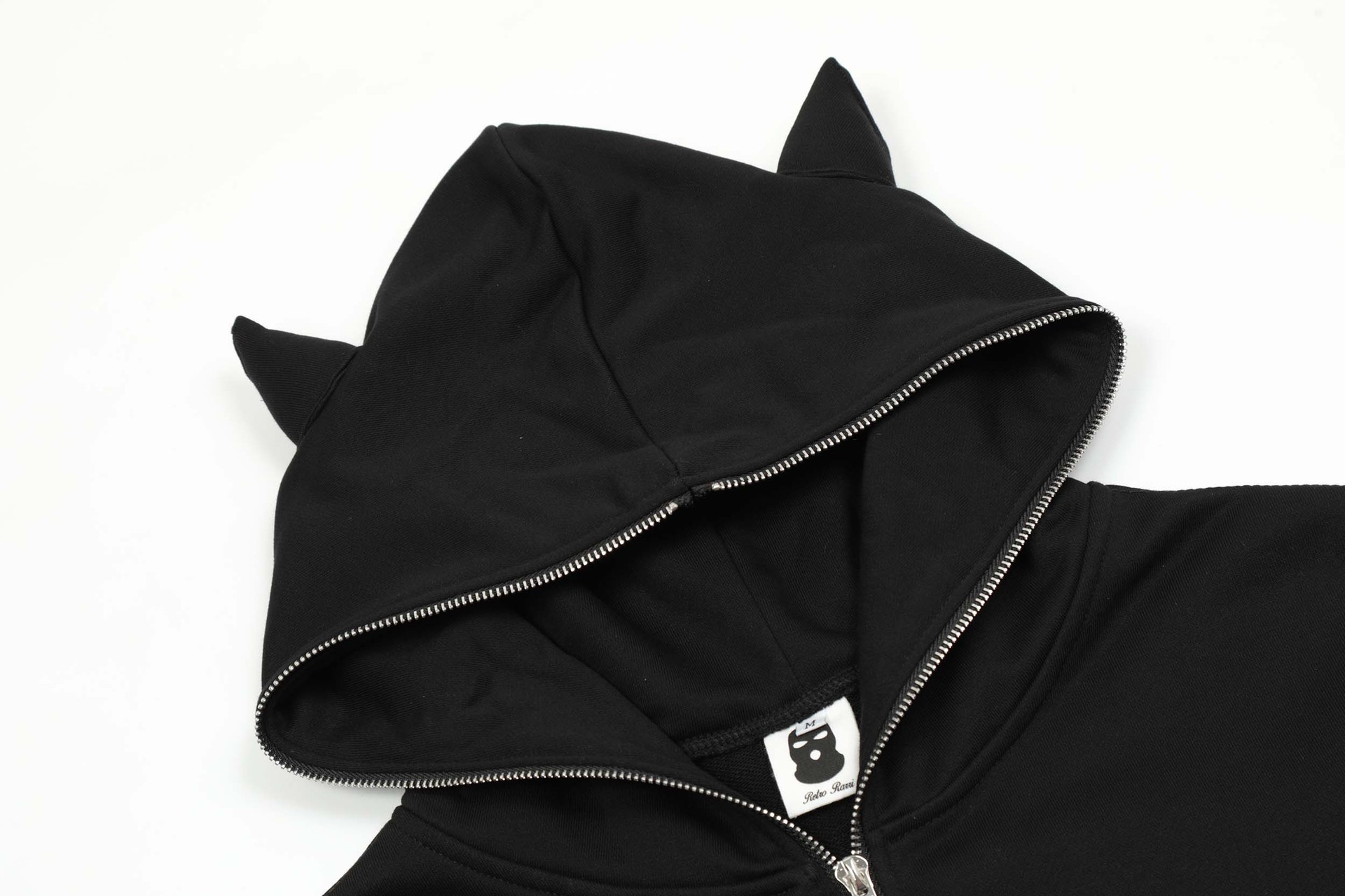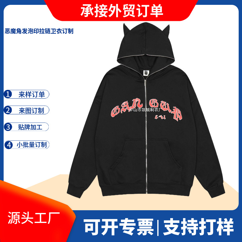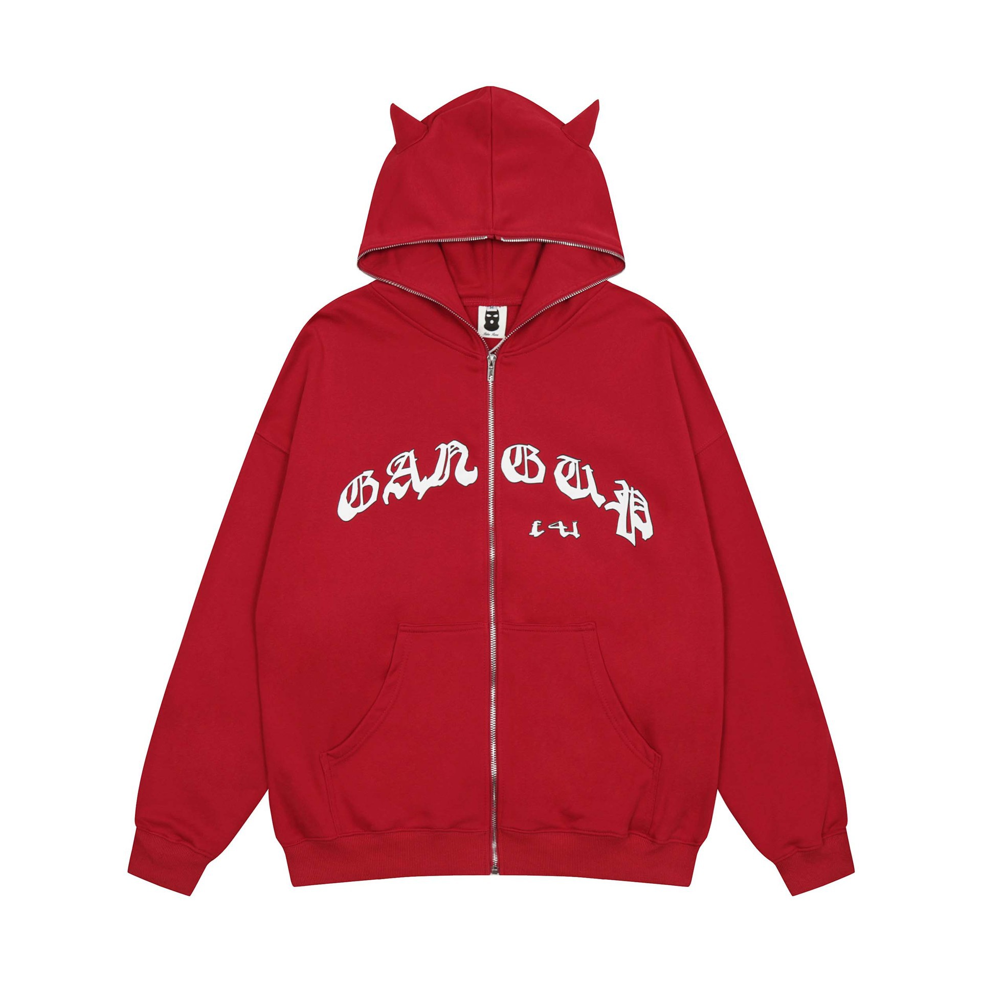 공장 맞춤형 스트리트 데빌 코너 프린트 후드 가디건 해외 무역 스웨트 셔츠 남성용 및 여성용 트렌디 브랜드 루즈한 힙합 재킷 남성용스토어 가기