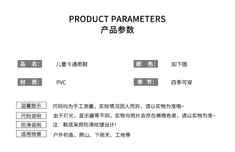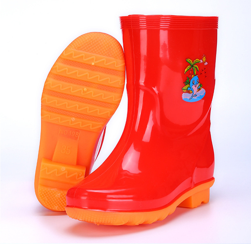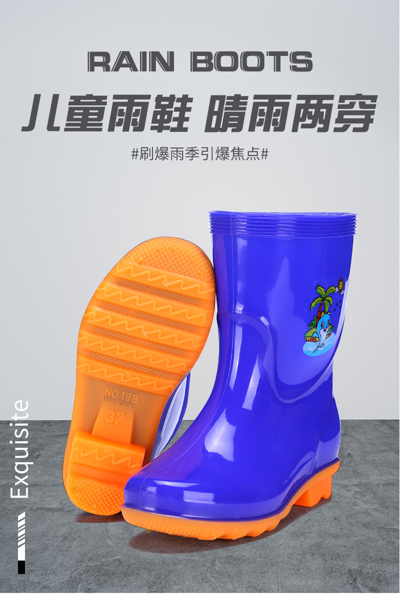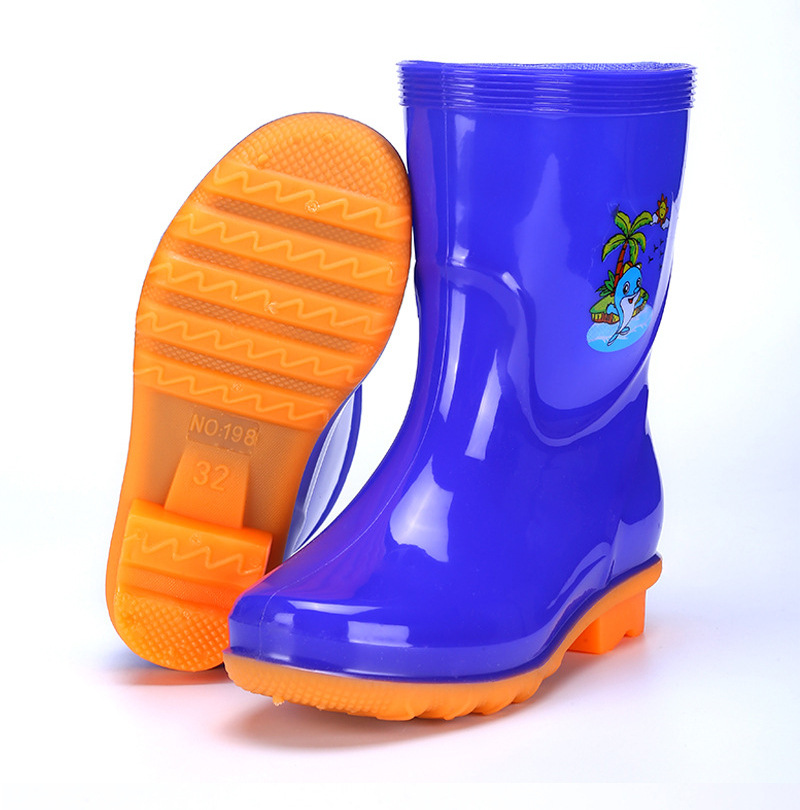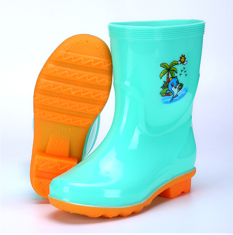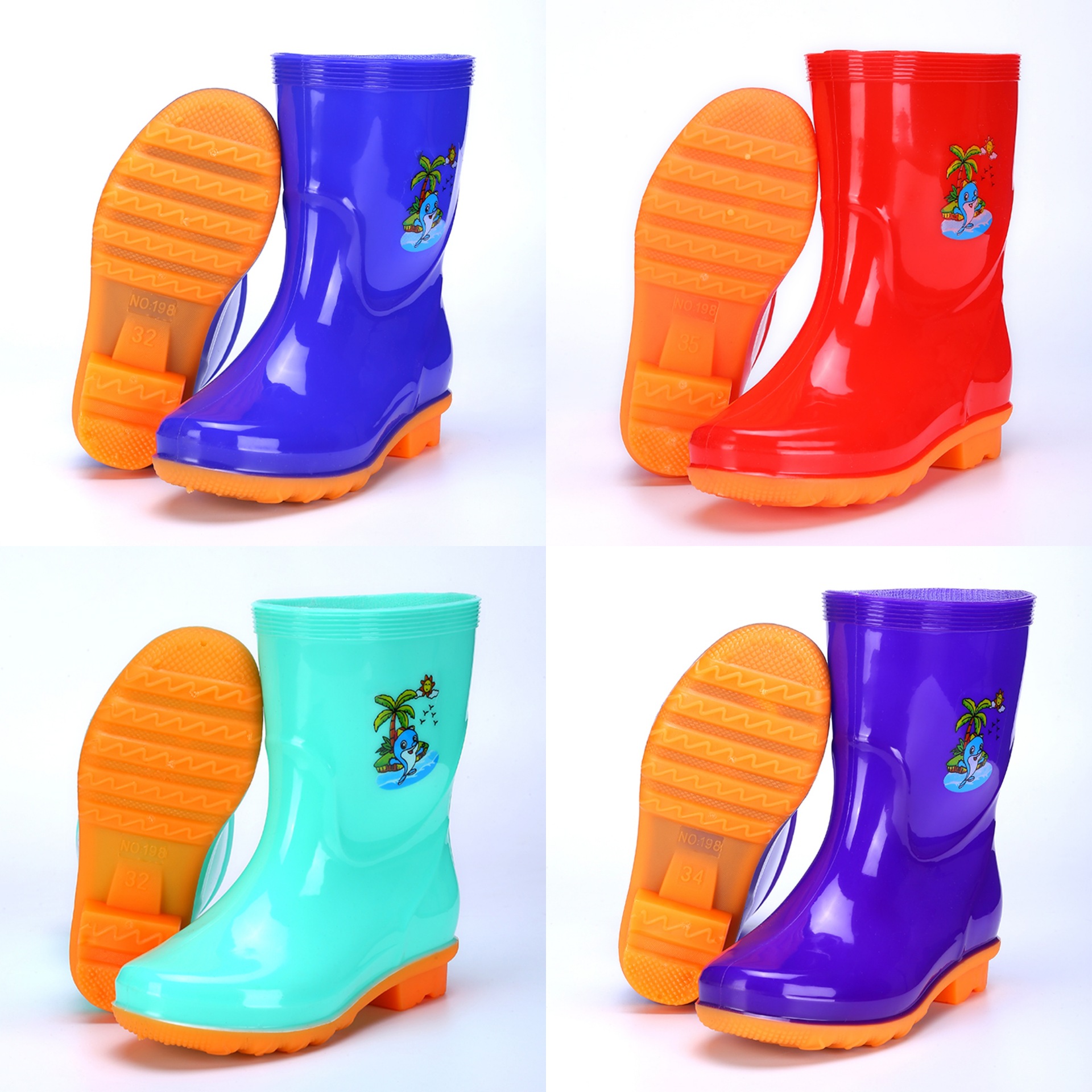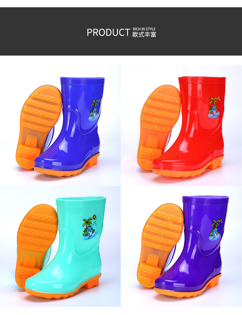 아니오. 어린이와 아기 학생을위한 198 어린이 비 부츠 장화 소년과 소녀 귀여운 크리스탈 만화 비 슬립 고무 신발