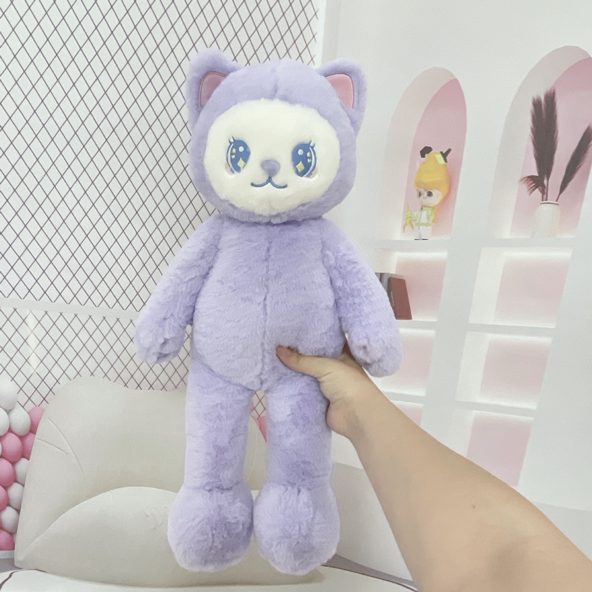 • 45cm 보라색 토끼 모피 파란 눈 고양이 가죽 케이스