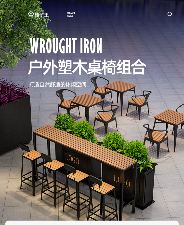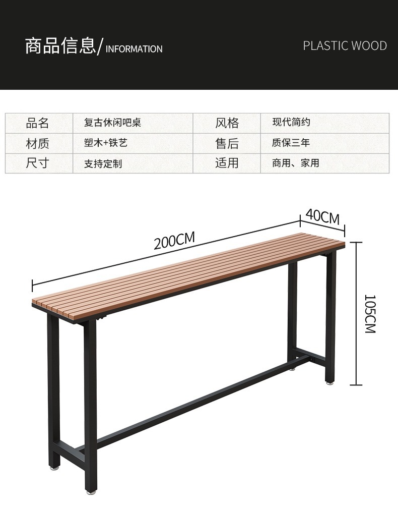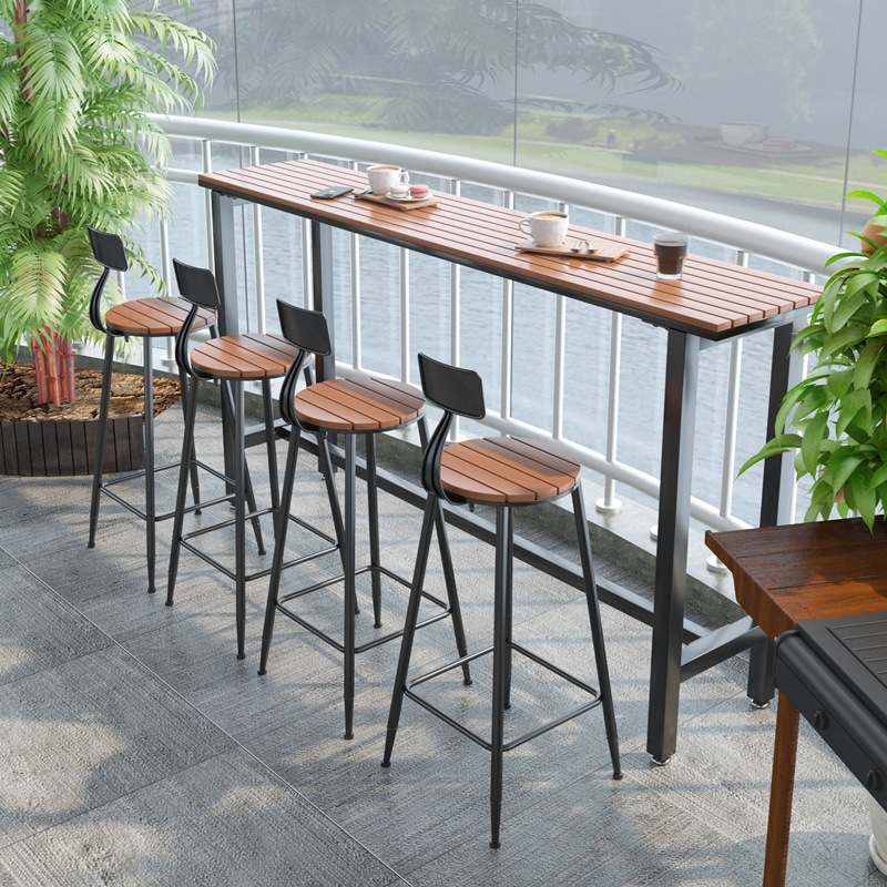 야외 바 테이블 가정용 야외 발코니 상업용 플라스틱 목재 창가 긴 테이블 커피 레트로 철제 발코니 바 테이블