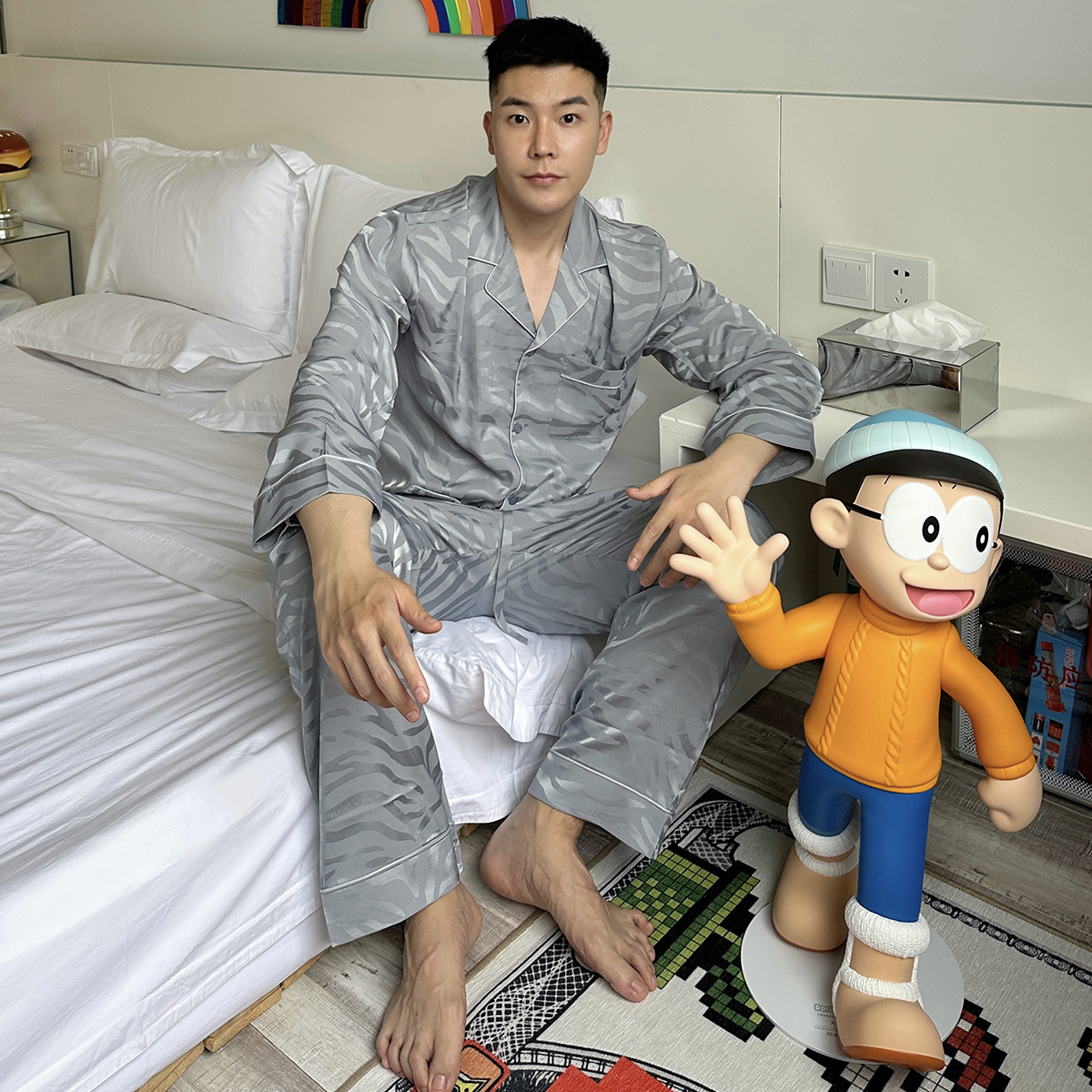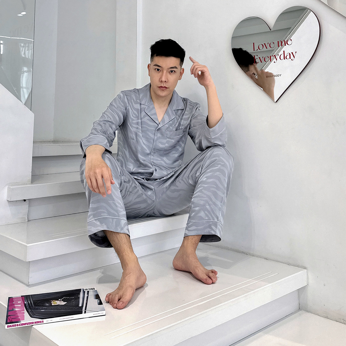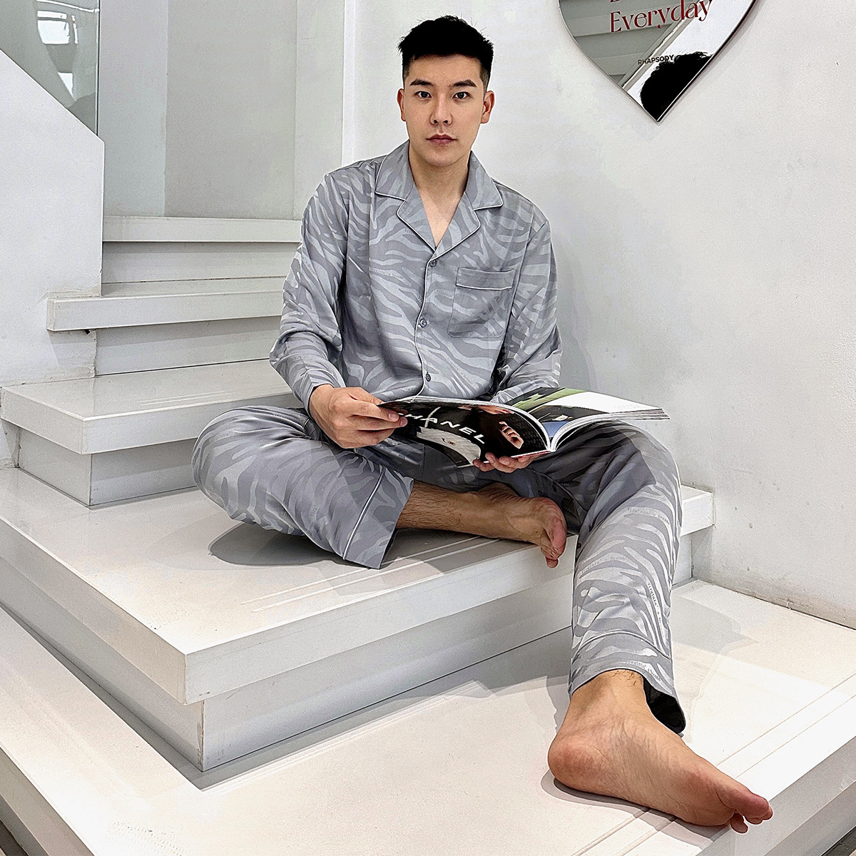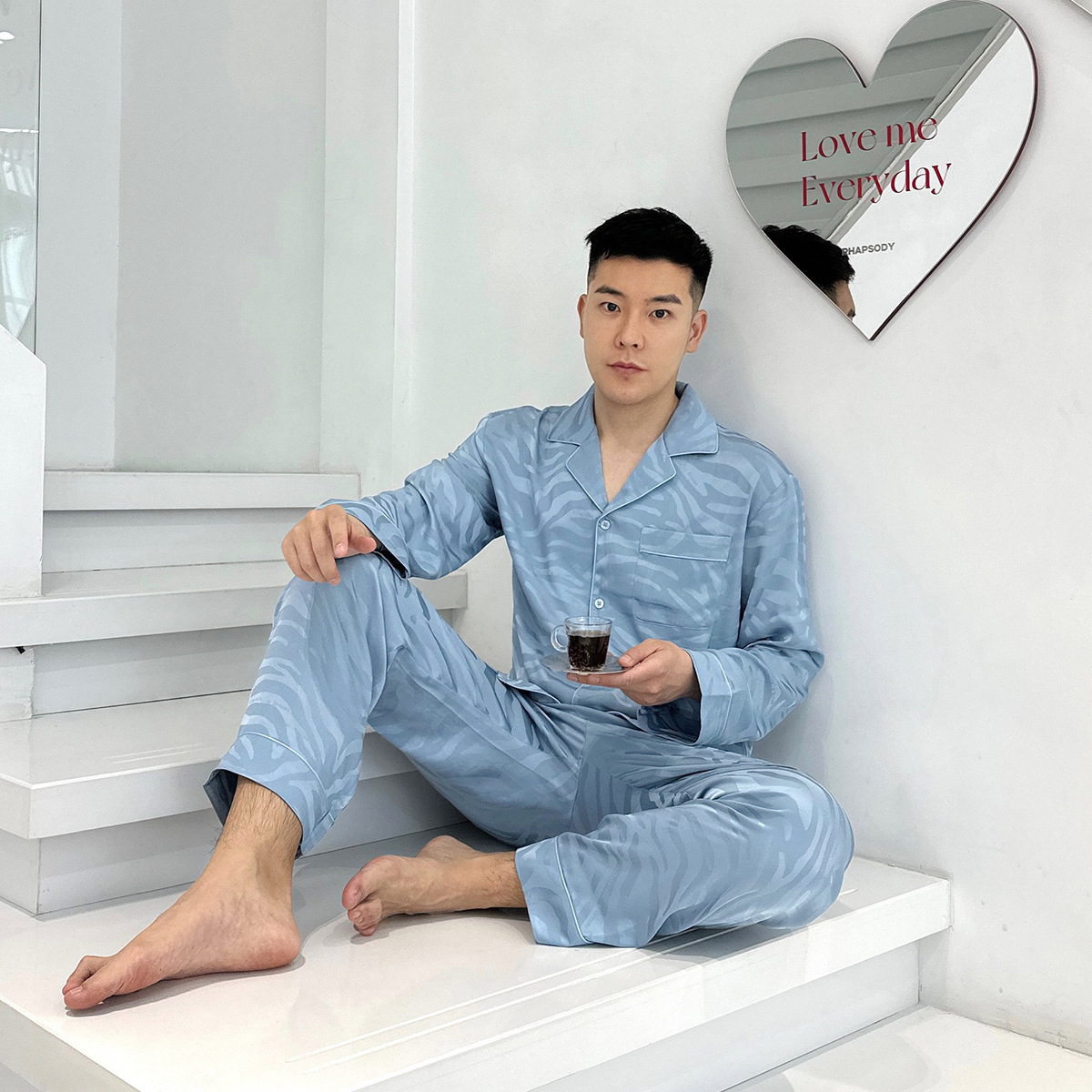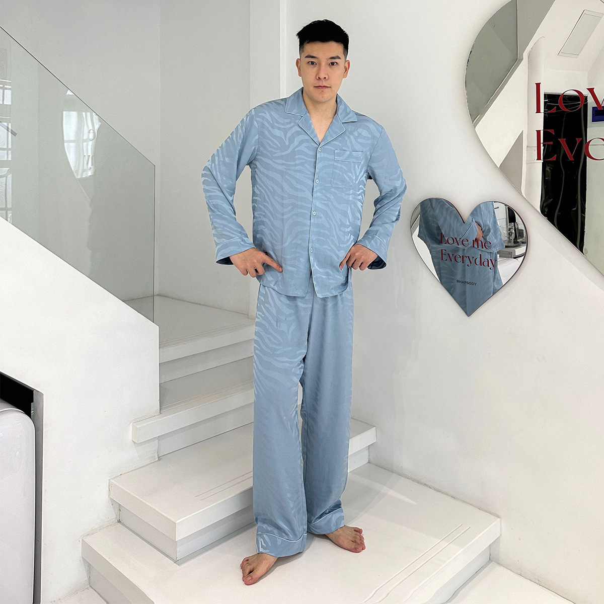 빨간 승마 책 도매 추천 얼음 실크 잠옷 얼룩말 자카드 남자의 긴 소매 바지 세트 가정 의류 봄과 가을스토어 가기