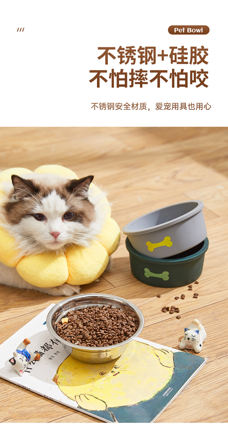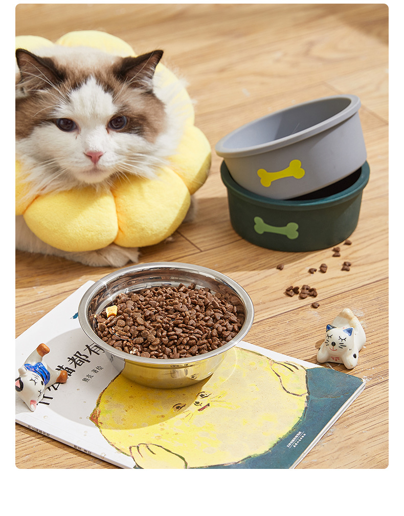 스테인리스 고양이 밥그릇 미끄럼 방지 실리콘 강아지 밥그릇 고양이 밥그릇 애완동물 급식기 애완용품 급수기