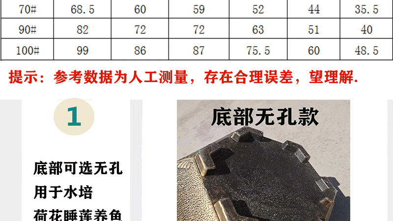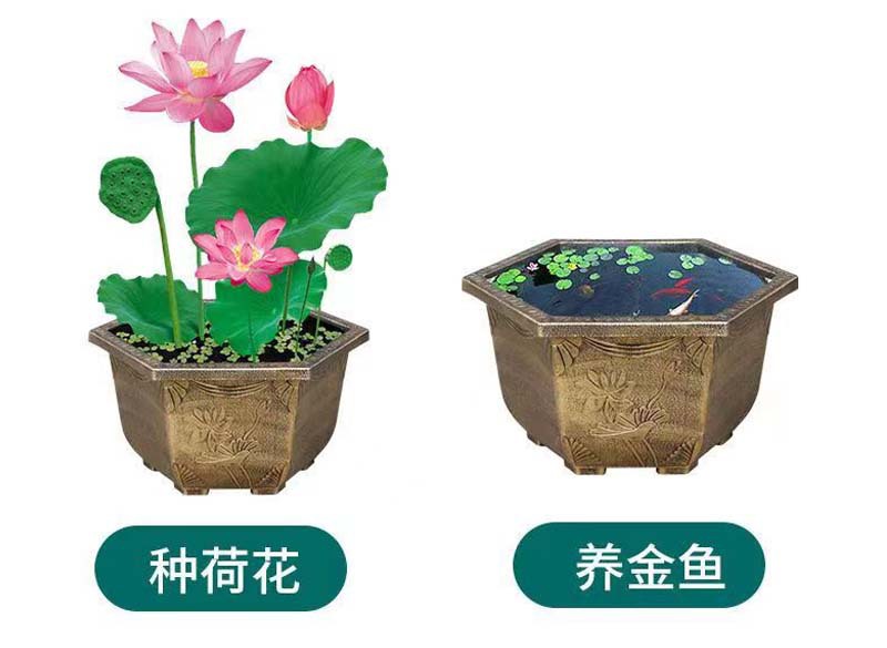 대형 육각 분지 청동 두꺼운 수지 야외 큰 나무 알루미늄 플라스틱 화분 구멍이있는 비 다공성 수경 화분