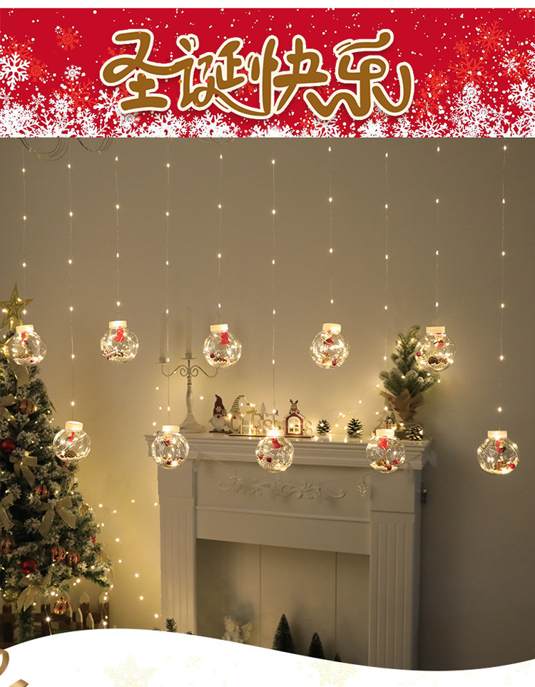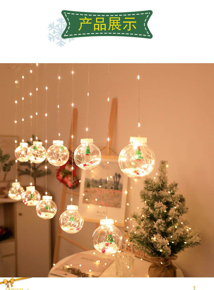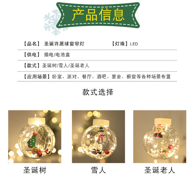 크로스보더 크리스마스 소원볼, 눈사람, 크리스마스 트리 조명, 창문 휴일 장식, 구리 와이어 조명, LED 크리스마스 커튼 조명 스트링스토어 가기