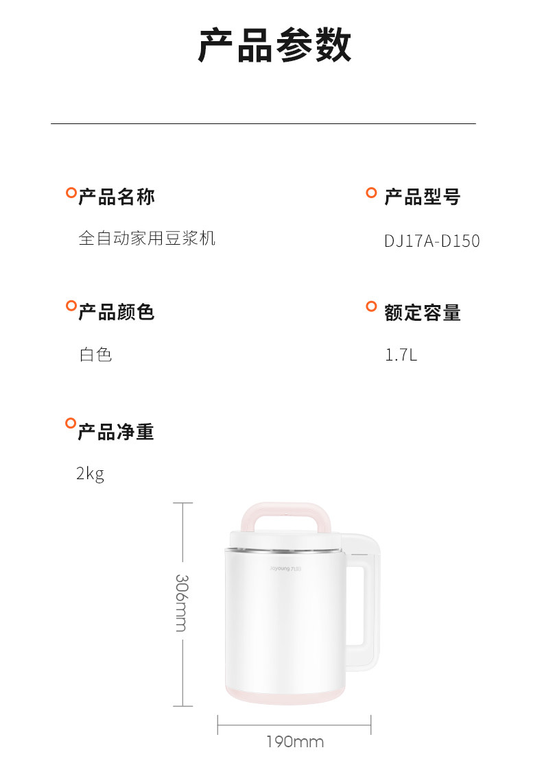 Jiuyang DJ17A-D150 두유 기계 가정용 다기능 벽 깨기 및 여과없는 쌀 페이스트 주스 식품 보조 요리 기계