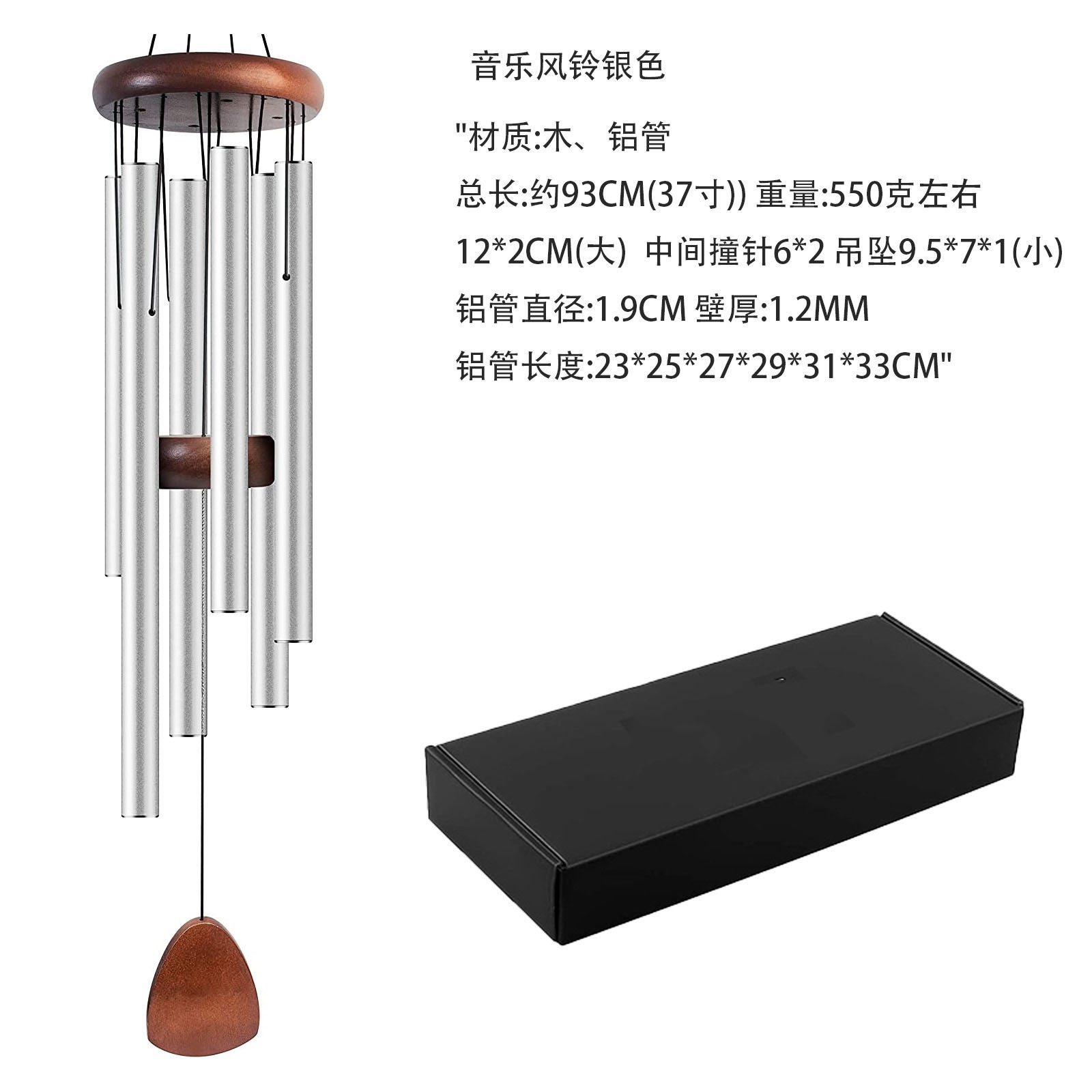 • 37inch 우아한 6관 윈드 차임-실버