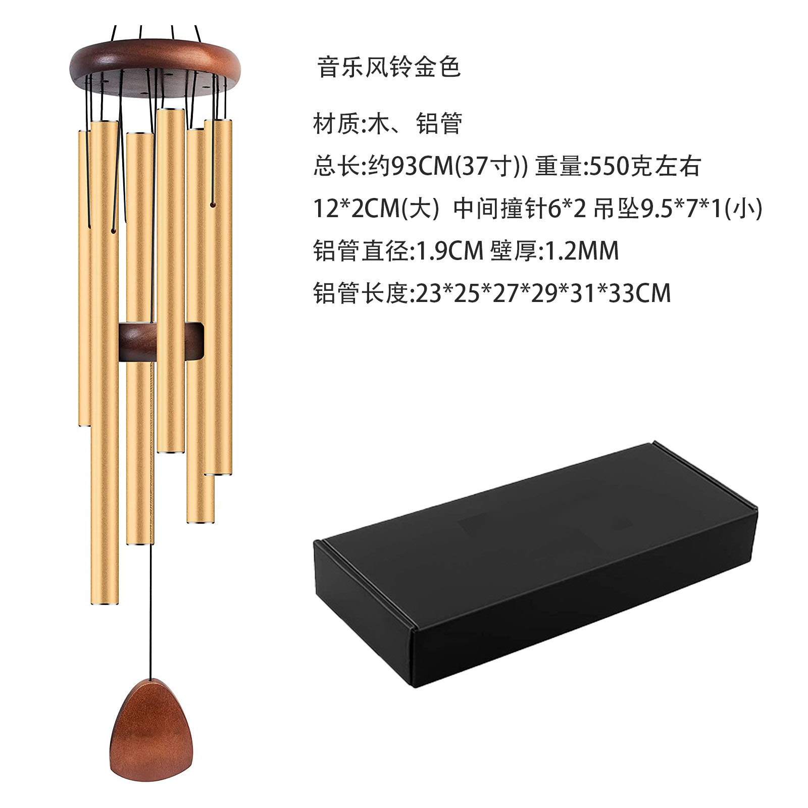 • 37inch 우아한 6관 윈드 차임-골드