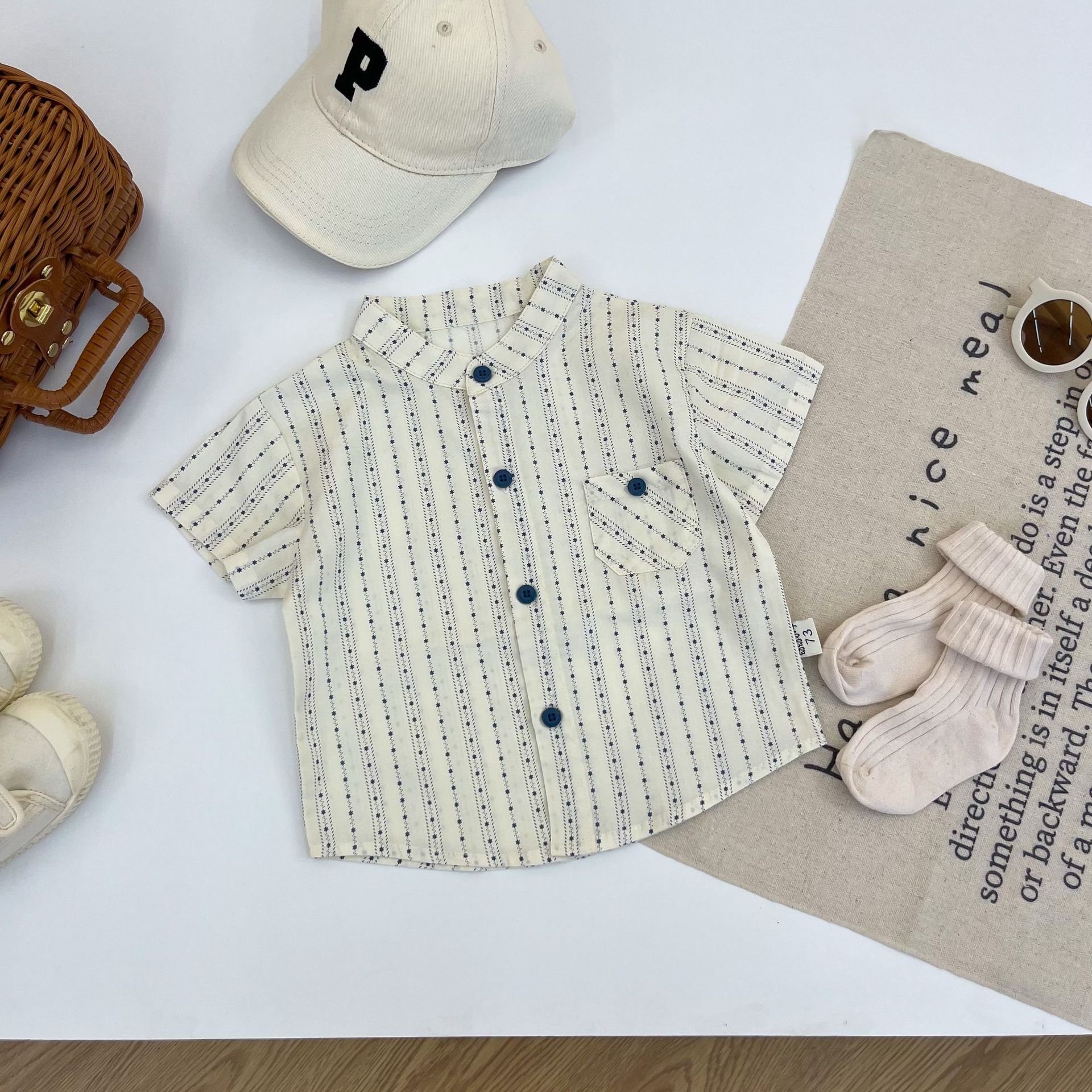 어린이 셔츠 2023 여름 소년 한국 스타일 셔츠 캐주얼 반팔 여름 옷 어린이 서양 스타일 만능 셔츠스토어 가기