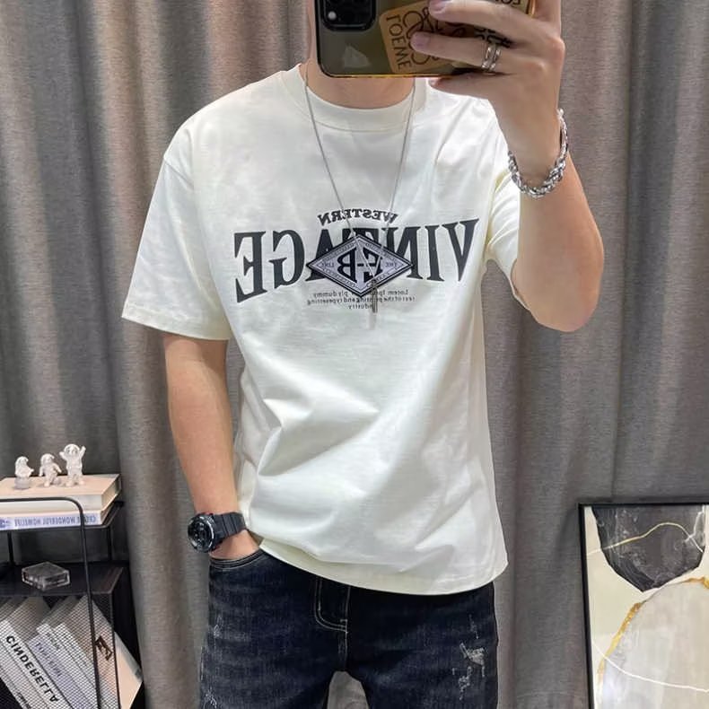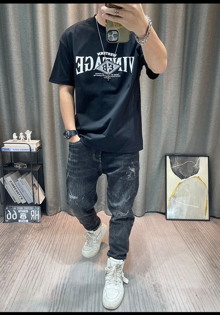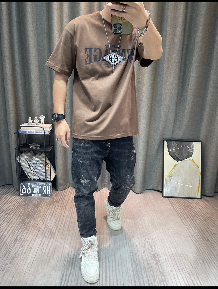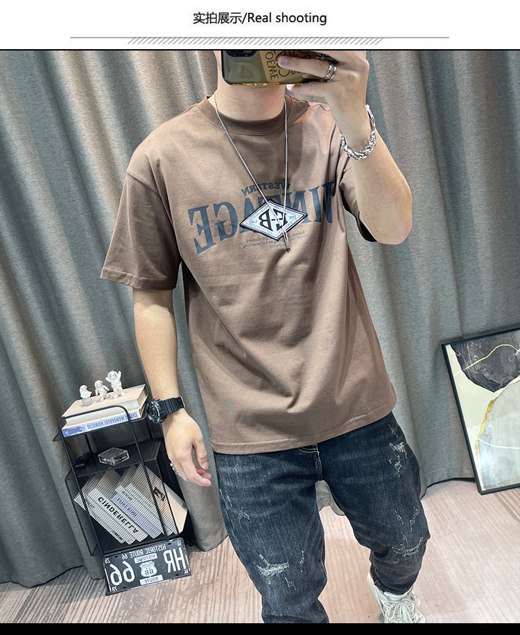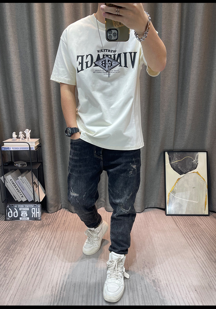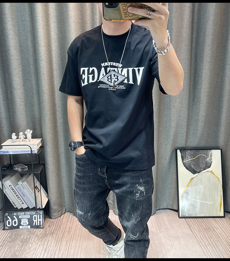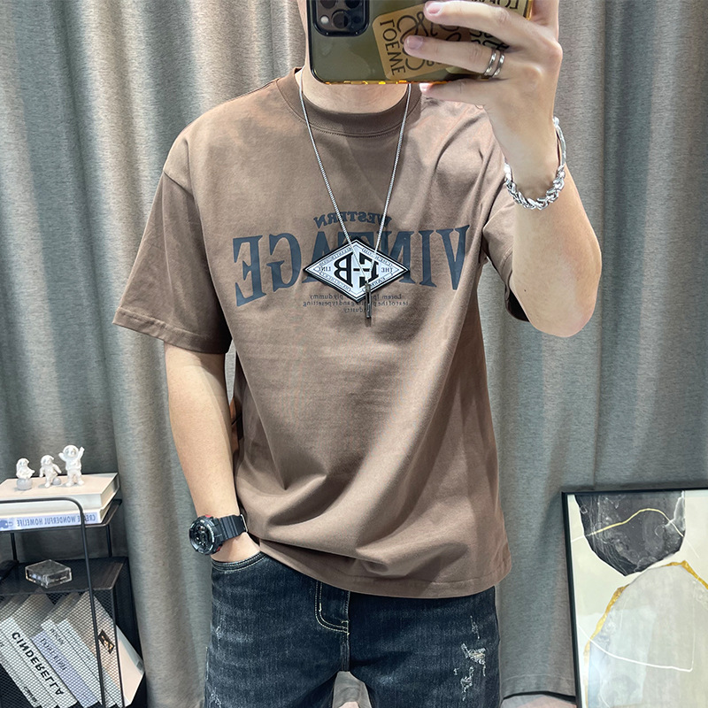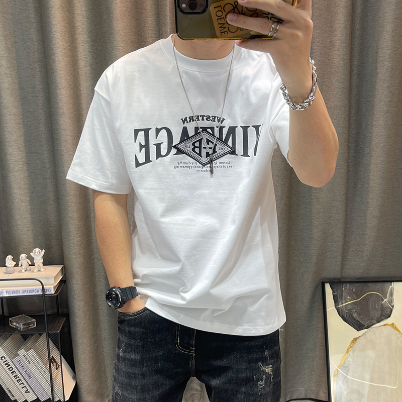 반팔 티셔츠 남자 2023 년 여름 새 면 편지 인쇄 느슨한 올매치 캐주얼 남성 유행 옷스토어 가기