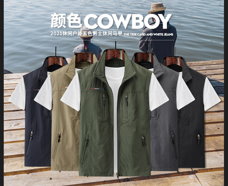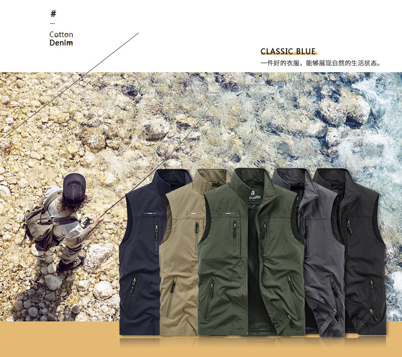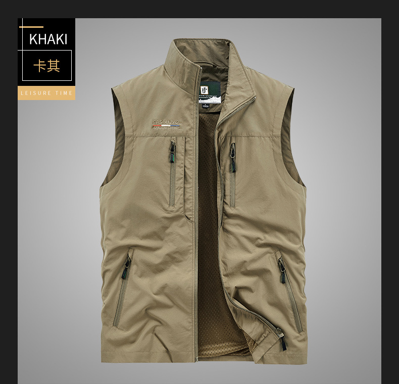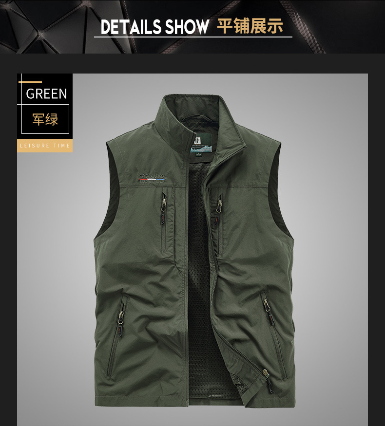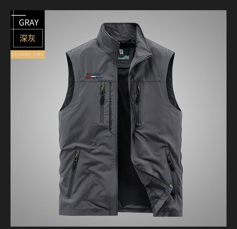 작업복 조끼 맞춤형 남성용 멀티 포켓 스탠드 칼라 조끼 재킷 봄, 가을 사진 낚시 등산복 속건성 조끼 재킷스토어 가기