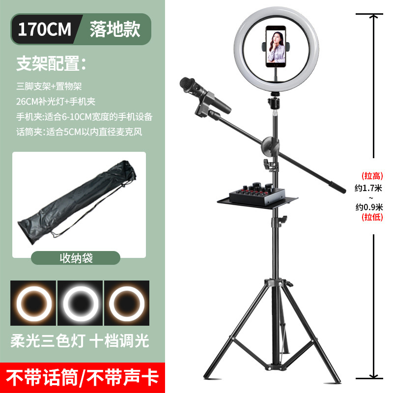 • 1.7 m 브래킷 + 단일 위치 + 26cm 3 색 램프 + 리모콘 + 마이크 장대 + 사운드 카드 트레이 + 보관 가방