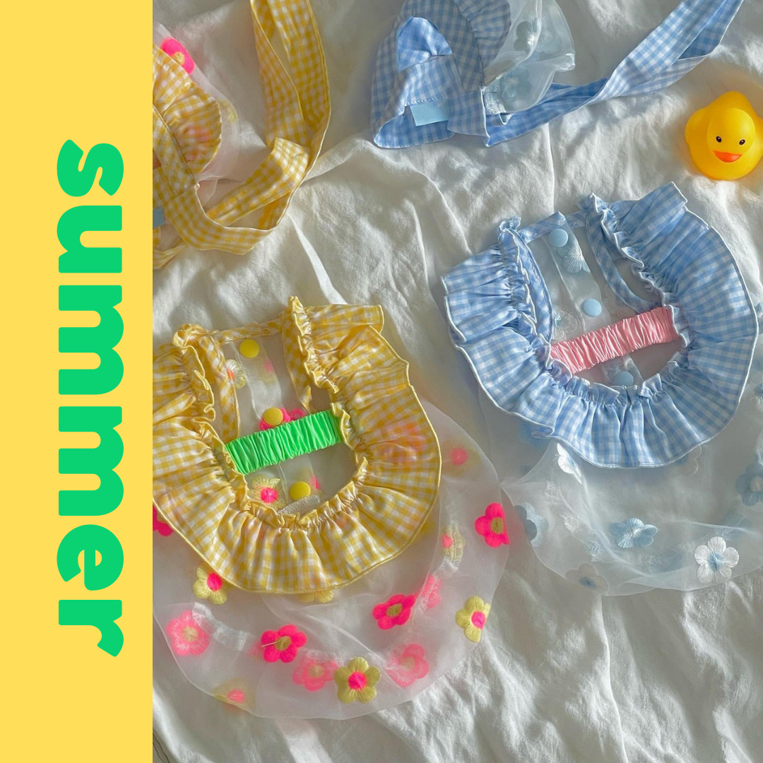 小鸭黄和优雅蓝的格子部分是全棉60支的面料,质感轻薄,边缘还做了同色高密拷边~