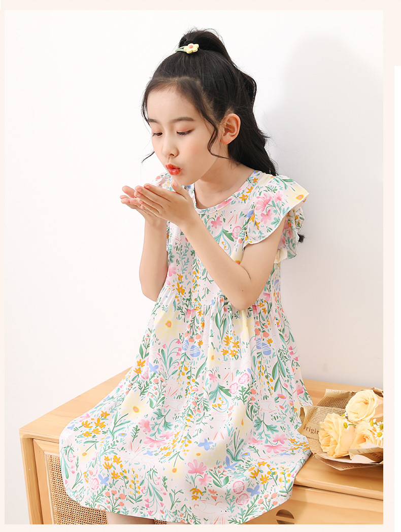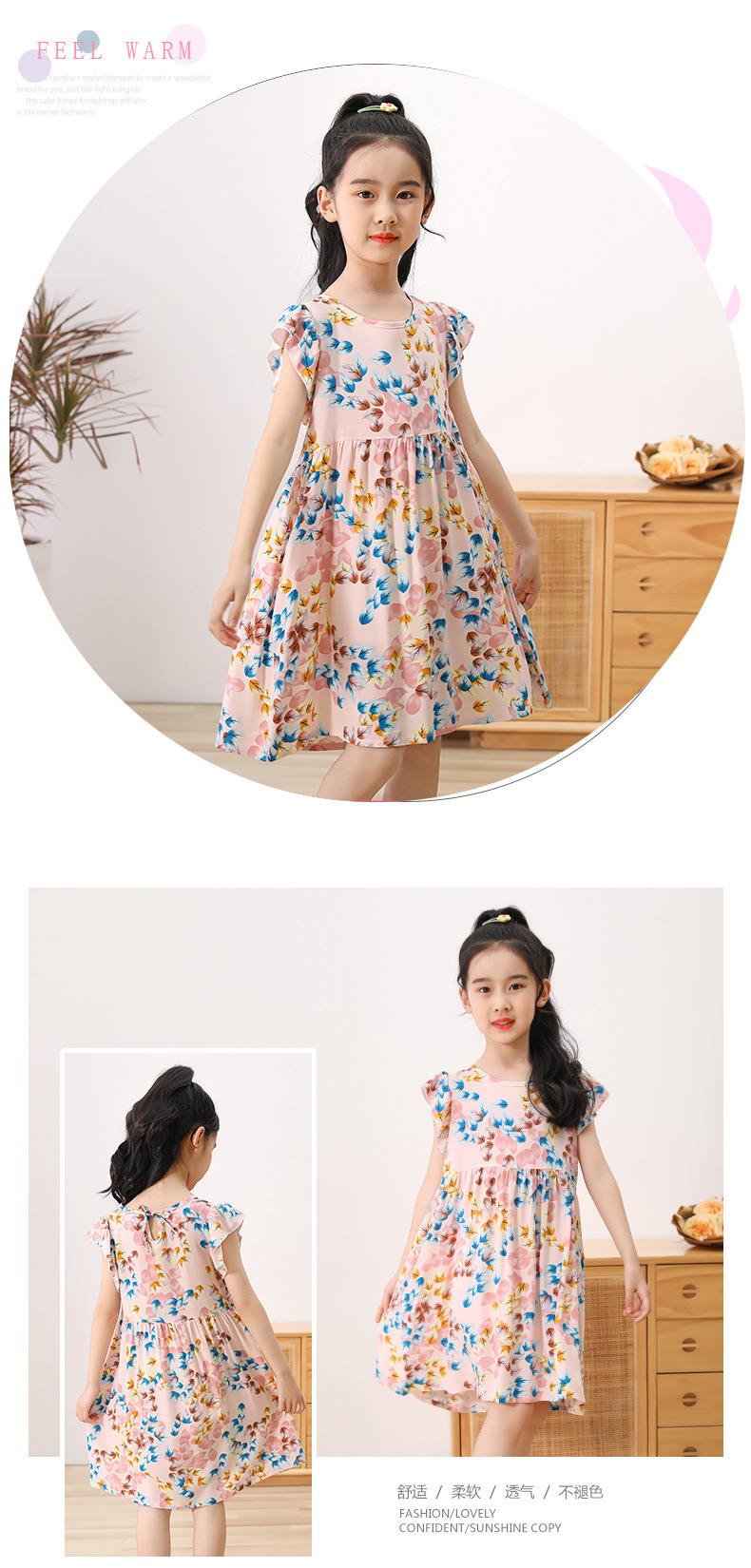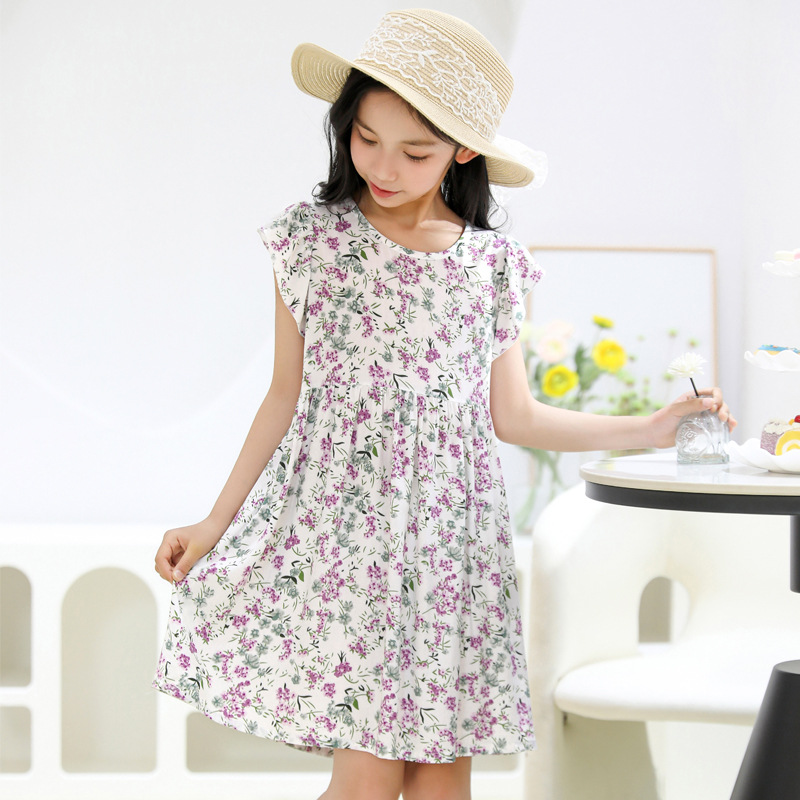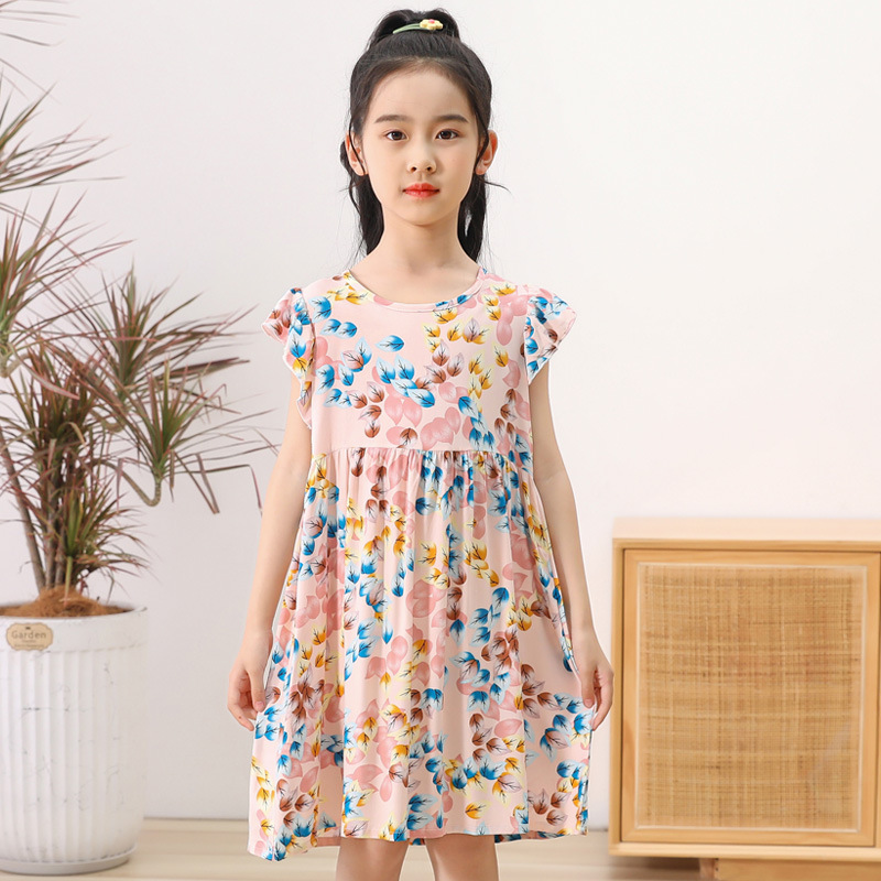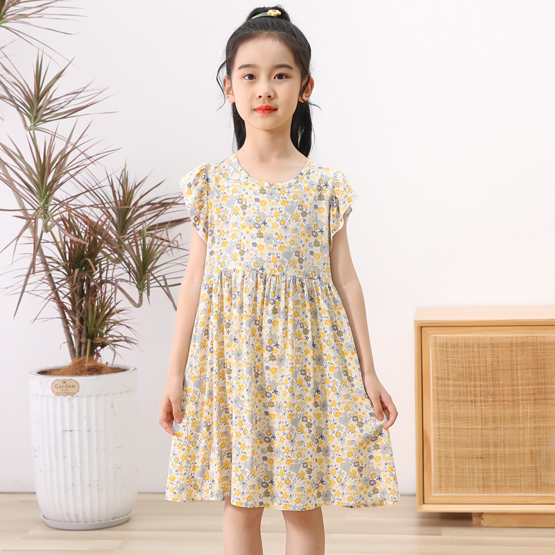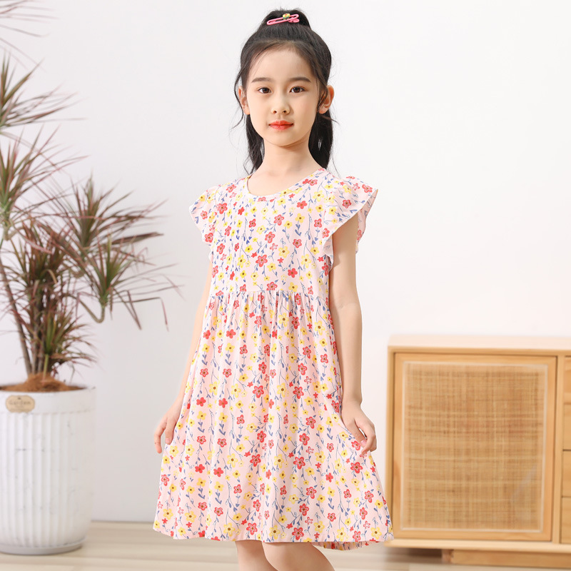 여자 여름 원피스 어린이 한국 스타일 공주 원피스 면 실크 민소매 조끼 치마 어린 소녀 꽃 꽃 레이온 스커트