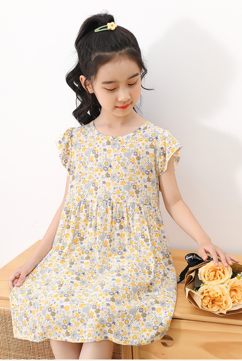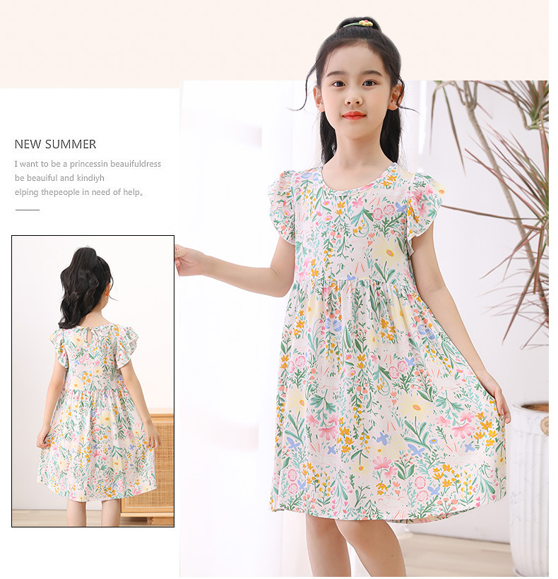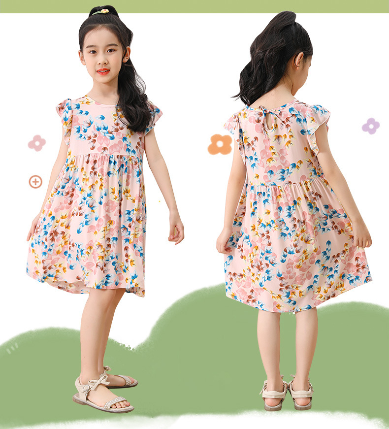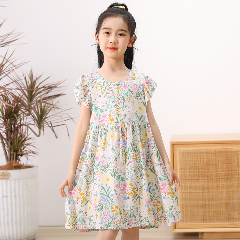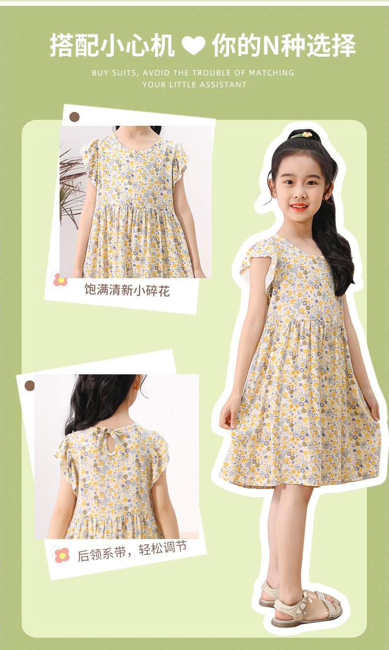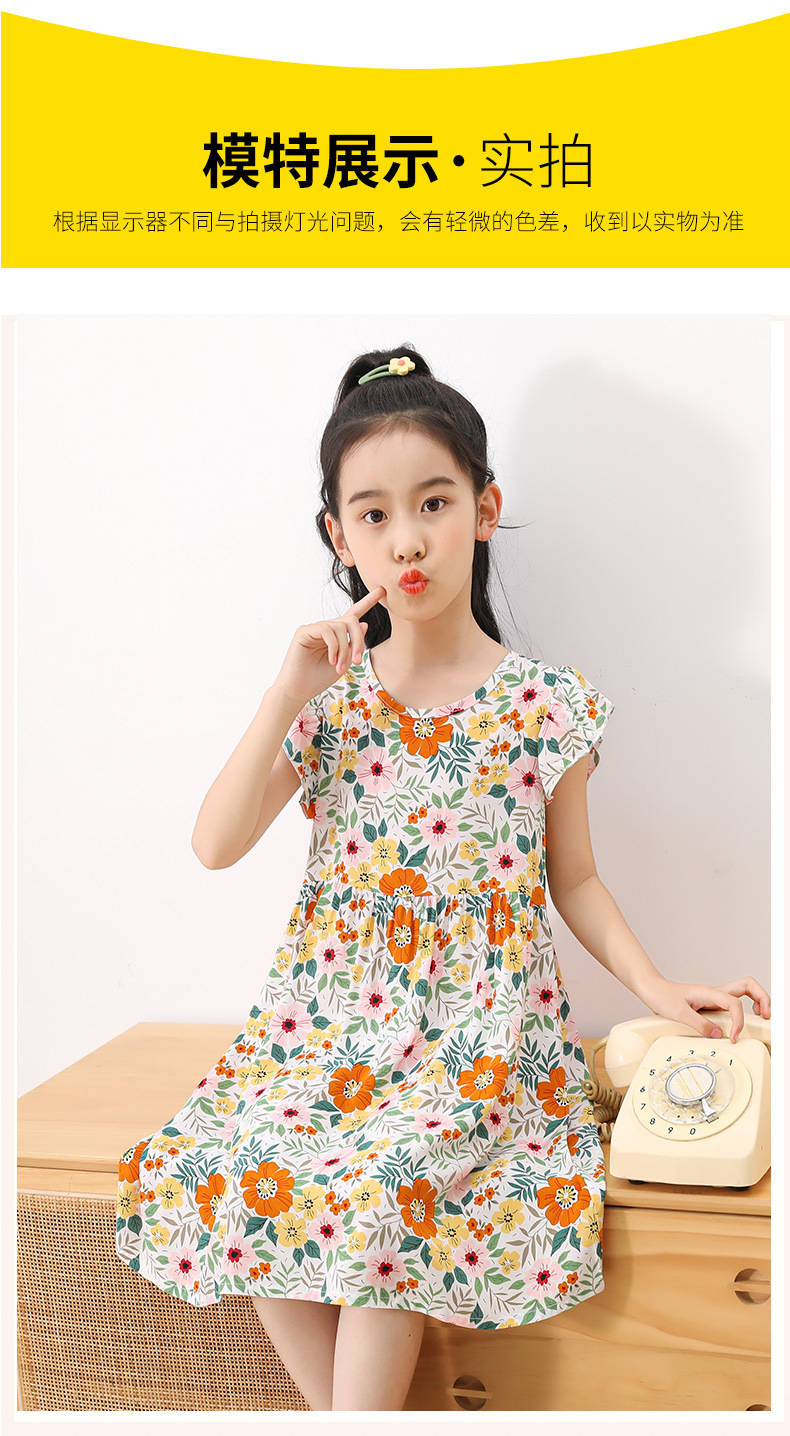 여자 여름 원피스 어린이 한국 스타일 공주 원피스 면 실크 민소매 조끼 치마 어린 소녀 꽃 꽃 레이온 스커트