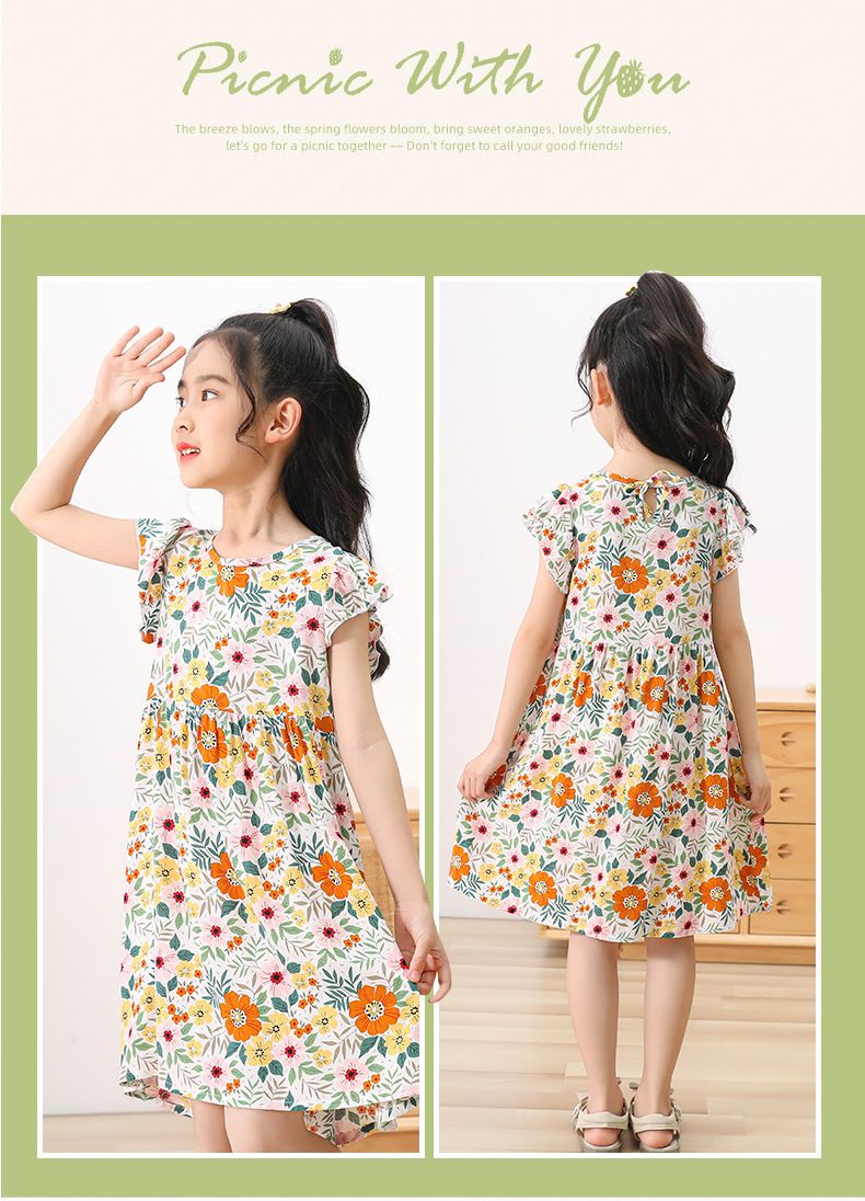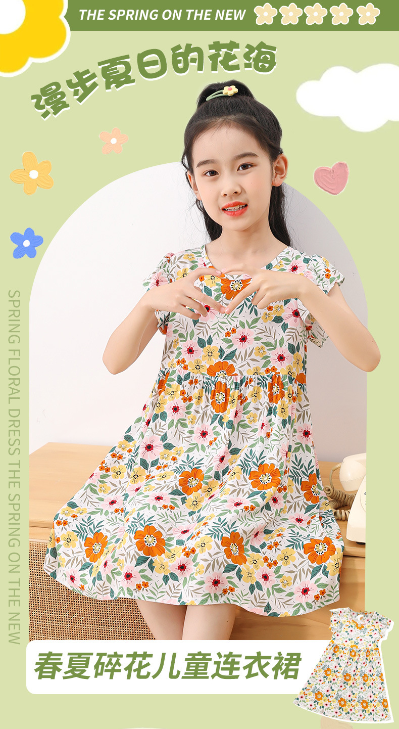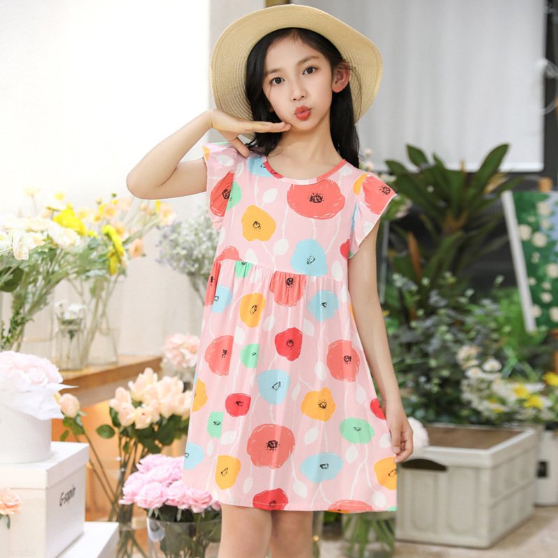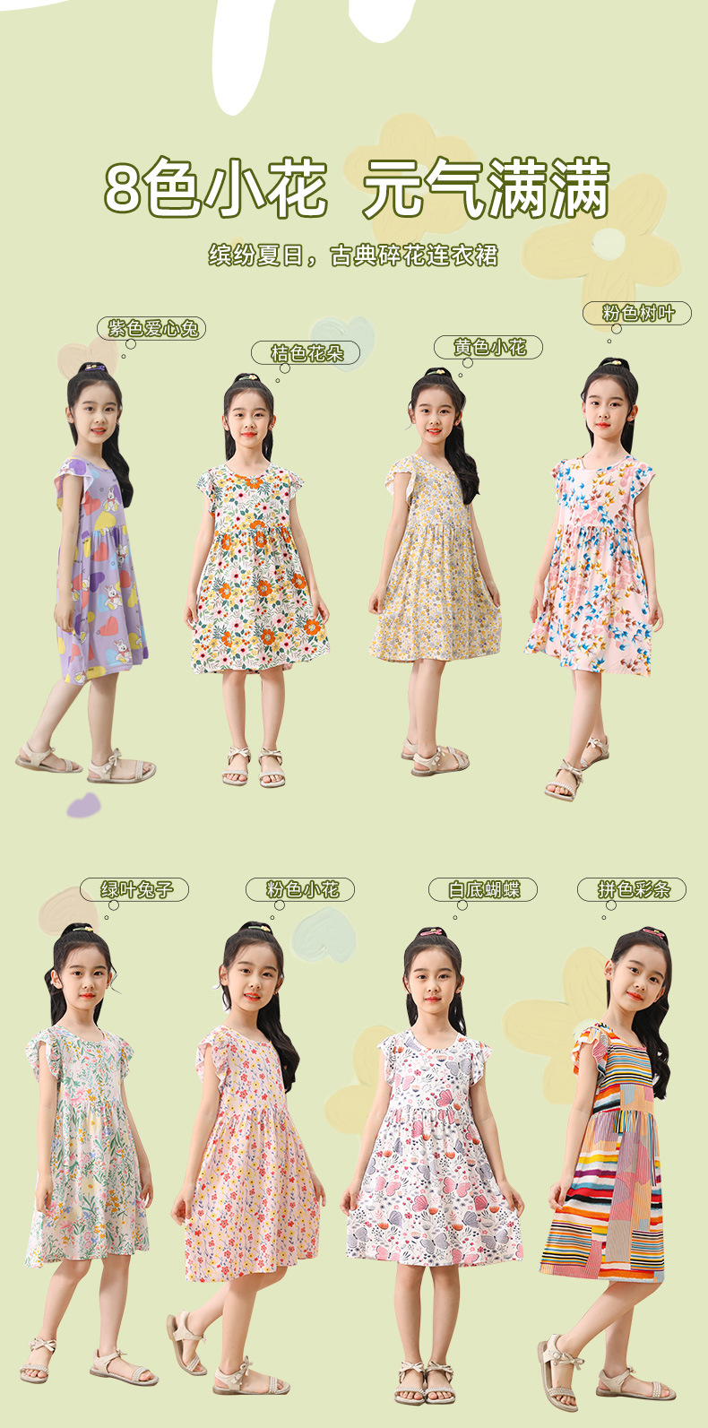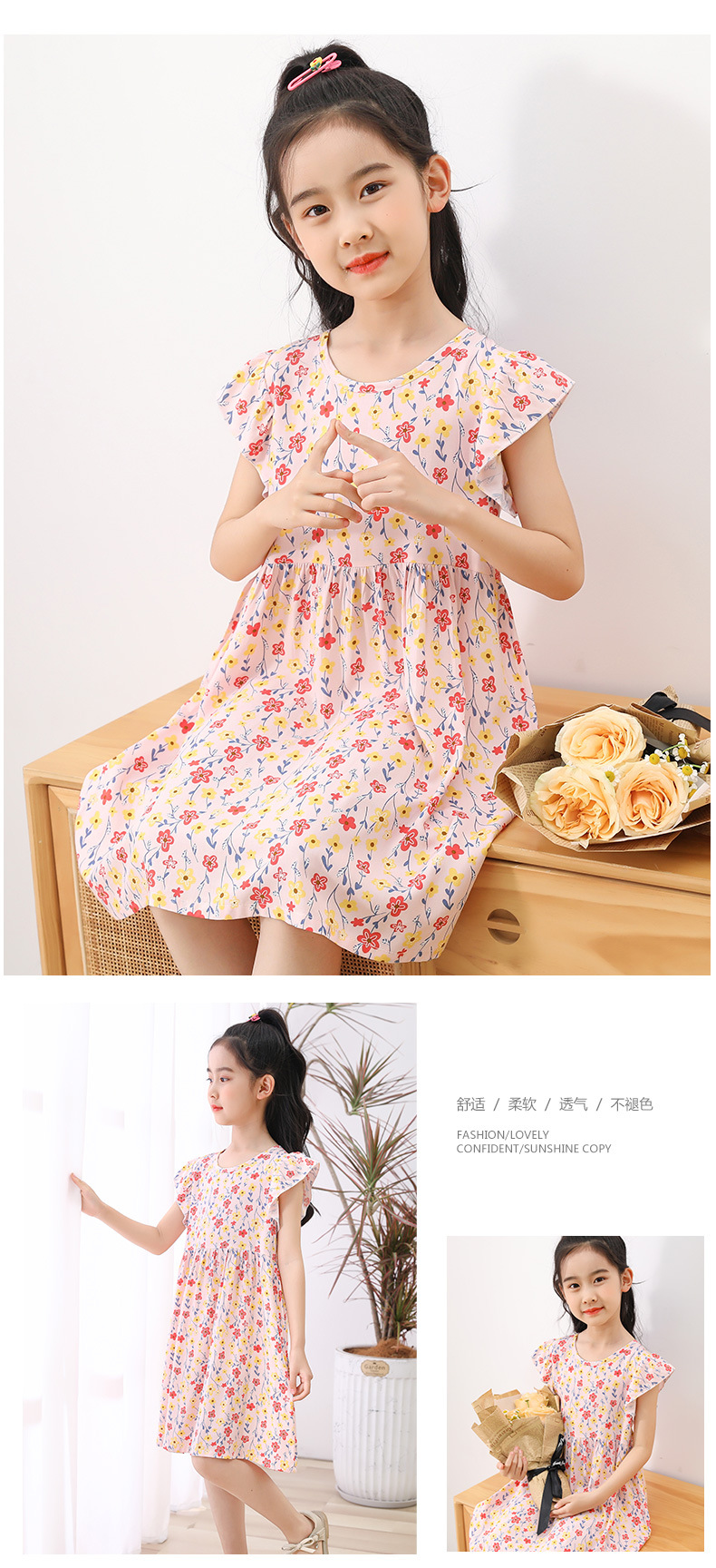 여자 여름 원피스 어린이 한국 스타일 공주 원피스 면 실크 민소매 조끼 치마 어린 소녀 꽃 꽃 레이온 스커트
