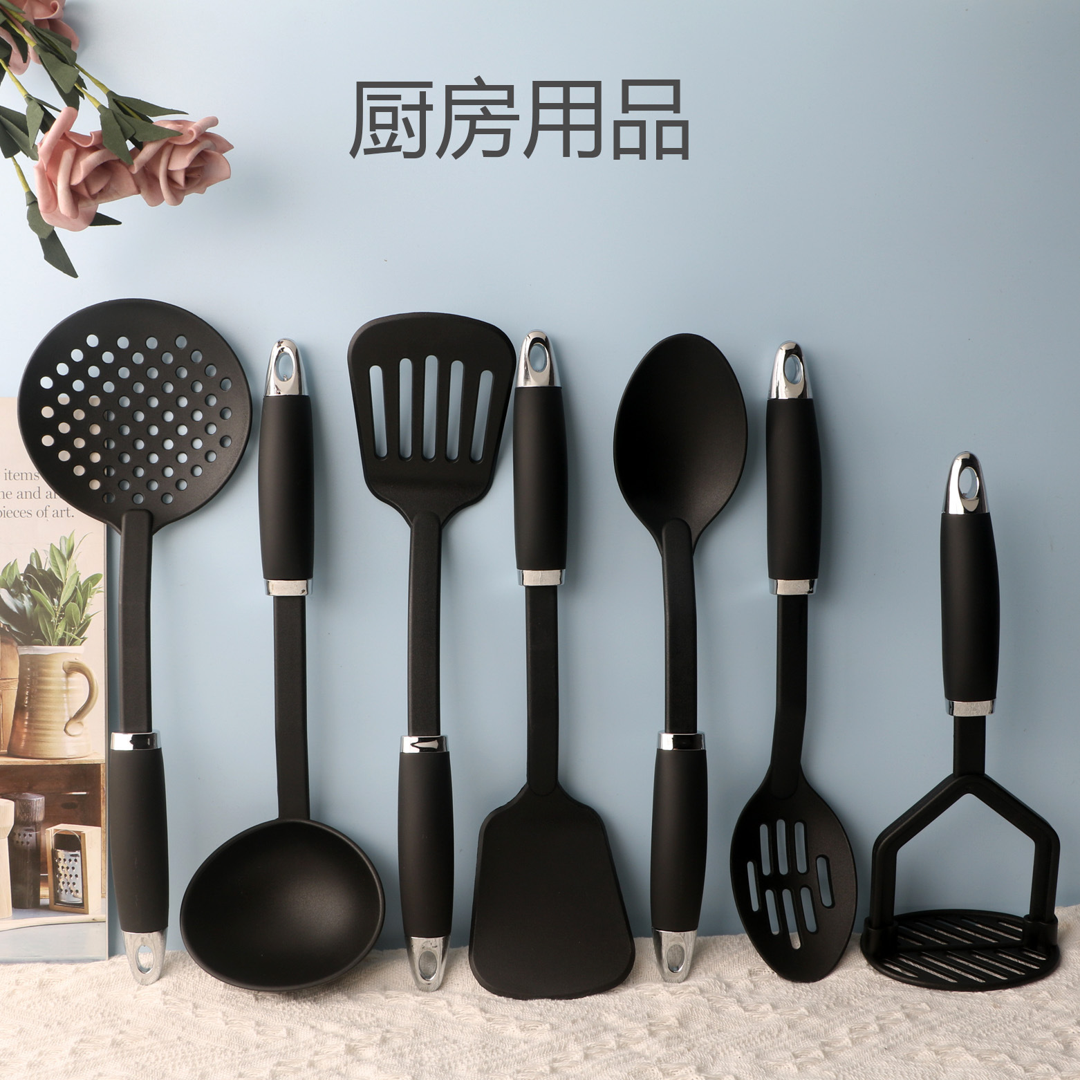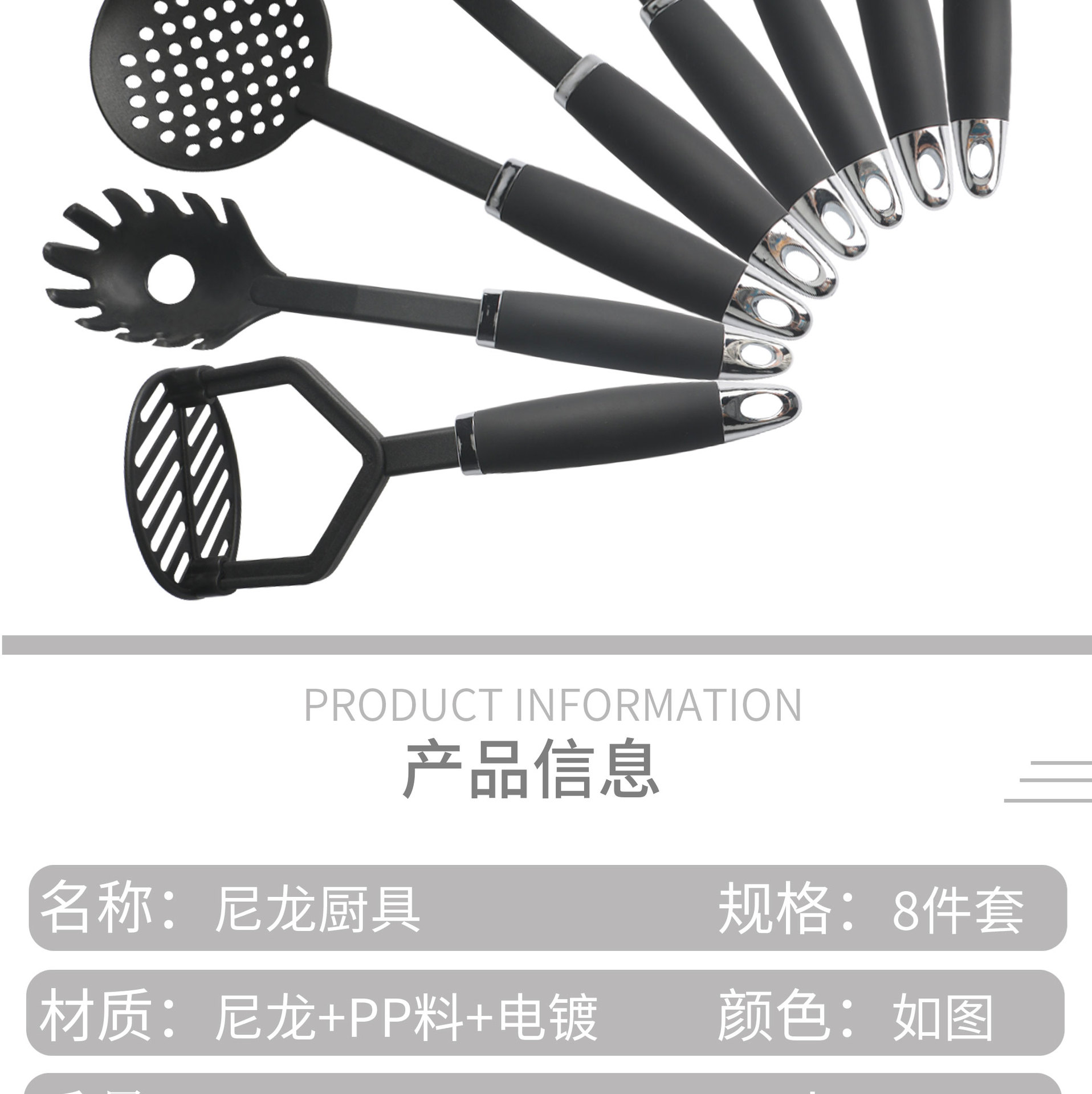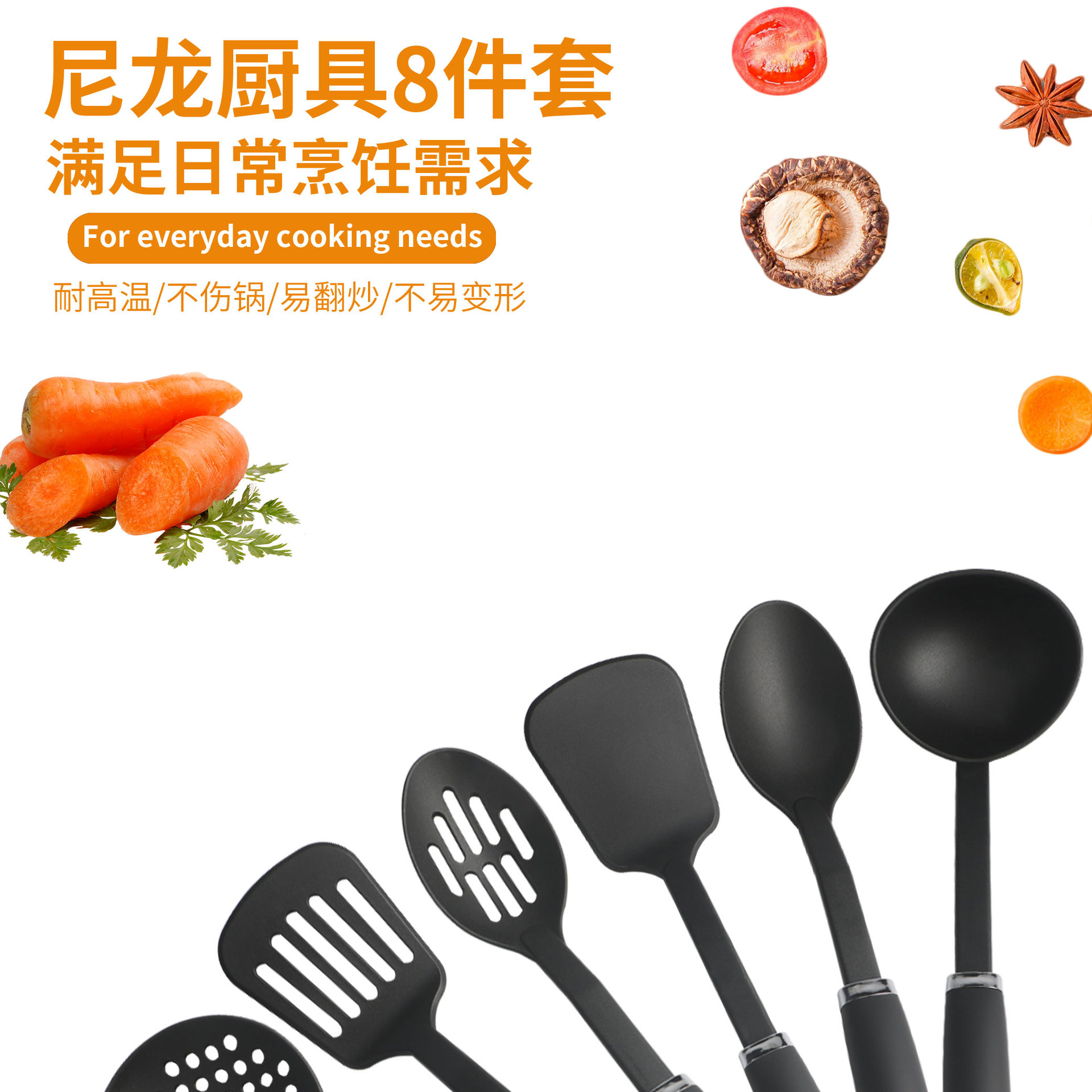 [맞춤형 로고] 나일론 주방용품 8종 세트 주방 도구 요리 스푼 주걱 세트 논스틱 스푼
