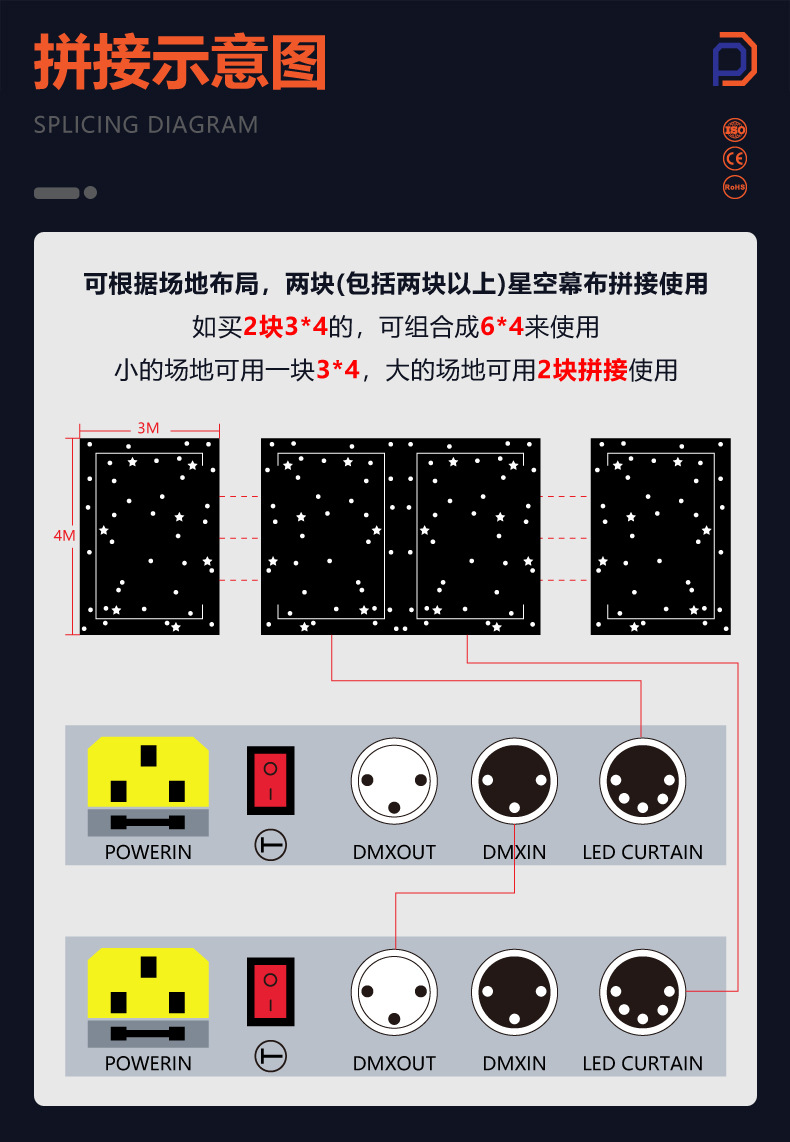 • [현물 + DMX 컨트롤러 + 리모콘] 4*8M 기존 플란넬 + 파란색 및 흰색 램프 비즈