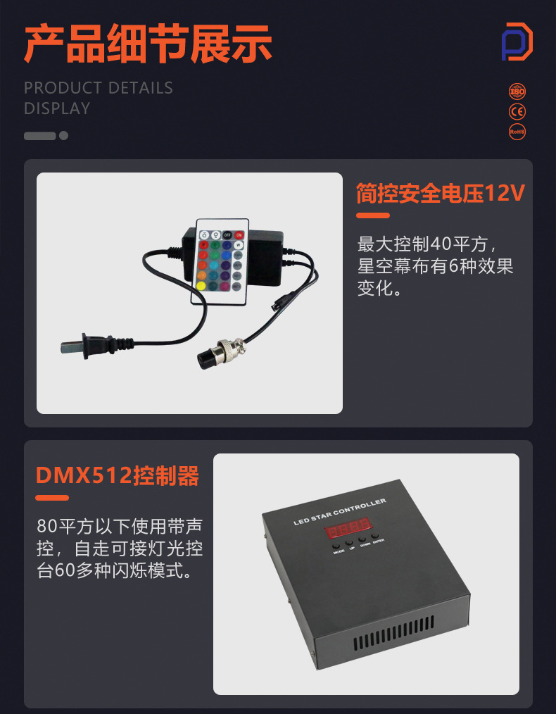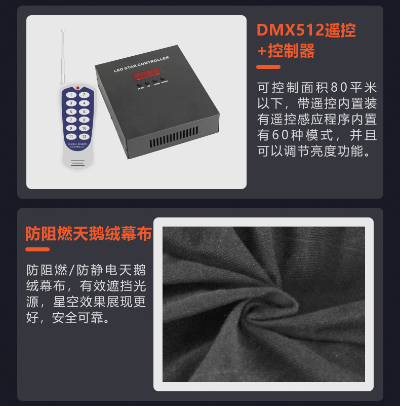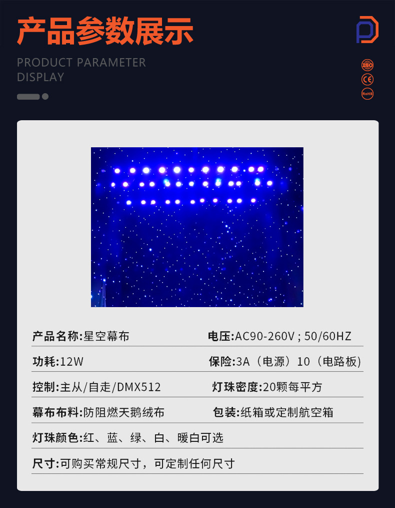 • [맞춤형 모델/평방 미터당 가격] 방화 벨벳 천 + 4선 병렬 수입 방수 램프 비즈