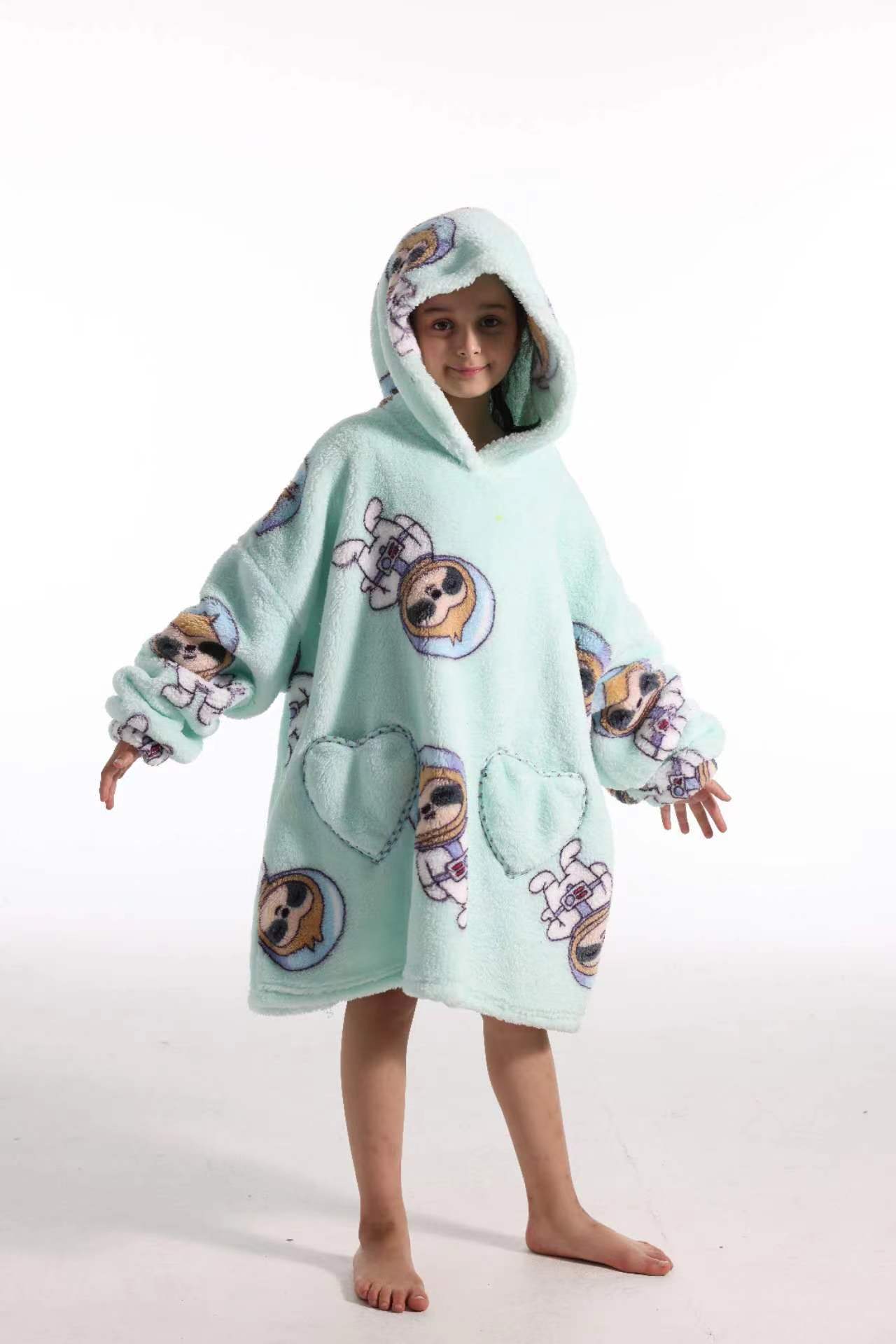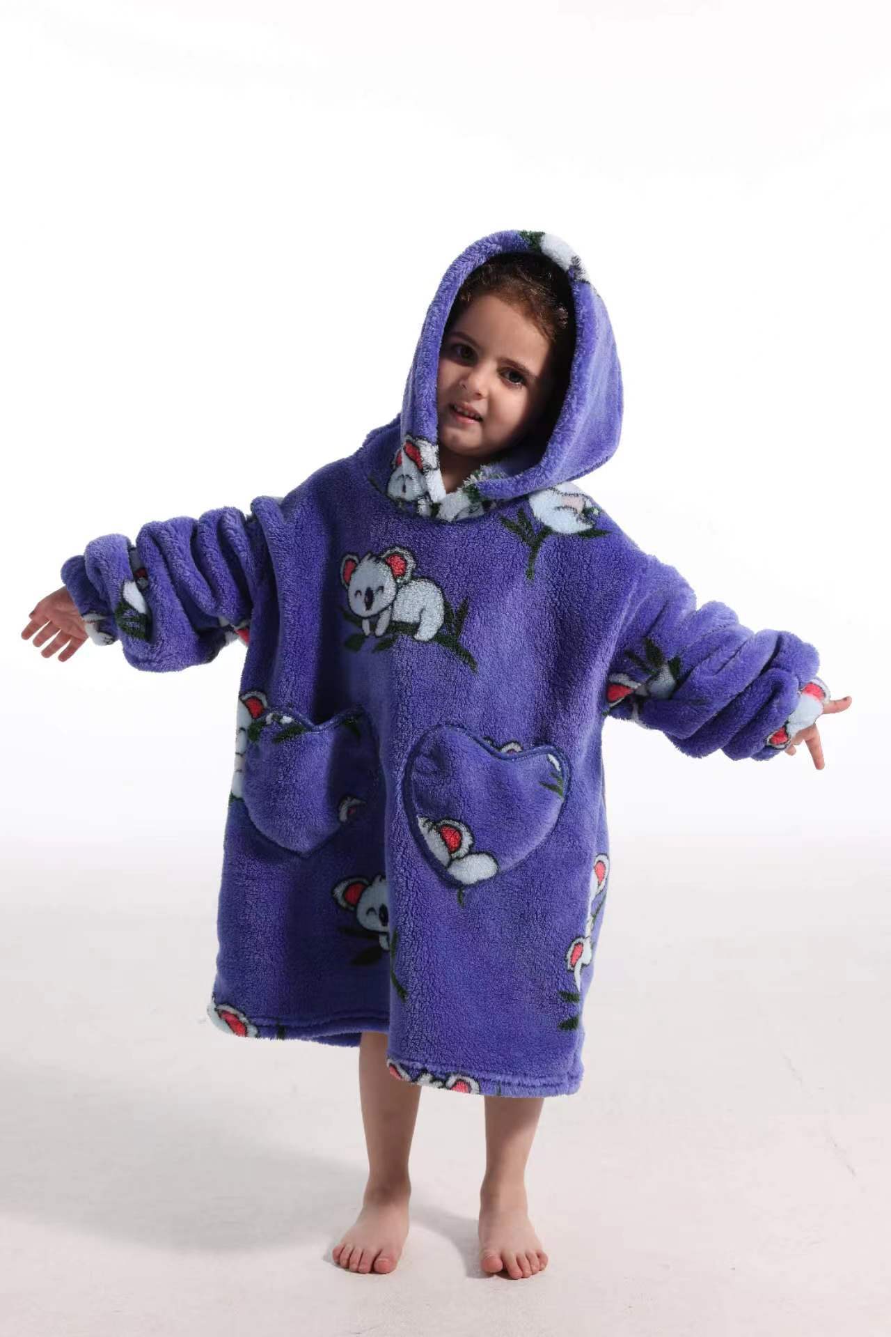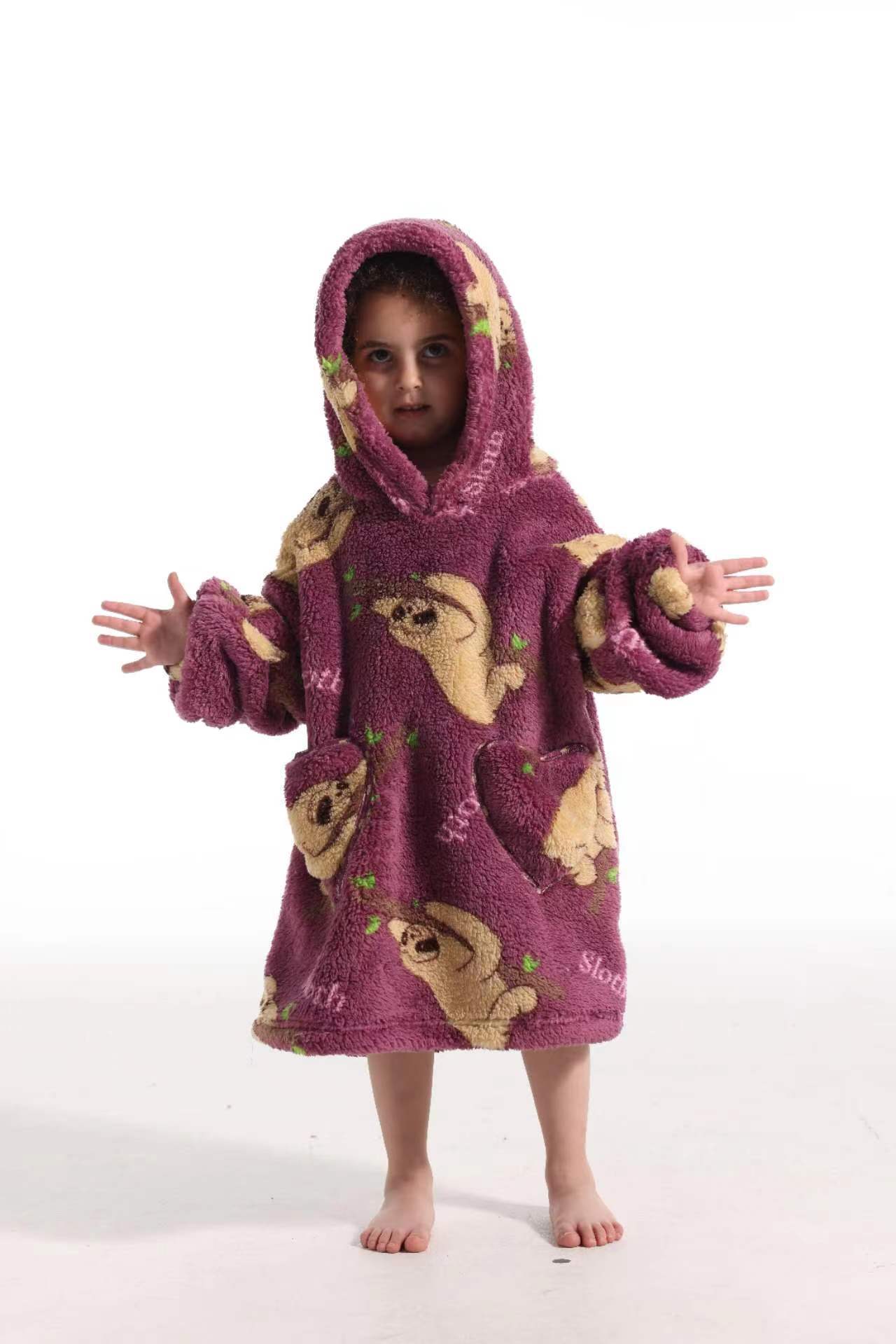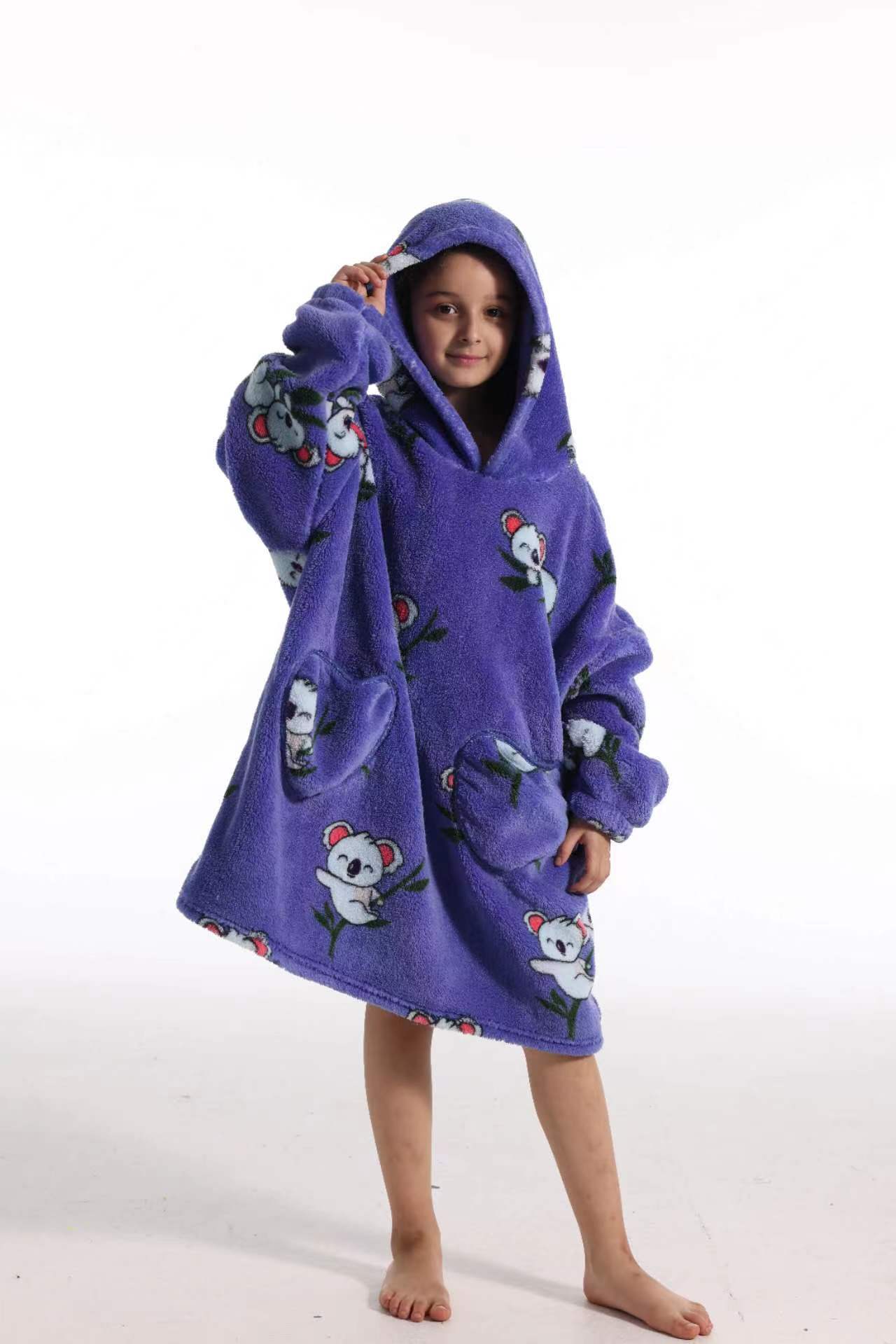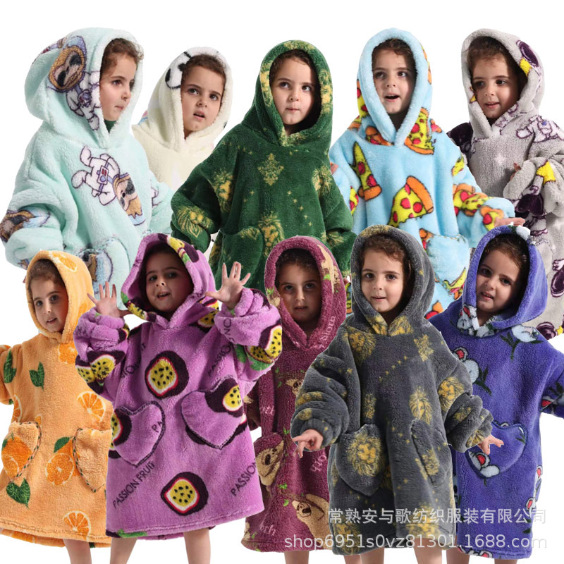 새로운 방한 의류 게으른 풀오버 어린이 잠옷 양고기 벨벳 따뜻한 옷 후드 TV 담요 까마귀 배치